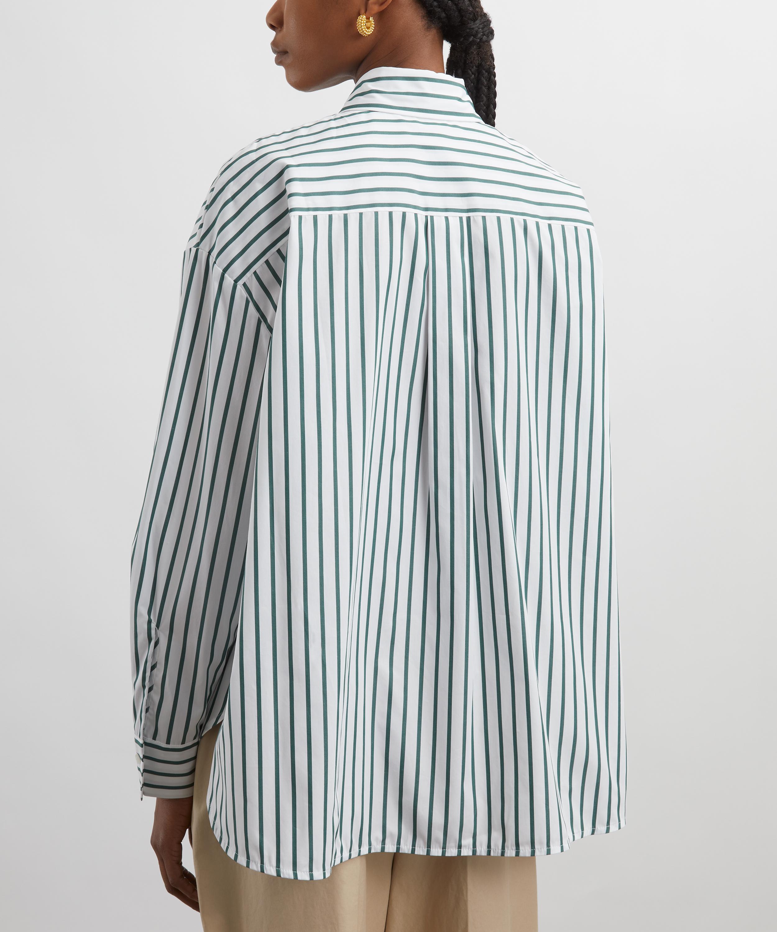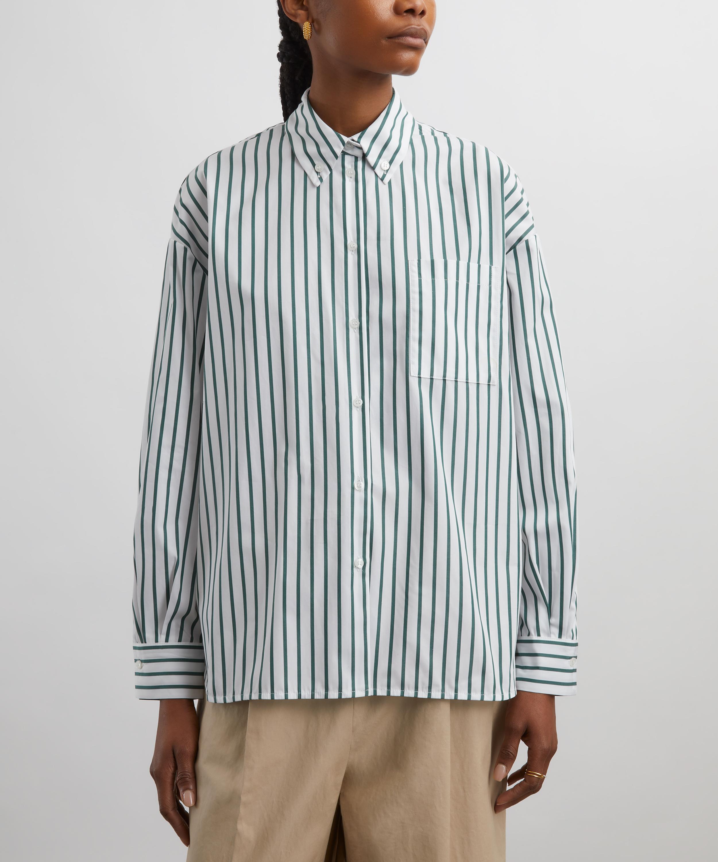 Crafted from cotton, the striped Bethany Lily blouse features an oversized silhouette with dropped shoulders and an asymmetric, high-low hem. Designed with a patch pocket, the button-down collar and buttoned cuffs add a refined, tailored touch.