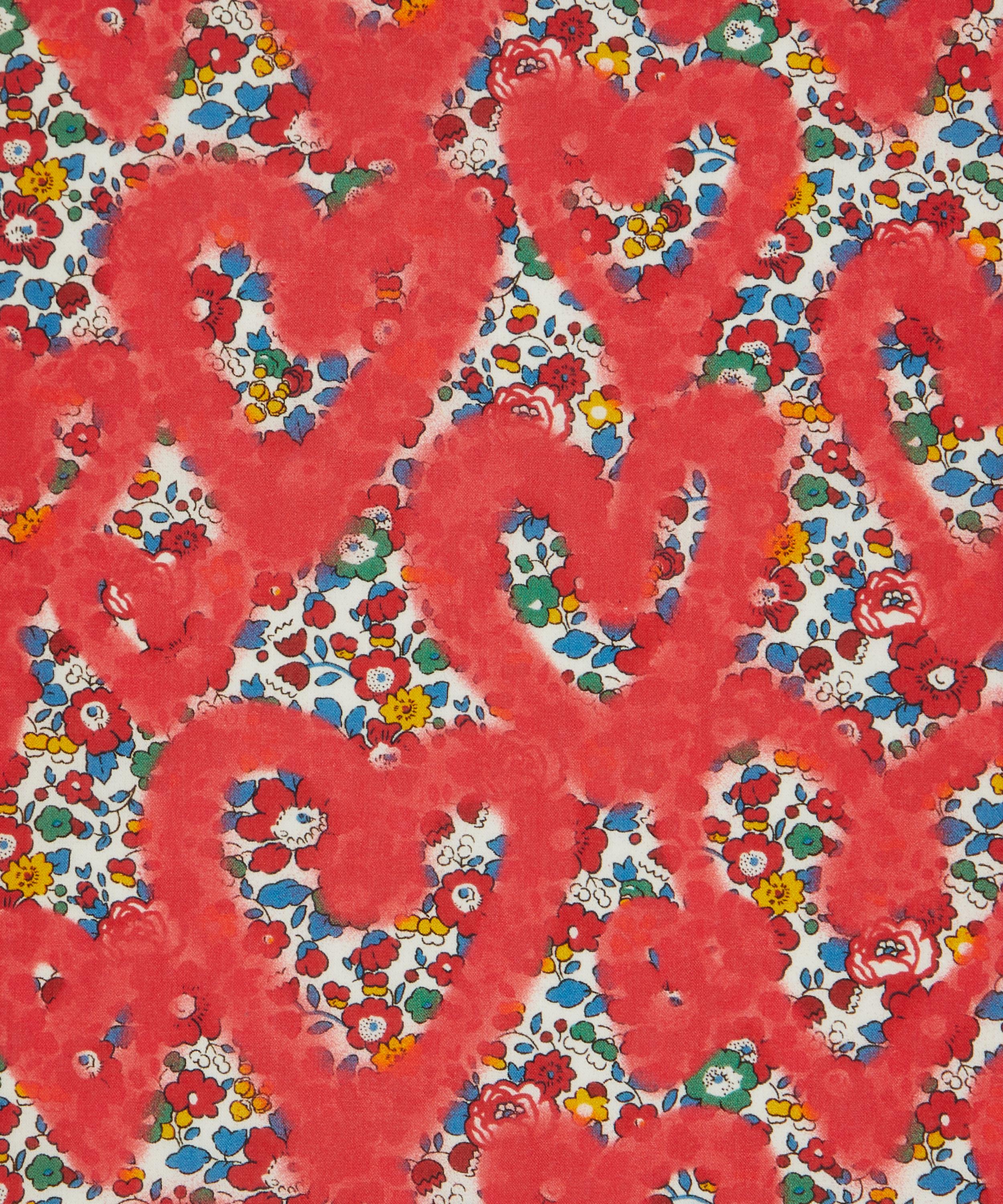 Originally designed for Liberty in 1933, Betsy Ann Graffiti is a fresh and fun rendition of one of our most cherished Classic prints, Betsy. This charming juxtaposition features an assortment of spray-painted hearts, arranged over an iconic Liberty floral.