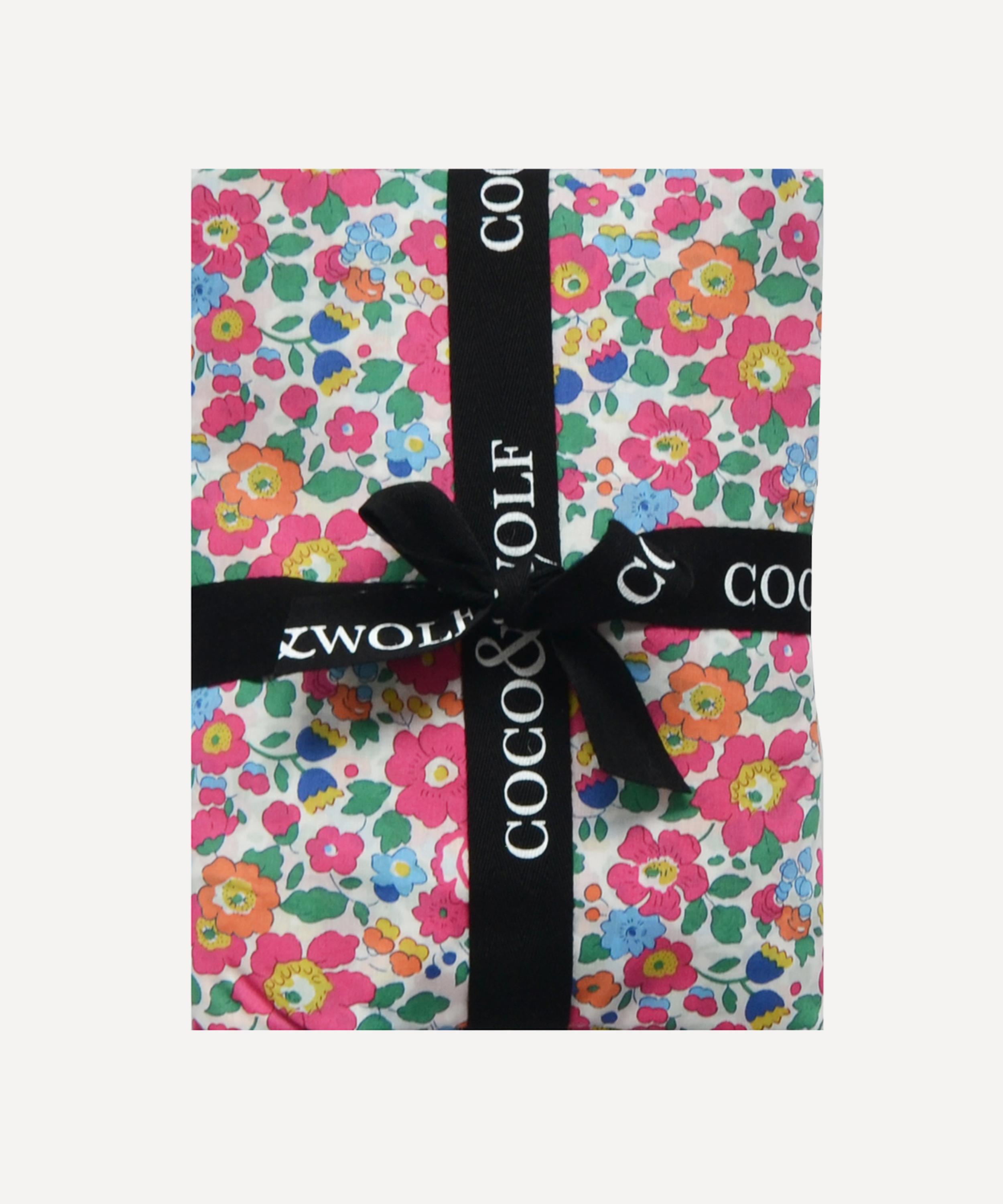 Somerset-born bedding brand Coco & Wolf is renowned for its Liberty print bedspreads, duvets and cushions, crafted from our inimitable Tana Lawn™ cotton - a modern masterpiece of fabric production that Liberty has been perfecting for over 100 years. This fitted sheet has a silky hand-feel which is perfect for delicate skin and is dressed in Liberty Fabrics’ Betsy print – an archival design from 1933 featuring a vibrant collection of small, stylised florals. A must-have for bringing some Liberty print charm to your little one’s sleep haven, we suggest embracing the maximalist trend by styling with clashing patterns and textures.About Coco & Wolf