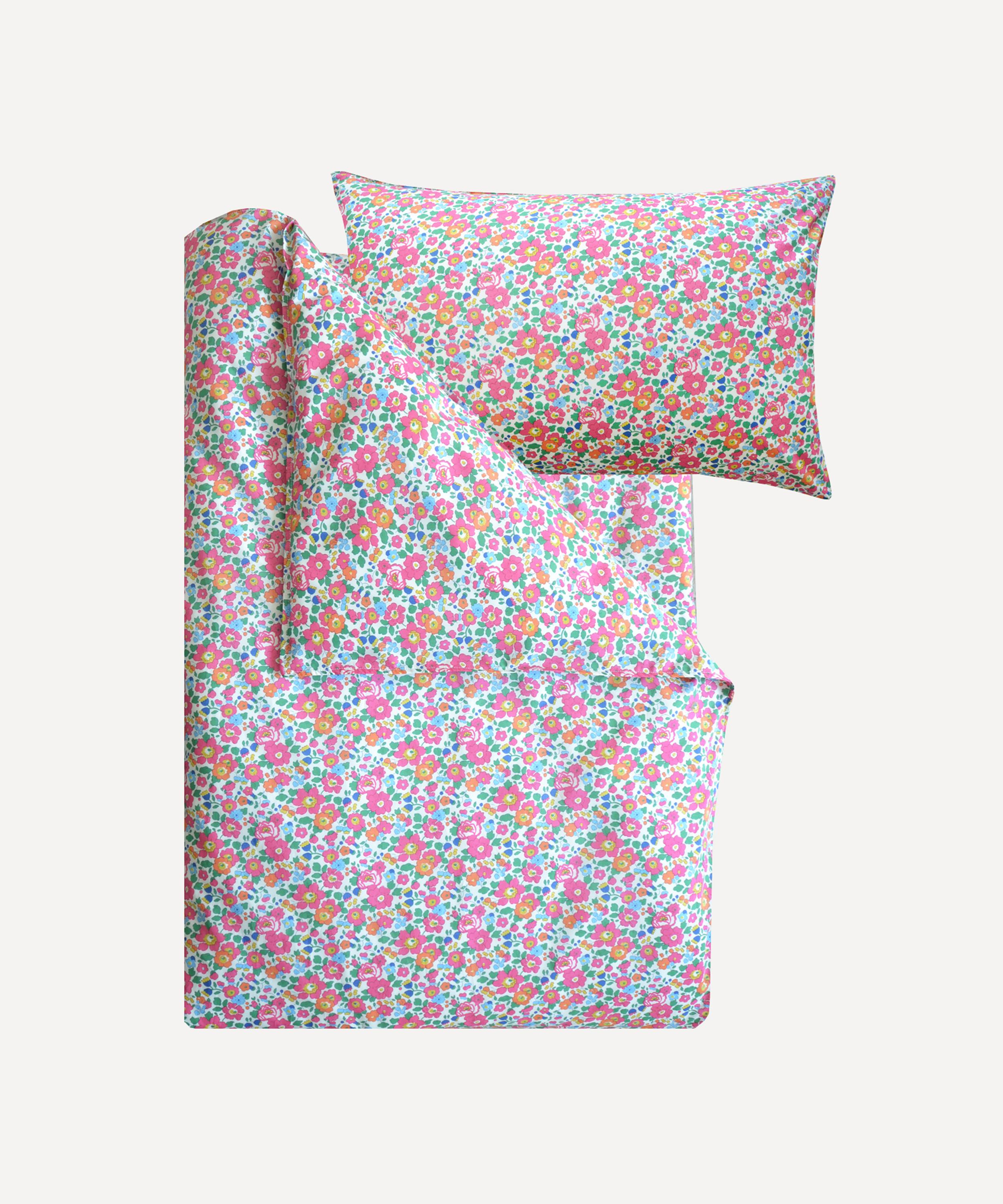 Somerset-born bedding brand Coco & Wolf is renowned for its Liberty print bedspreads, duvets and cushions, crafted from our inimitable Tana Lawn™ cotton - a modern masterpiece of fabric production that Liberty has been perfecting for over 100 years. This duvet set features one standard pillowcase and a single duvet cover, dressed in Liberty Fabrics’ Betsy print - a small stylised floral design, created in 1933. Use the set to infuse a touch of print into an otherwise subdued sleeping space. We suggest embracing the maximalist trend by coupling the set with print-loaded cushions, linen throws and rattan décor.