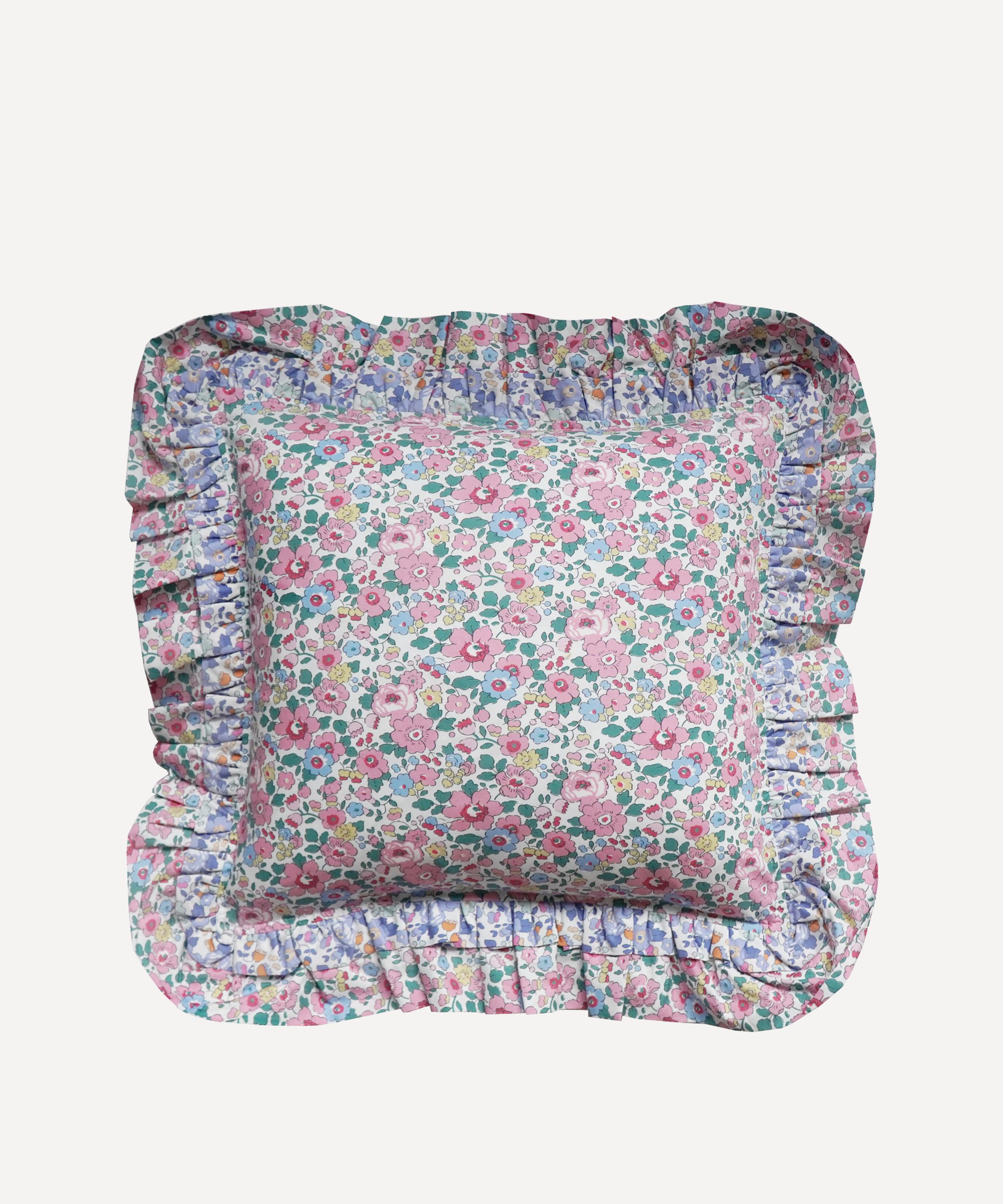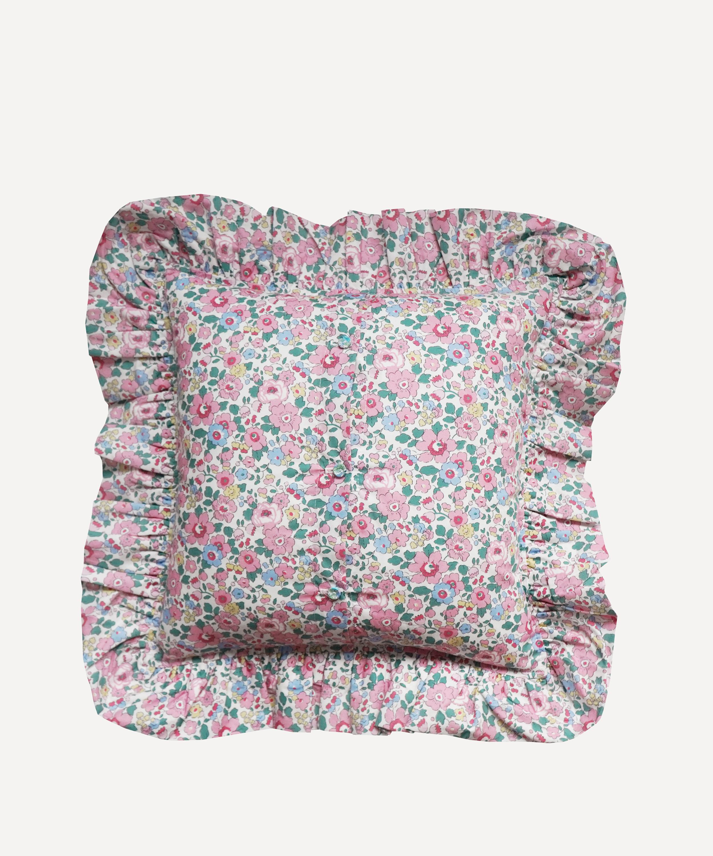 This Liberty print ruffle square cushion from Coco & Wolf is set to brighten up bedding and seating arrangements.