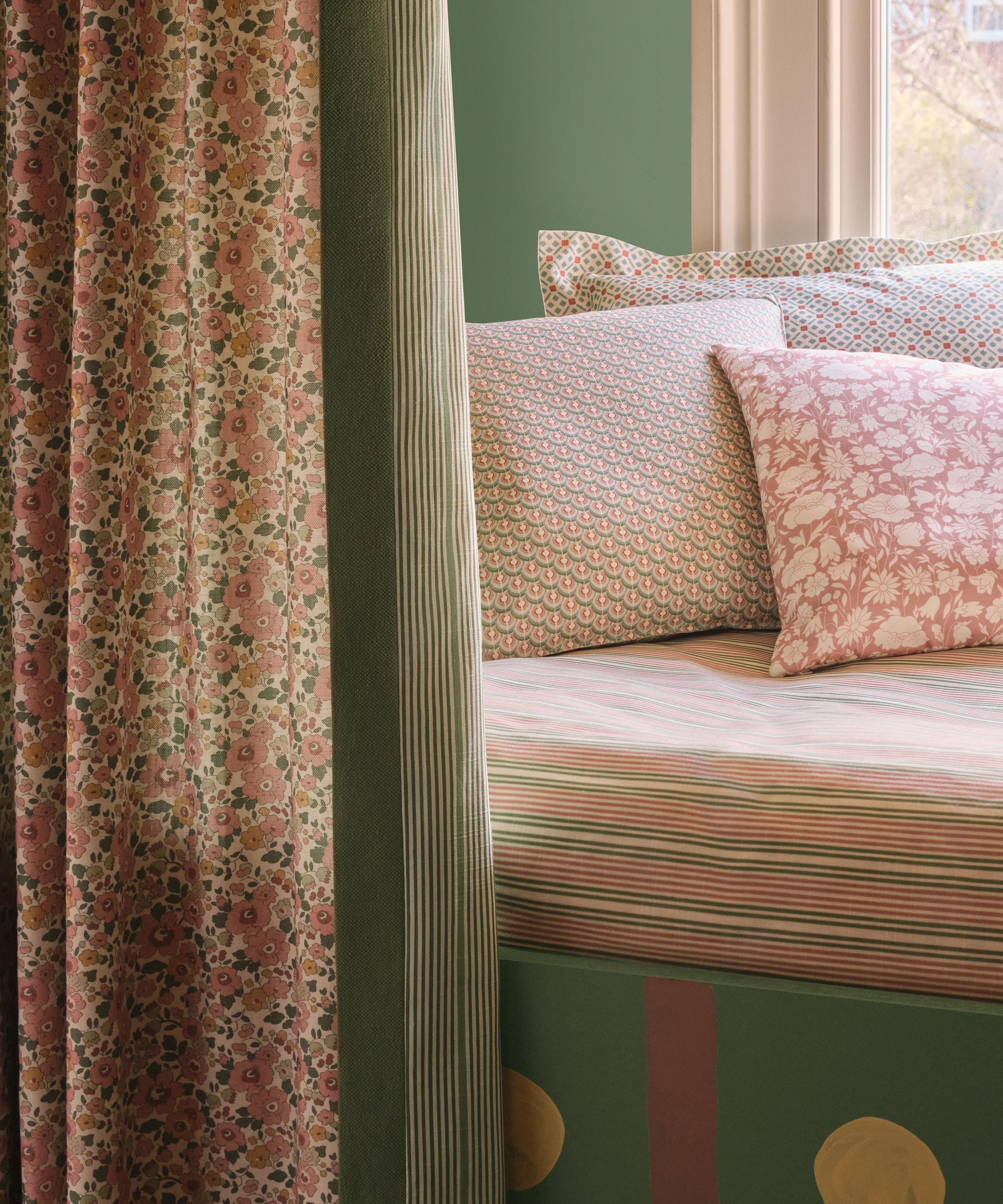Effortlessly timeless and instantly recognisable, House Florals transports the elegance of Liberty into the heart of your home. Rooted in the classic 1930s florals, the collection captures the essence of meadow flowers and humble blooms, sketched out in pencil from the artists’ windows. Beautifully complemented by modern and reworked archival stripes and graphic geometrics, the smaller scale and playful patterns evoke a sense of familiarity, celebrating our cherished heritage. The collection is set across the Liberty signature colour stories: Lacquer, Jade, Lapis, Pewter, and Lichen and comprises of floral and geometric designs that seamlessly merge with coordinating plains from the Art Colours series. Suitable for drapery, accessories, and occasional upholstery this collection is a perfect blend of traditional and contemporary aesthetics for the home.