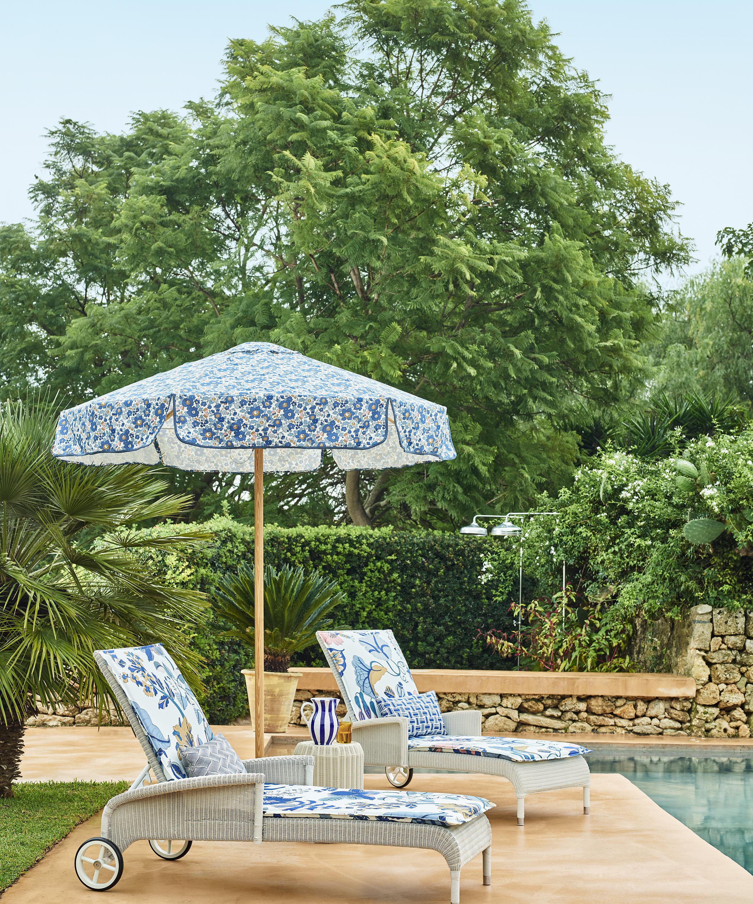 For the outdoor collection, we celebrate The Liberty Garden in all its glory. Harmonised across three distinctive ‘garden rooms’, the collection is criss-crossed by narrative stories of print and colour to reflect Liberty’s eclectic spirit. Drawing inspiration from the beauty of Arts and Crafts gardens, decadent ornamental florals appear juxtaposed against geometric botanical layouts and the classic nostalgia of Liberty ditsy florals – unique and beautiful settings for outdoors, painted in living colour.