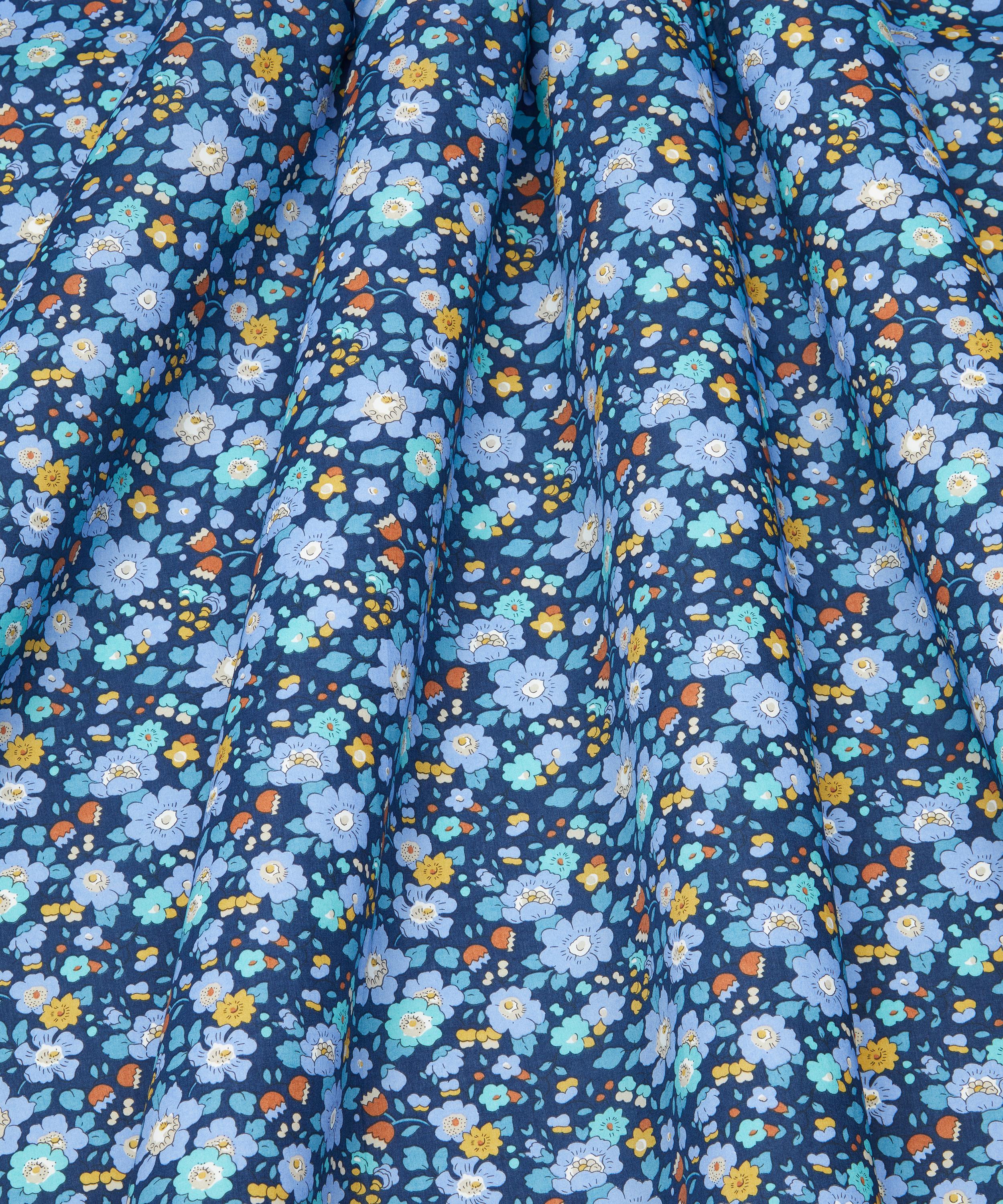 Betsy Meadow is a stylised small floral design, created in 1933. It was designed by the mysterious designer D.S., who was behind many of our other favourite classic Liberty prints of the era. Betsy has appeared on Classic Tana since 1982 and now comes with an added coloured ground.