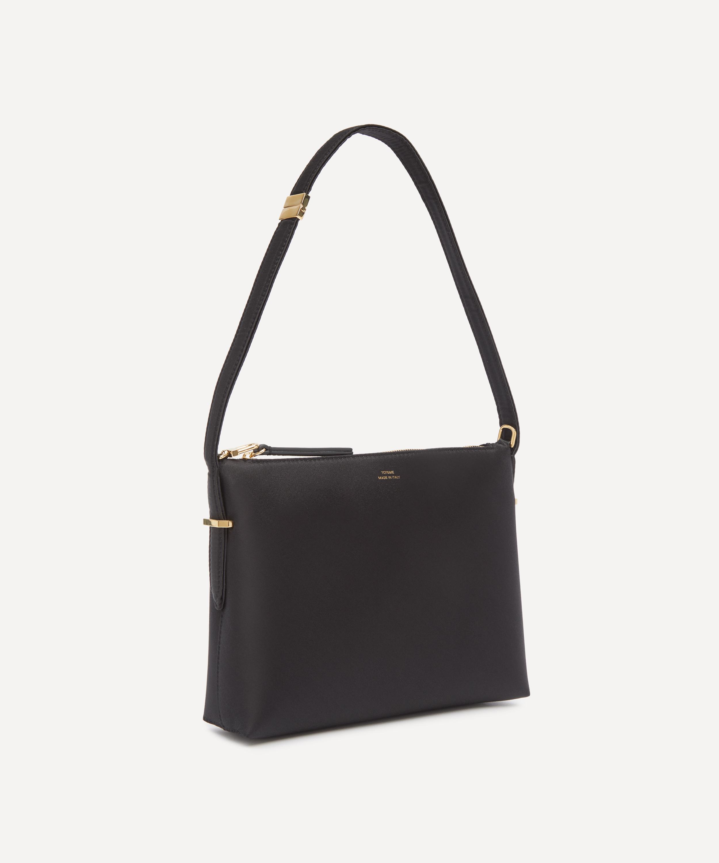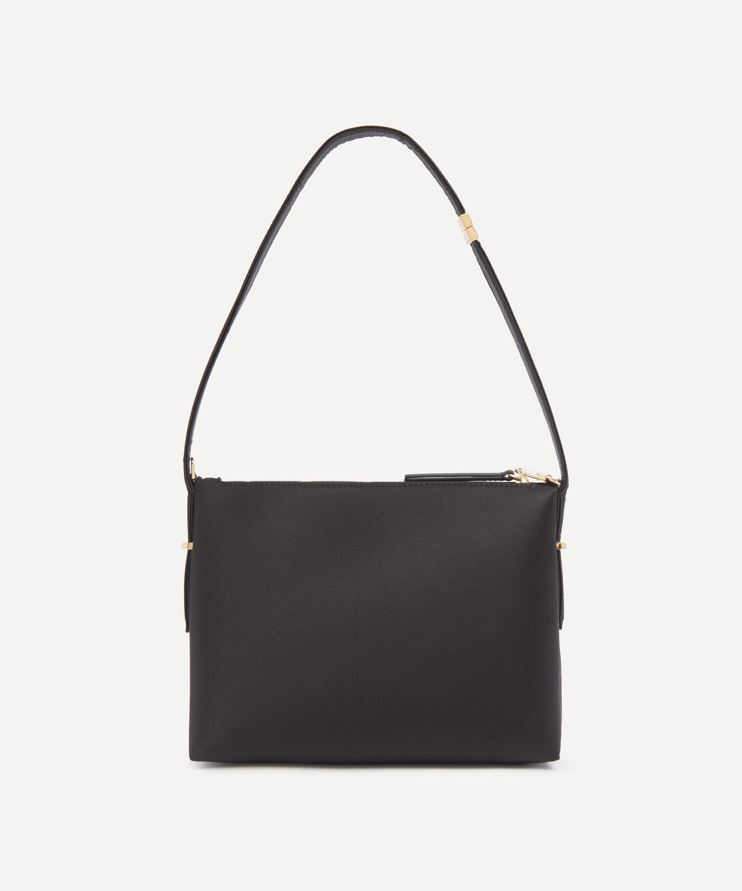 Crafted in Italy from lustrous satin finished with gold-tone metal hardware, this versatile bag features a small clasp that transforms it into a sculptural scooped silhouette – wrapping gracefully around the wrist with its fine strap, it is ideal for use as a purse or evening bag.
