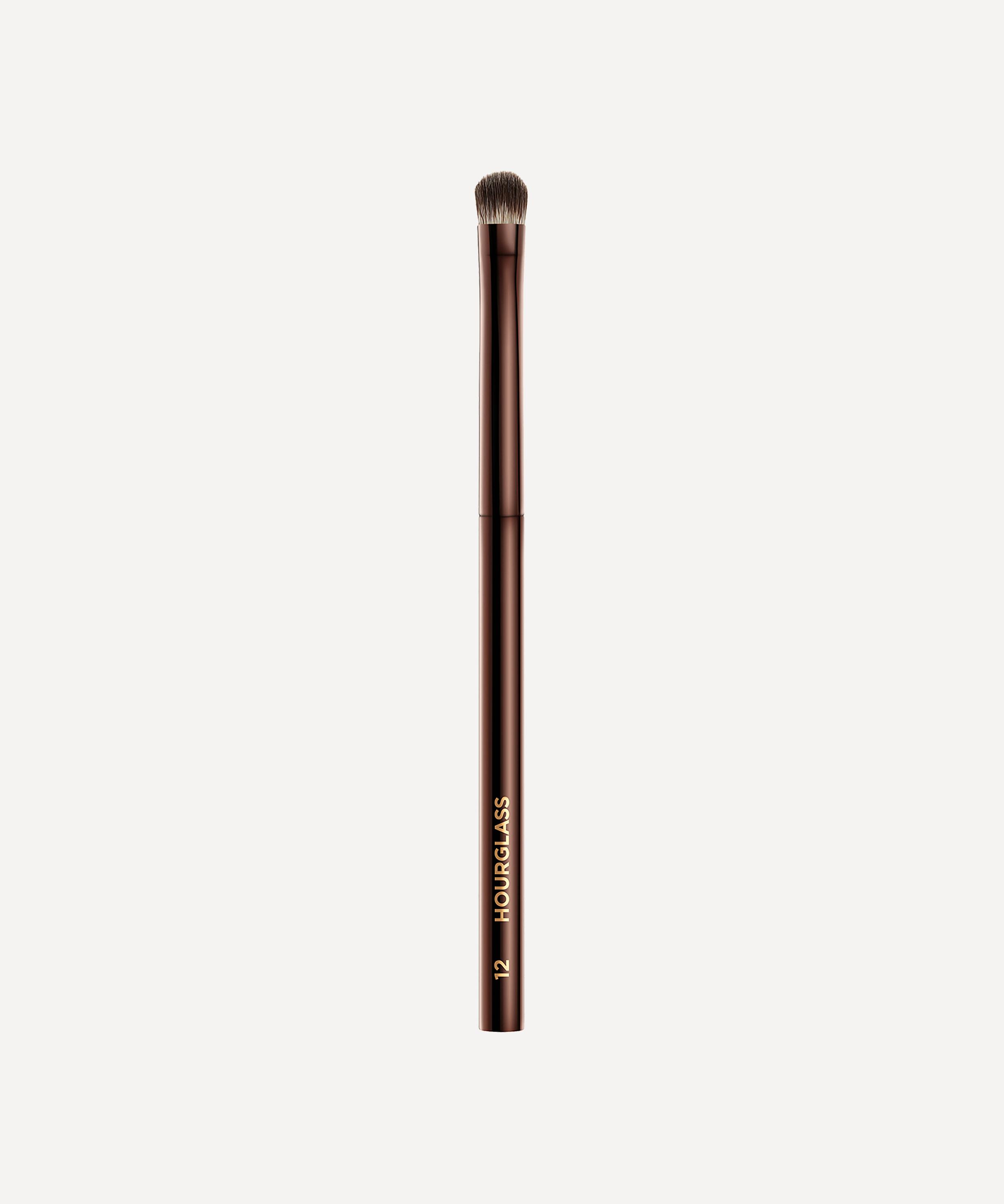 The Beveled Shadow Brush No. 12 is an eye makeup brush from Hourglass that has been designed with densely packed synthetic bristles and a sloped edge for strategic eyeshadow placement.