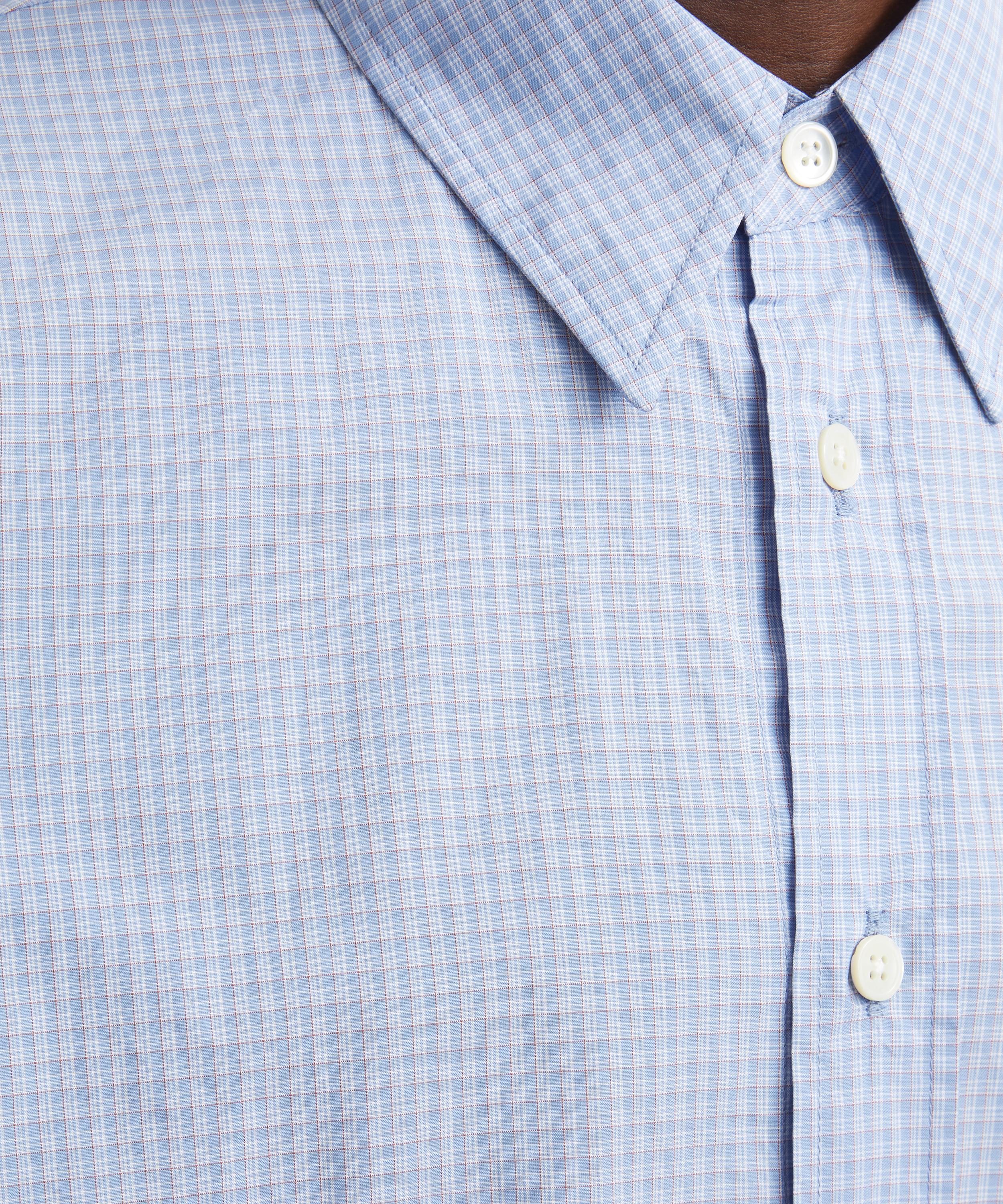 Cut from a checked cotton for a regular, straight silhouette this slick shirt boasts a curved hem, further accentuating the contemporary mood. A versatile wardrobe staple you’ll trust all year round, it pairs easily with soft tailoring or crisp denim.