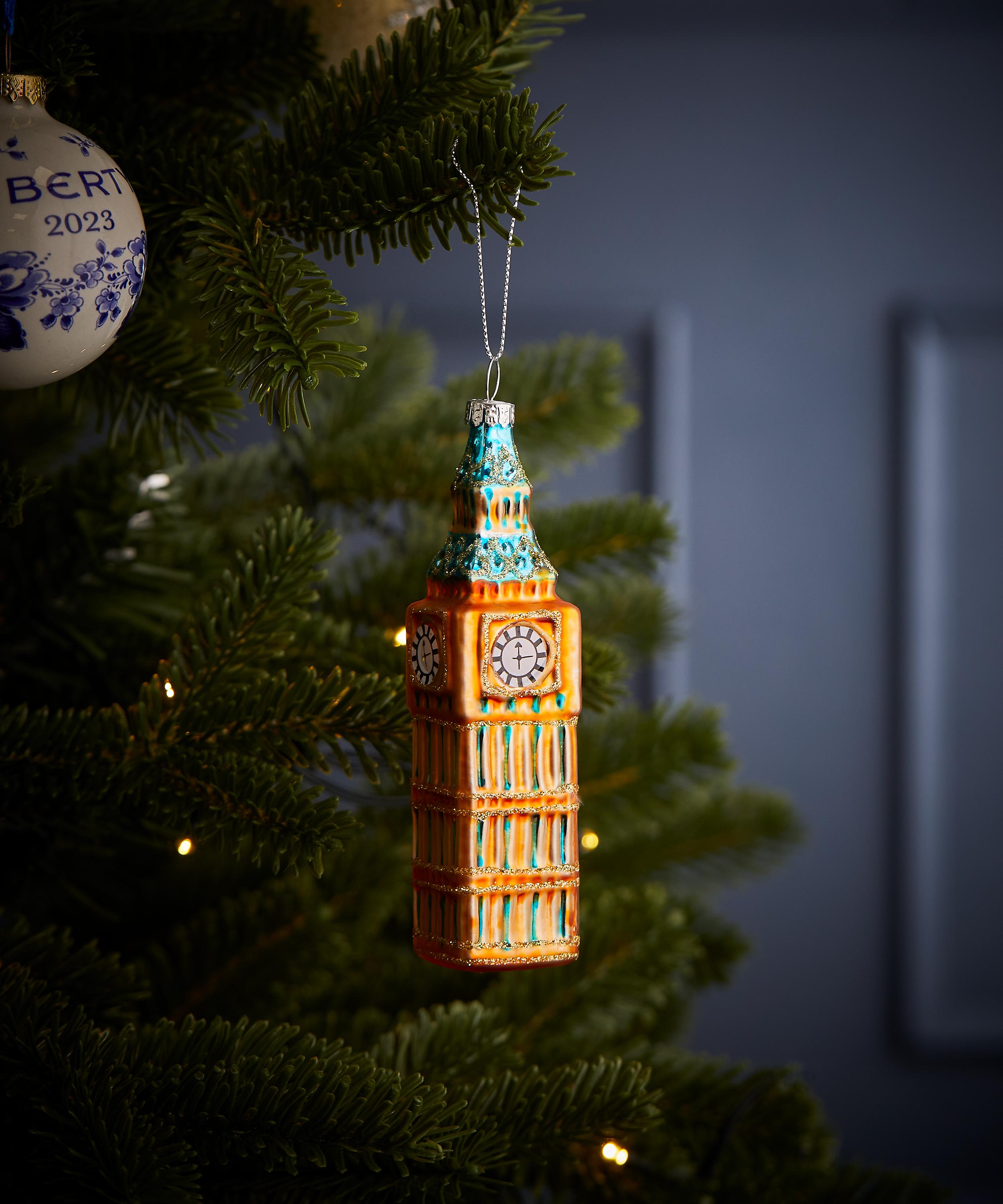 An alternative to traditional decorations, it’s exquisitely crafted from glass, featuring a gold and light blue Big Ben design – a luxuriously embellished option for those seeking a treasured heirloom piece, use to bring a pop of colour to your festive display.