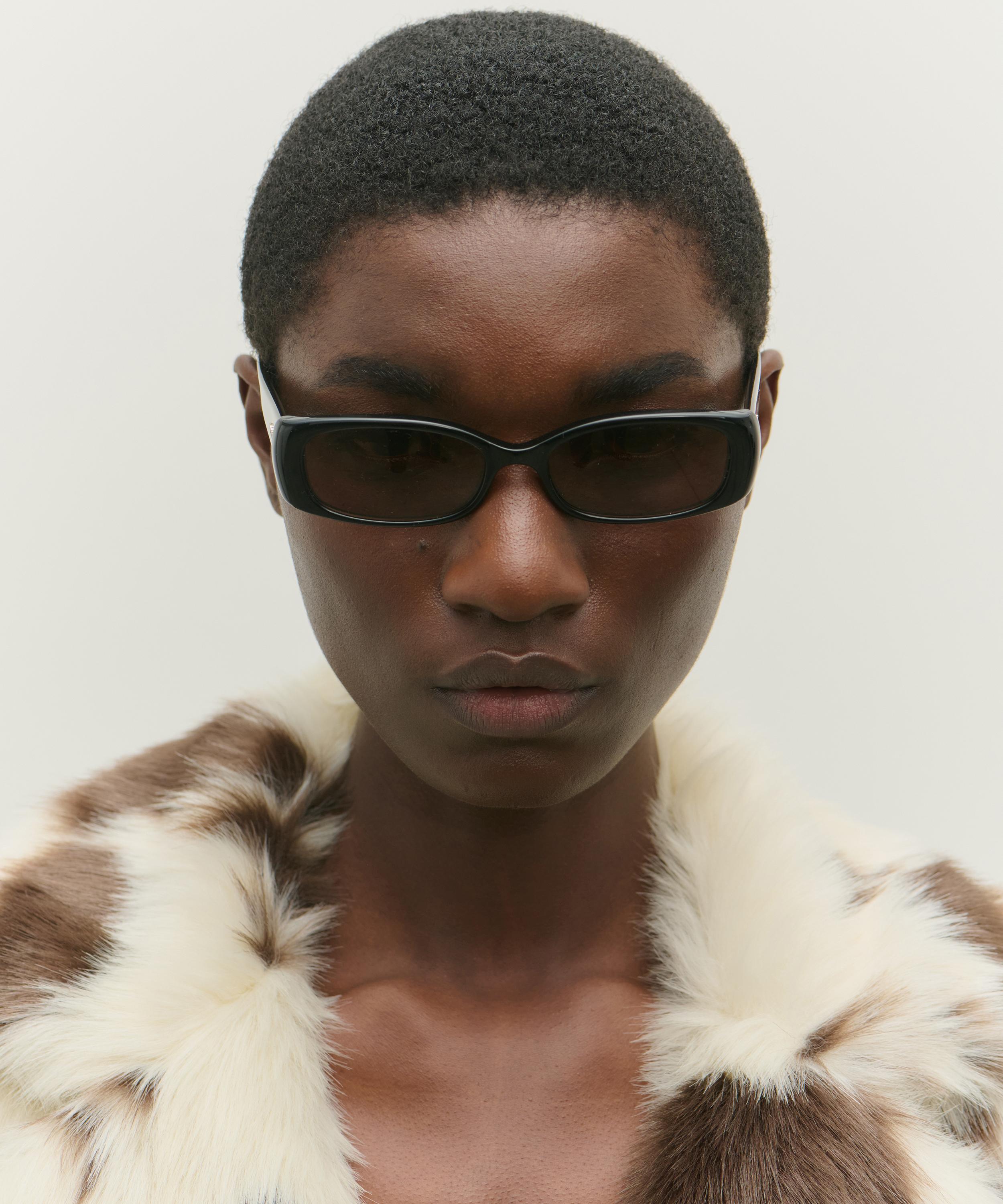 Fitted with brown-tinted lenses, this versatile pair feature a sleek rectangular silhouette crafted from Mazzucchelli cellulose acetate in a classic black colourway, and are complete with gold-tone branding to the temples – guaranteed to take your look to new heights.
