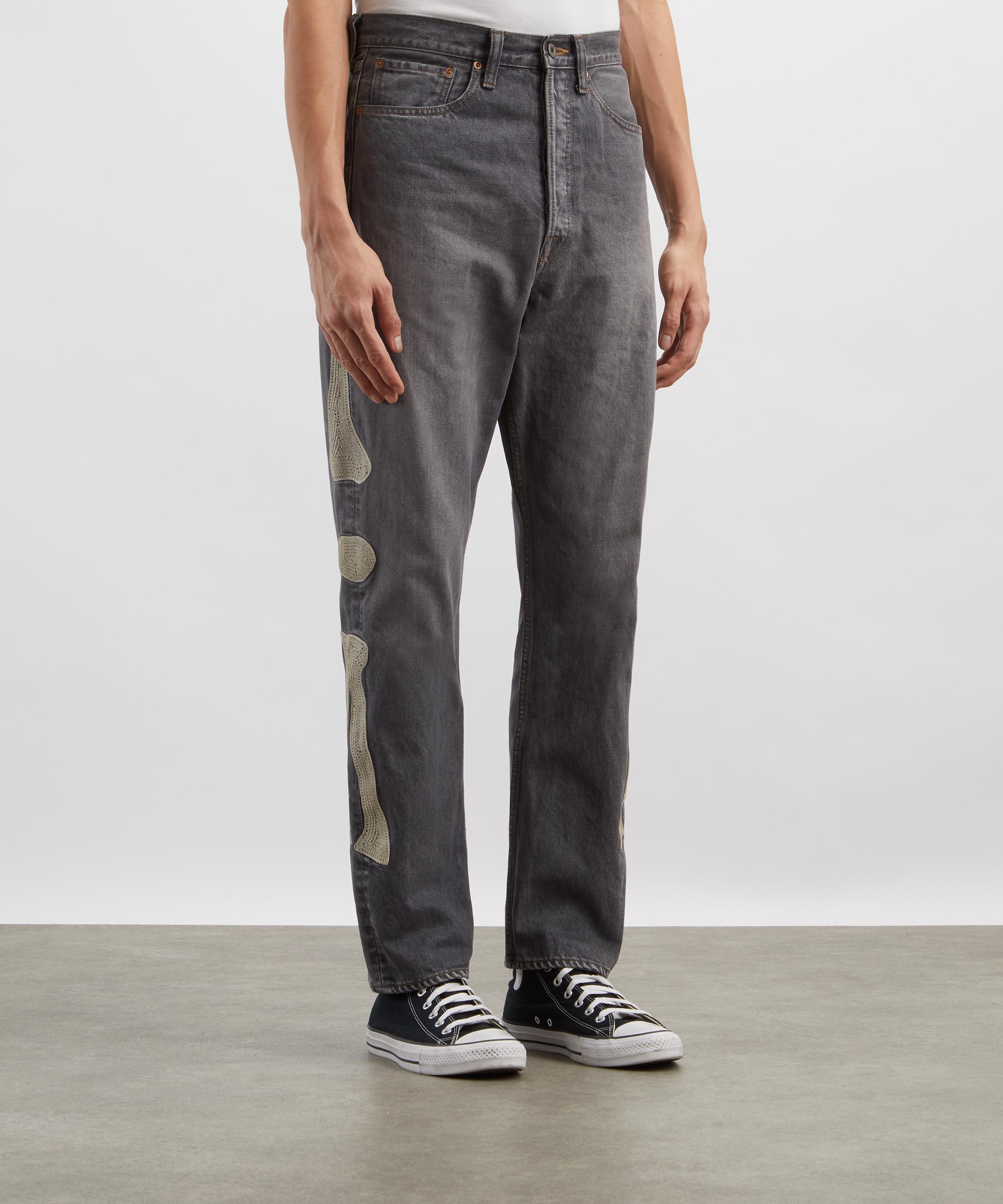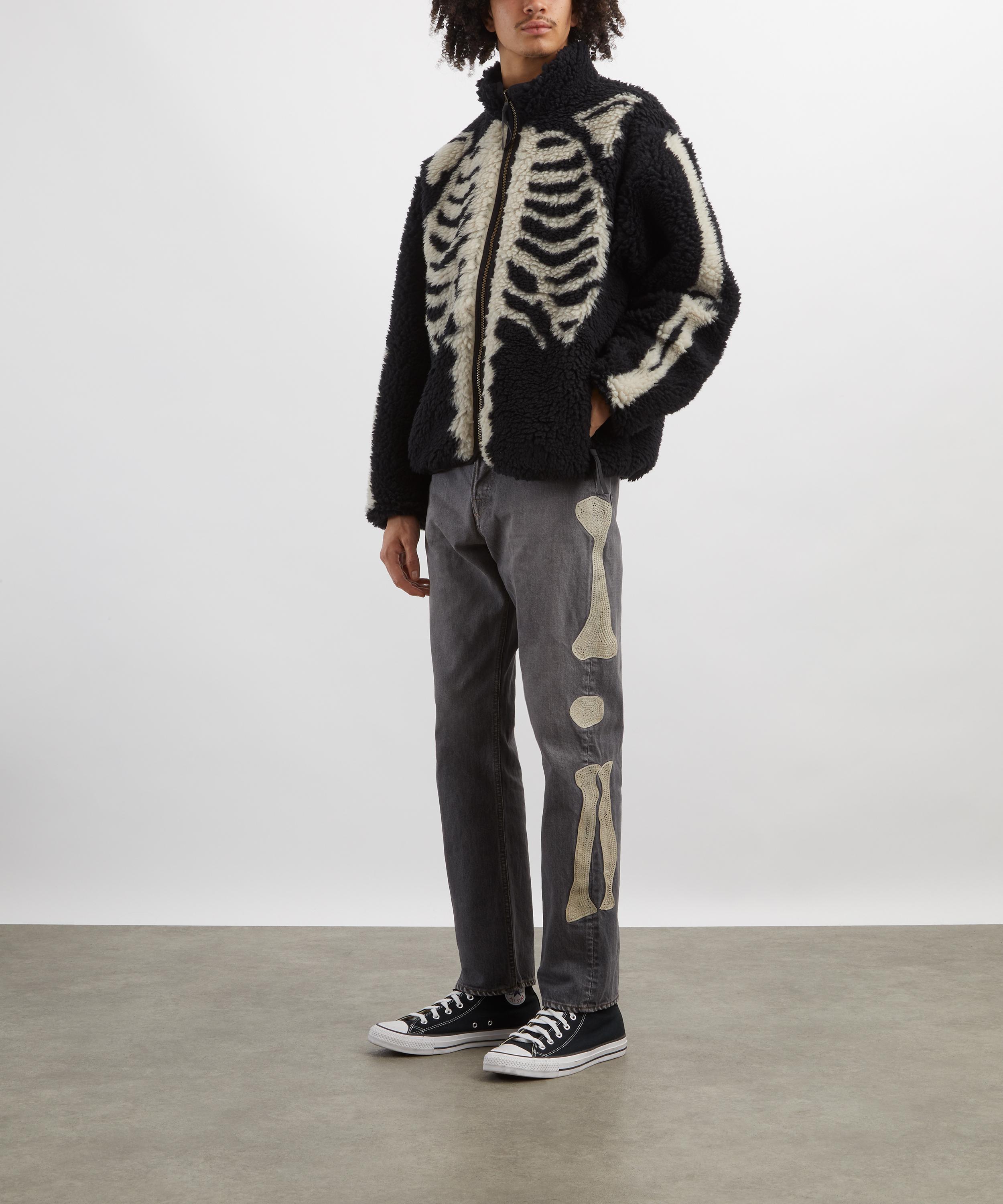 Crafted in Japan from 12oz denim, these jeans are detailed with signature ‘Day of the Dead’ embroidery along the sides. Designed with a slightly tapered silhouette, they feature a button fly, back adjuster, and classic five-pocket styling for a contemporary take on classic denimwear.