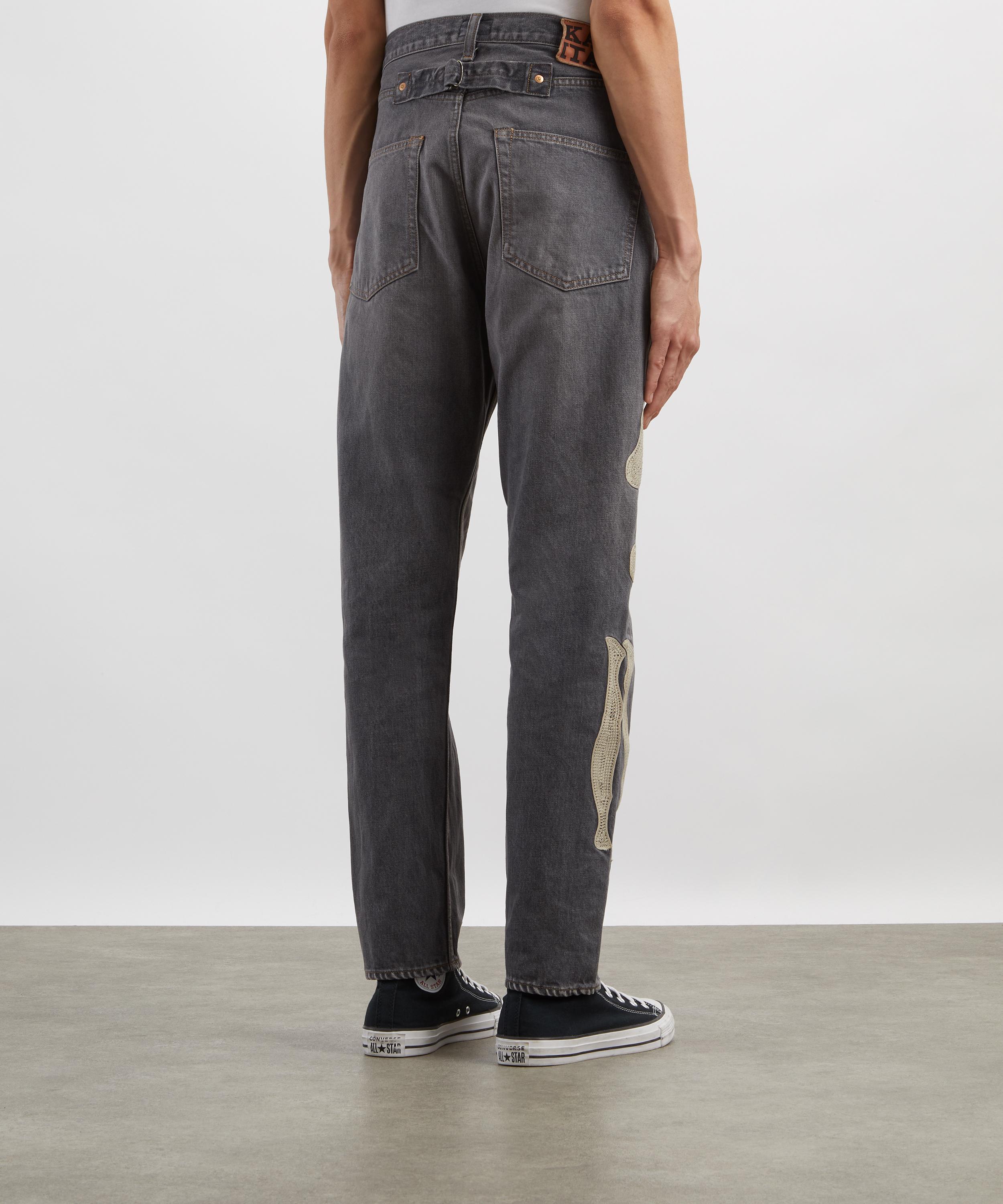 The 12oz Denim Mexican Tuxedo 5P Okagilly Jeans from cult Japanese label KAPITAL are designed with a modern, streetwear-inspired aesthetic.