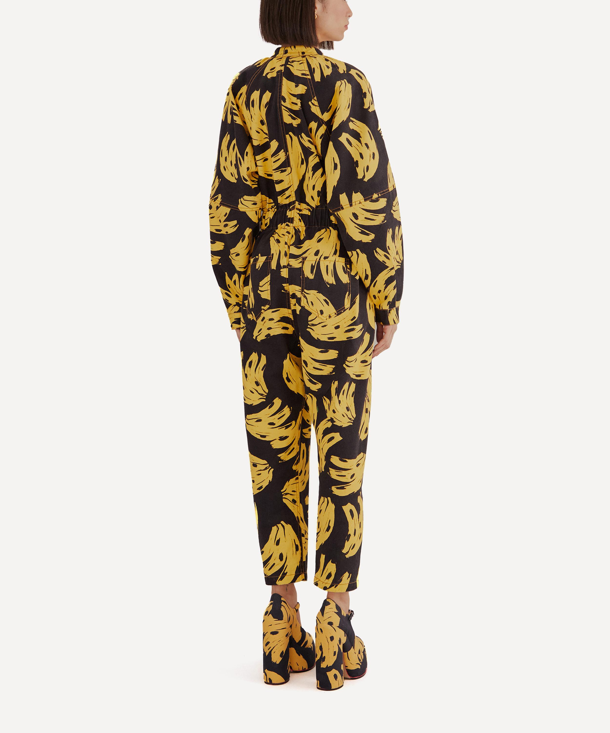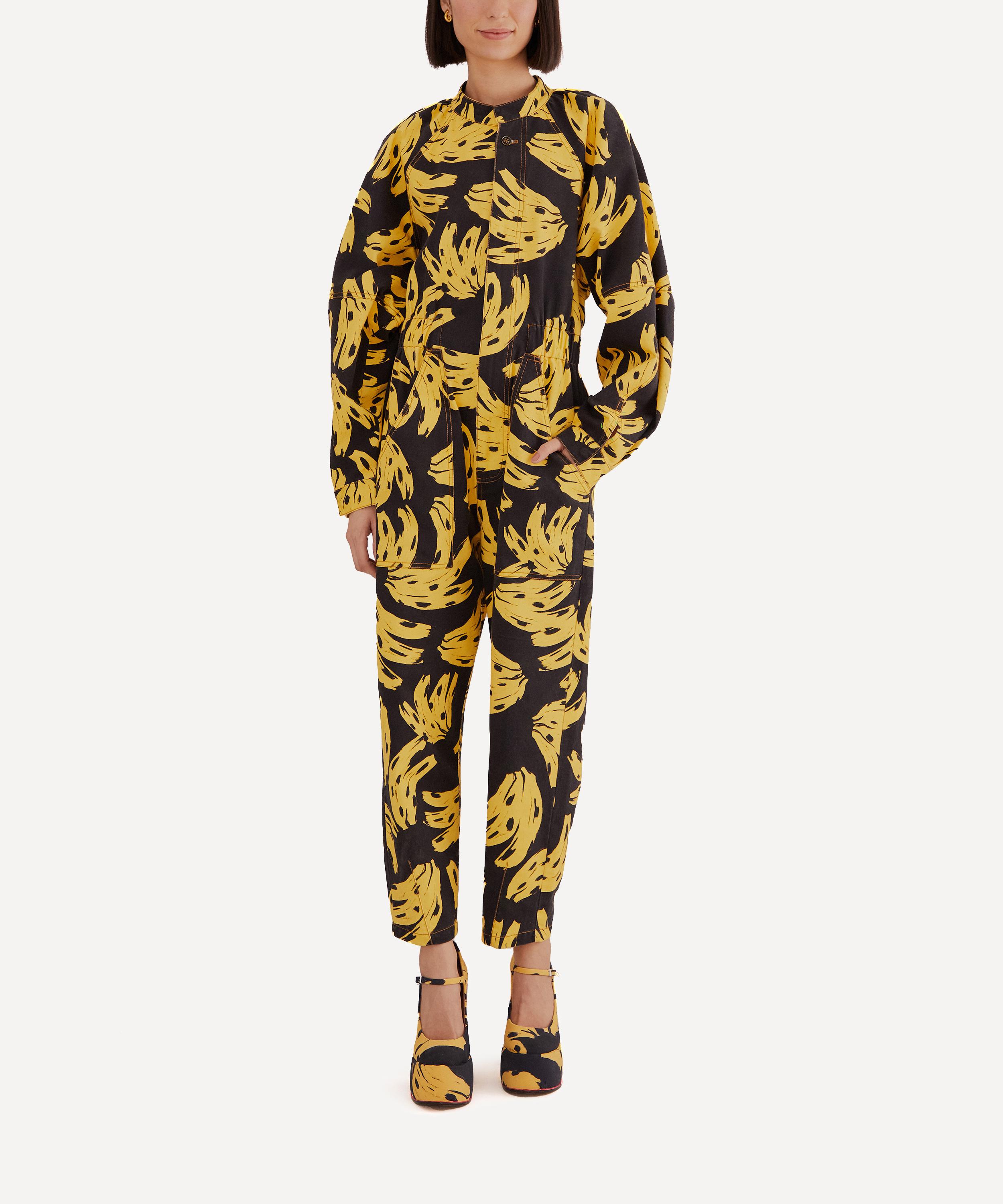 Bold and brimming with bananas, this cotton all-in-one jumpsuit features a round neckline, voluminous dolman sleeves and a hidden button closure. Effortlessly practical and easy to wear, it’s fitted with an elasticated waist, and multiple patch pockets to the front and back.