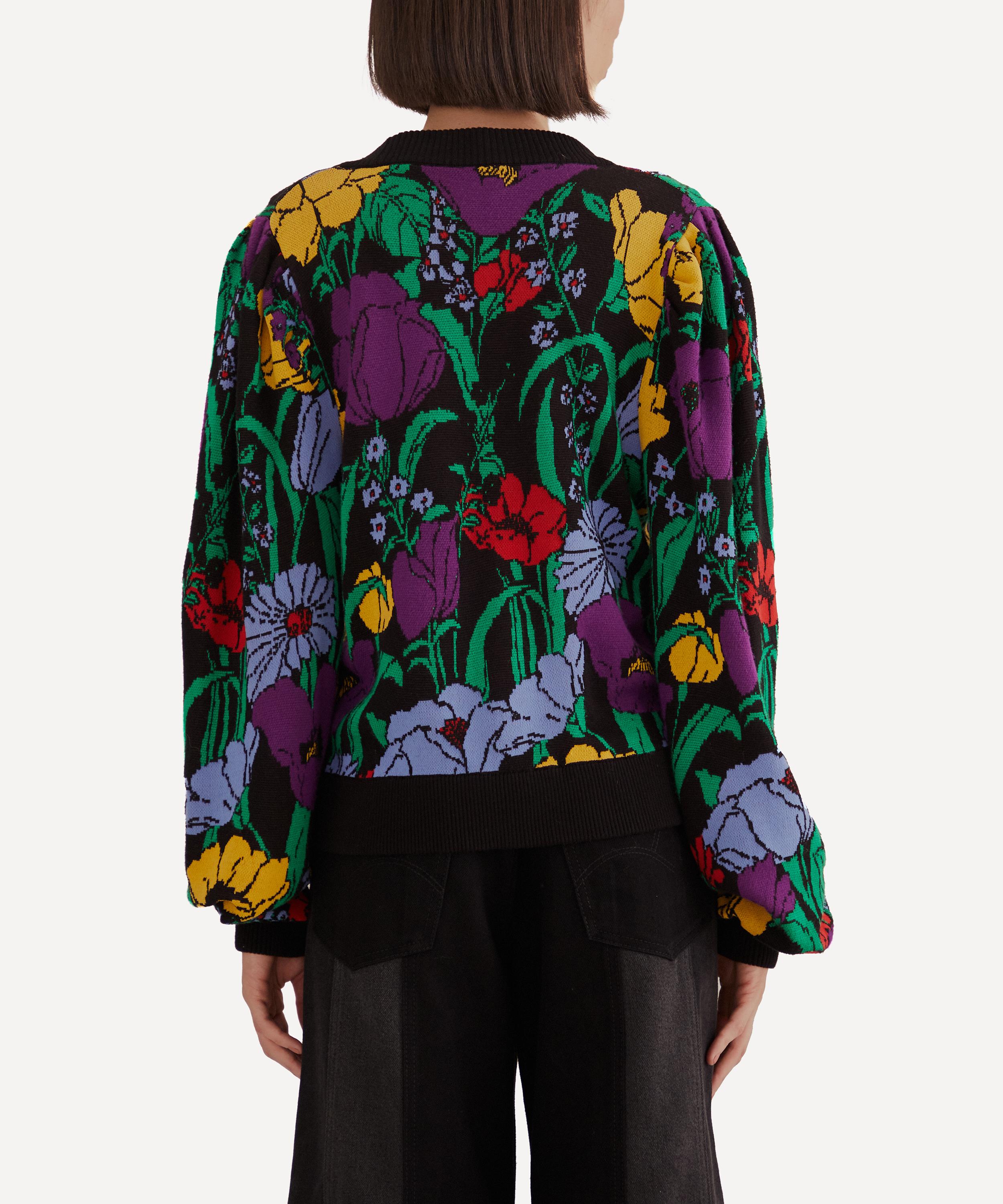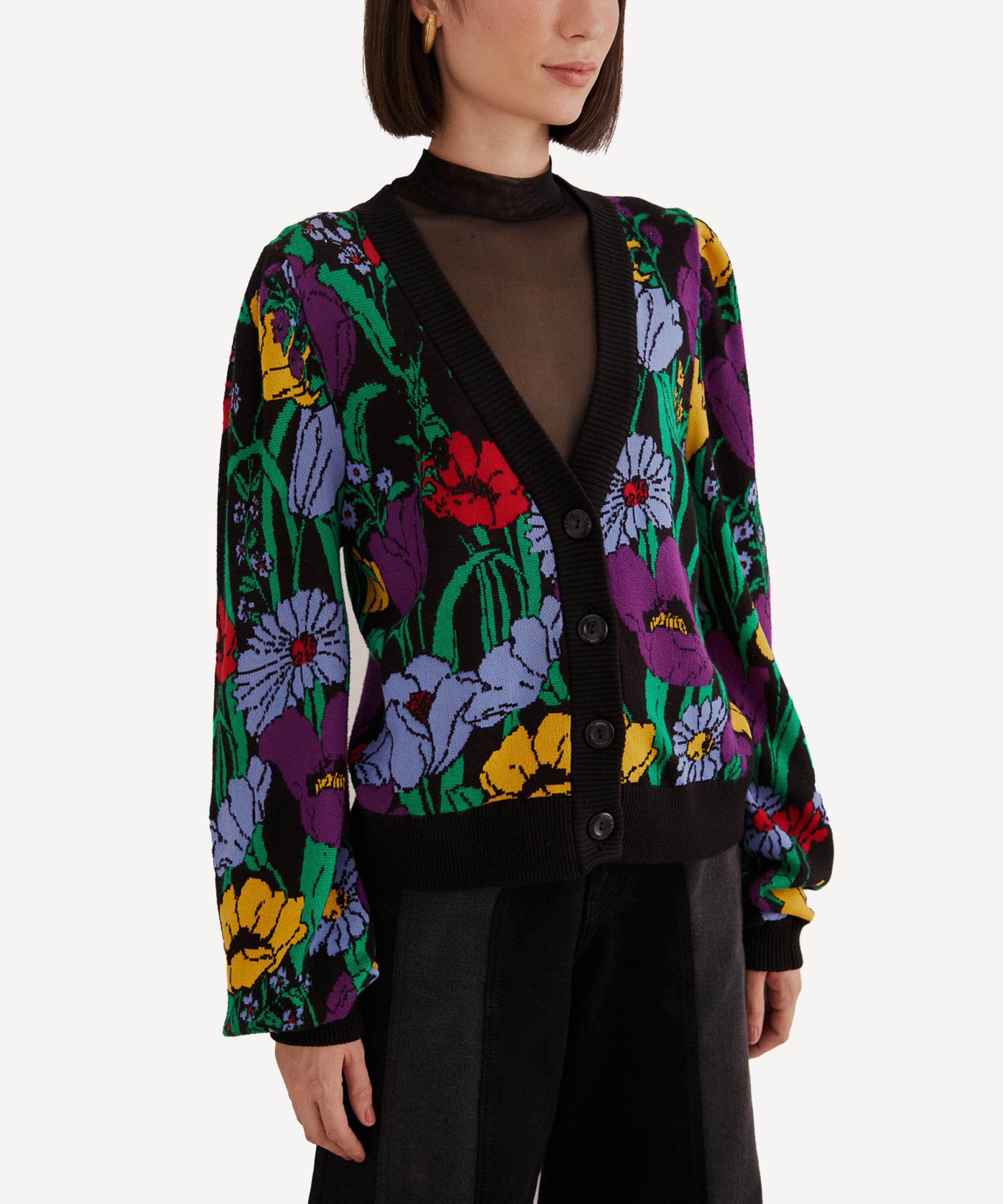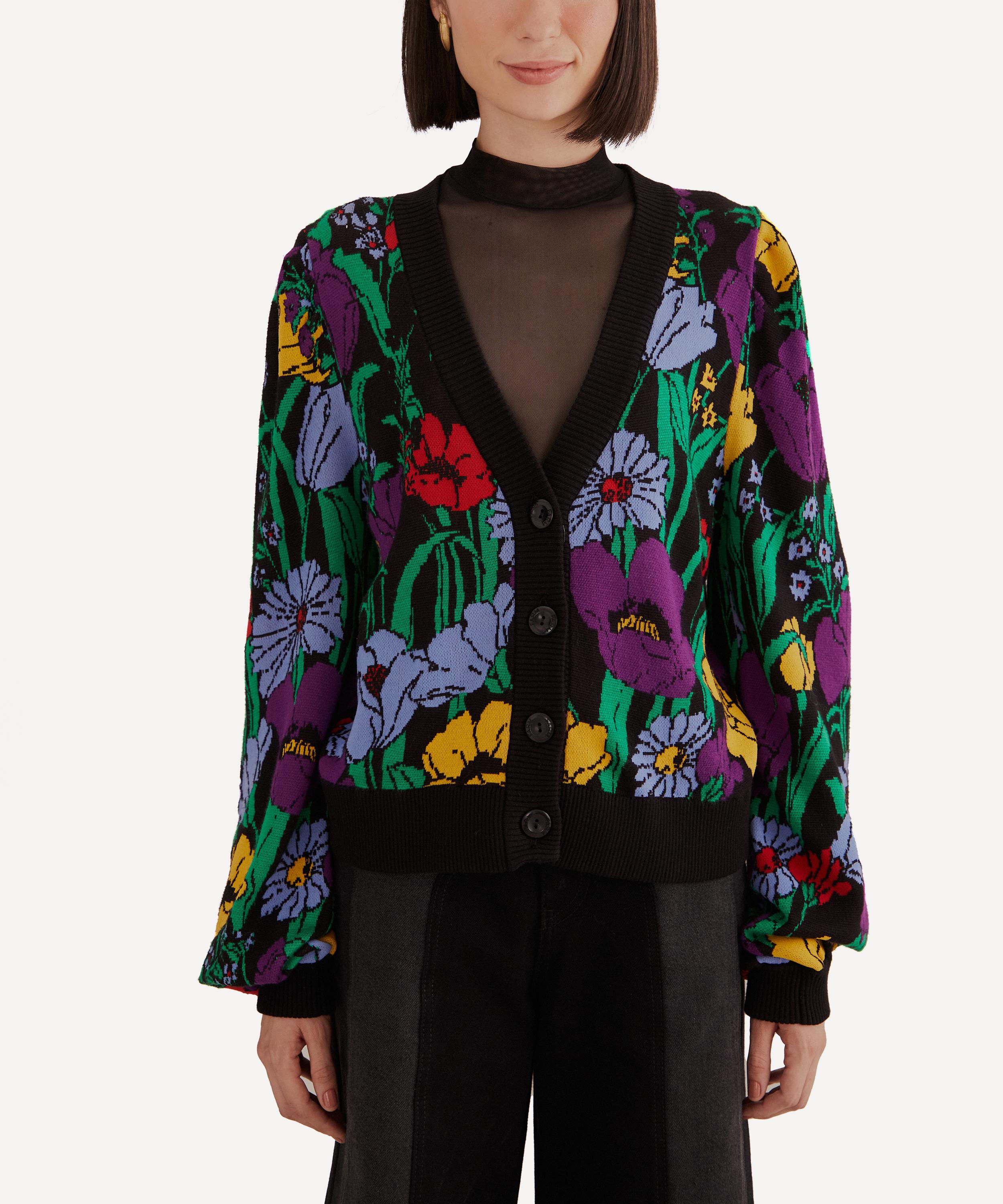 Adorned all-over in the bold Black Bucolic Garden pattern, this button-up cardigan is designed for a relaxed, easy fit with dropped shoulders, slouchy long sleeves and a plunging V-neckline, complete with chunky ribbed trims.