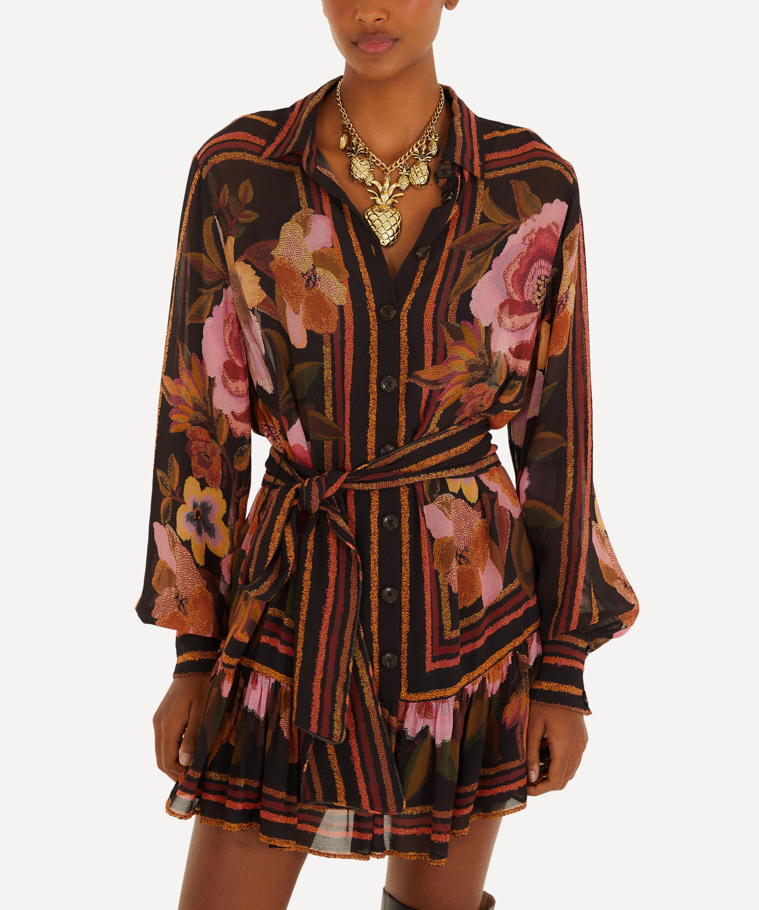 The Black Chenille Flowers Belted Long-Sleeve Mini Dress from Rio de Janeiro-based label FARM Rio brings some Brazilian vivacity to your new-season edit.
