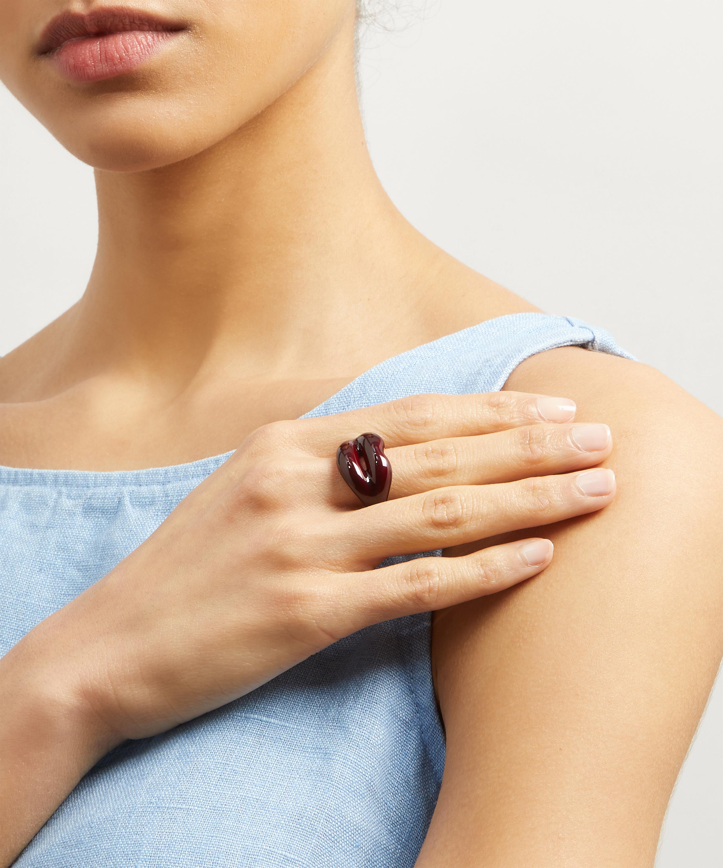 This rendition of the iconic Hotlips ring by British designer Solange Azagury-Partridge is coated in glossy black cherry lacquer.