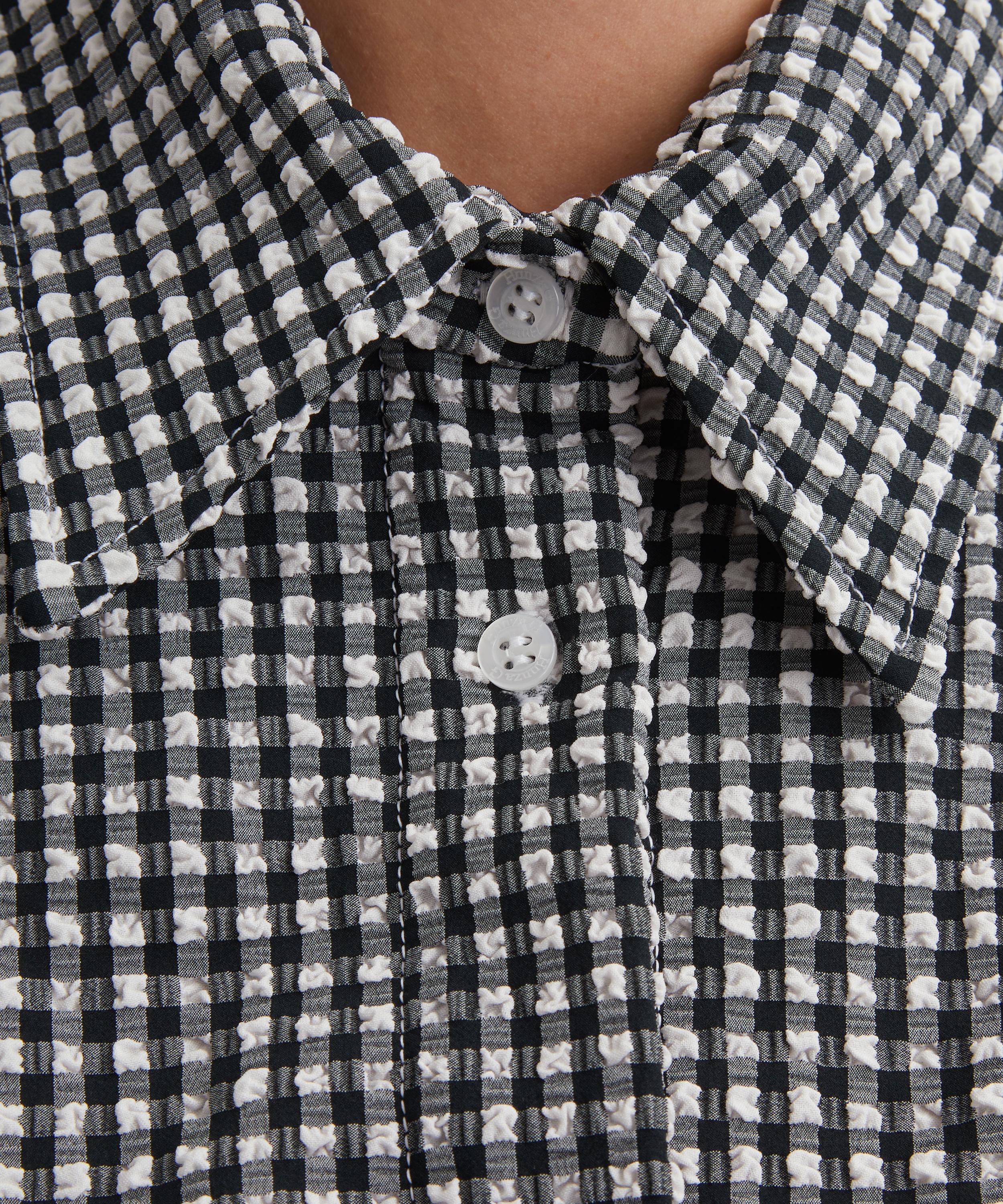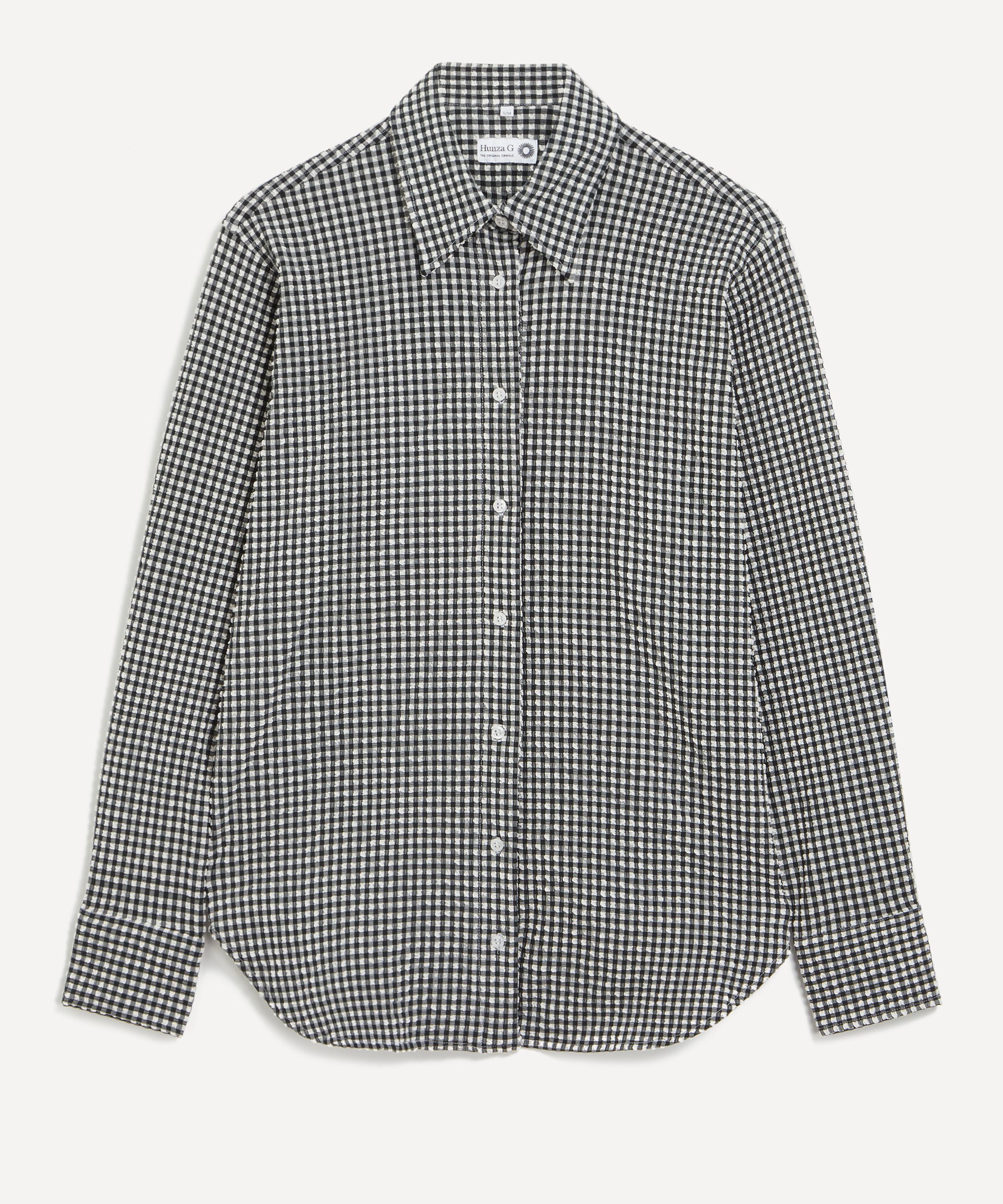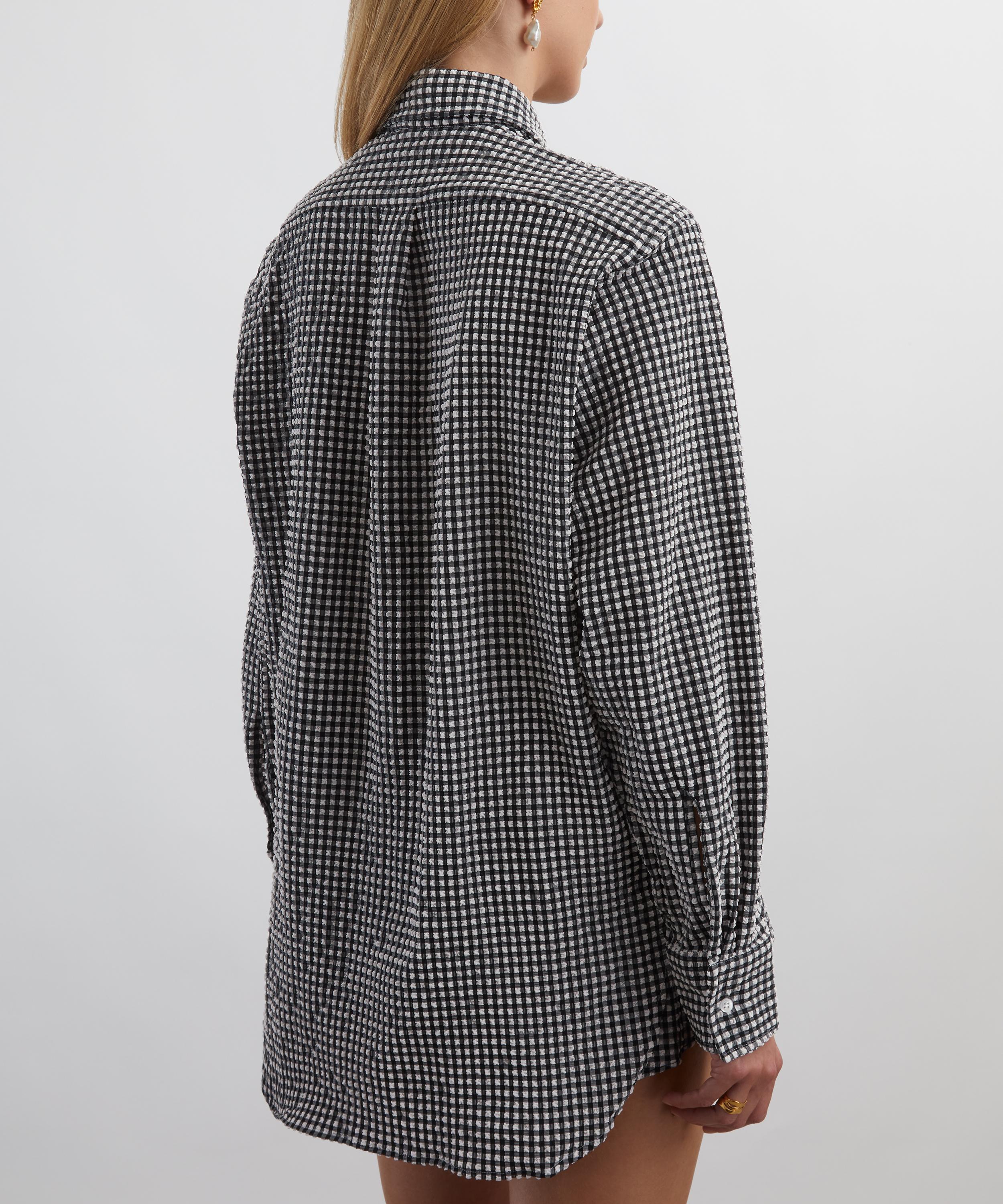 A perfect blend of style and protection, the Black Gingham Seersucker Shirt from Hunza G is a must-have swimwear staple.