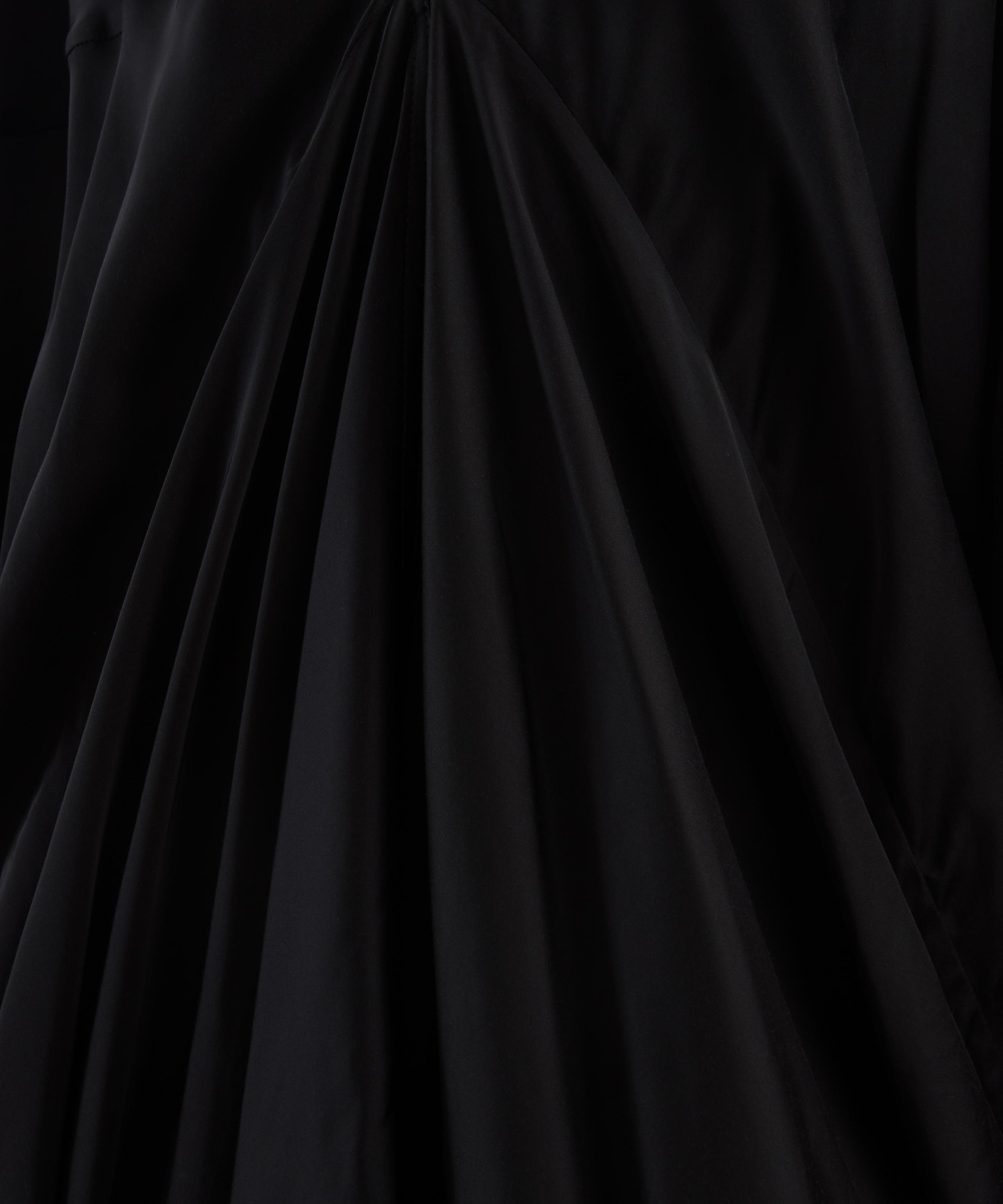 Crafted from lightweight, fluid charmeuse, the Kite Gown features a floor-length silhouette with a V-neckline and centre-front draping that cascades into a gently tapered hem.