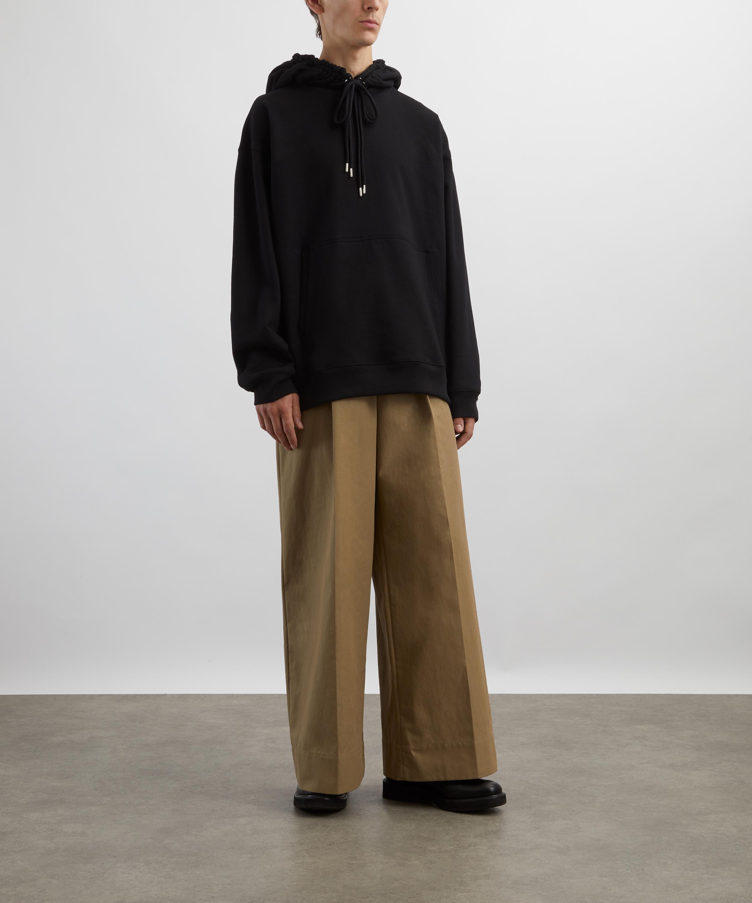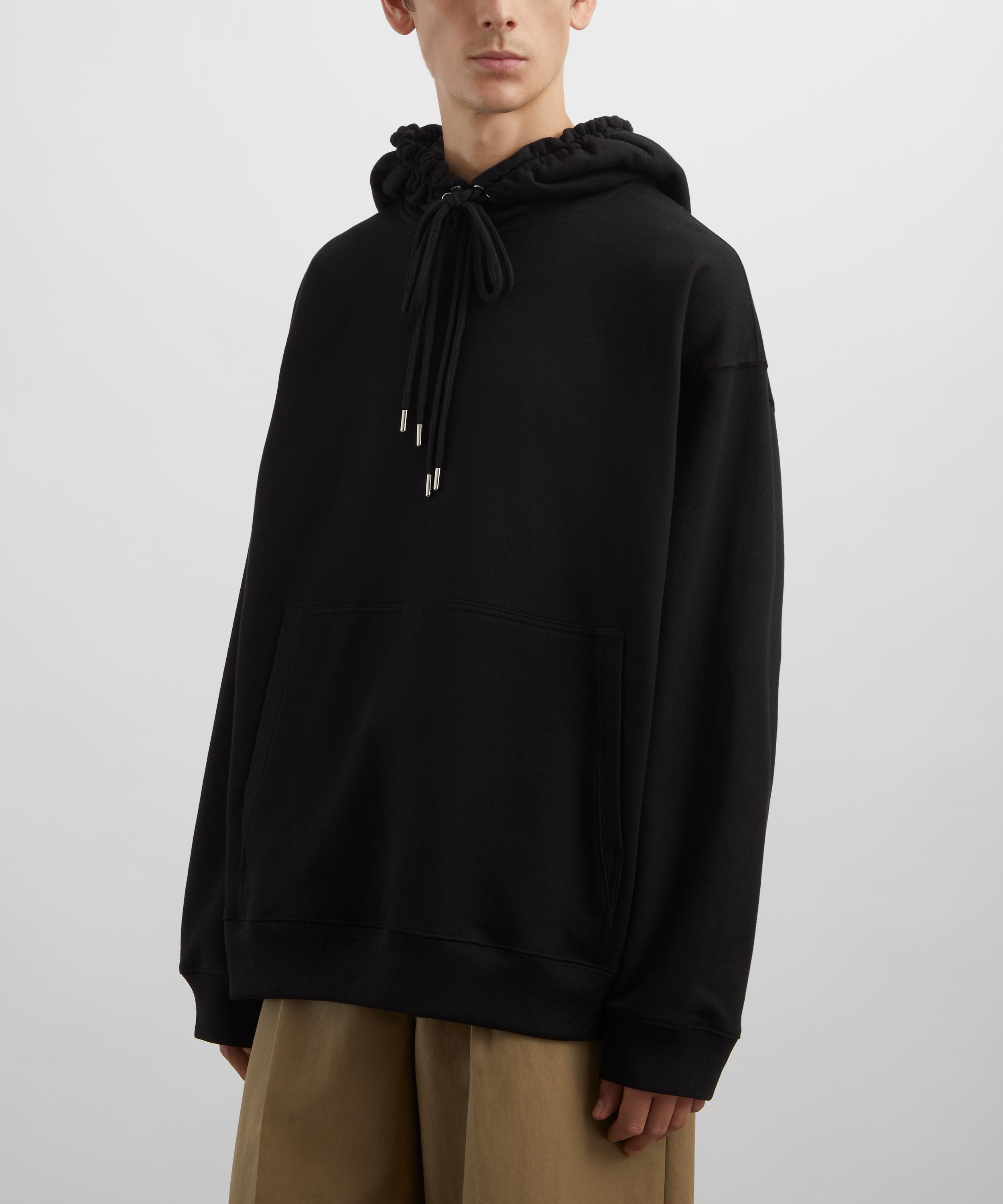 This Black Loose-Fit Hoodie from Dries Van Noten exemplifies the Belgian label’s avant-garde approach to contemporary fashion.