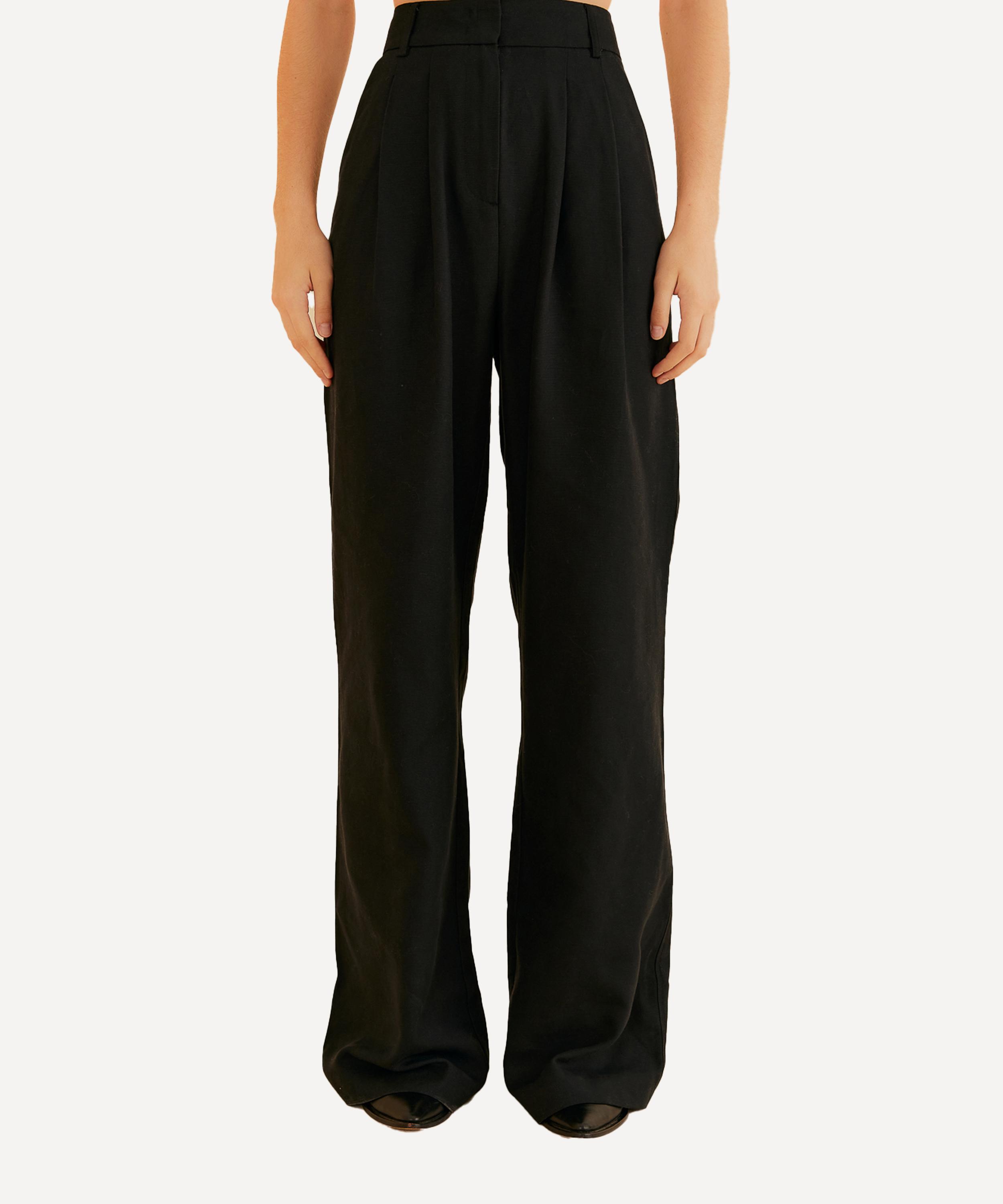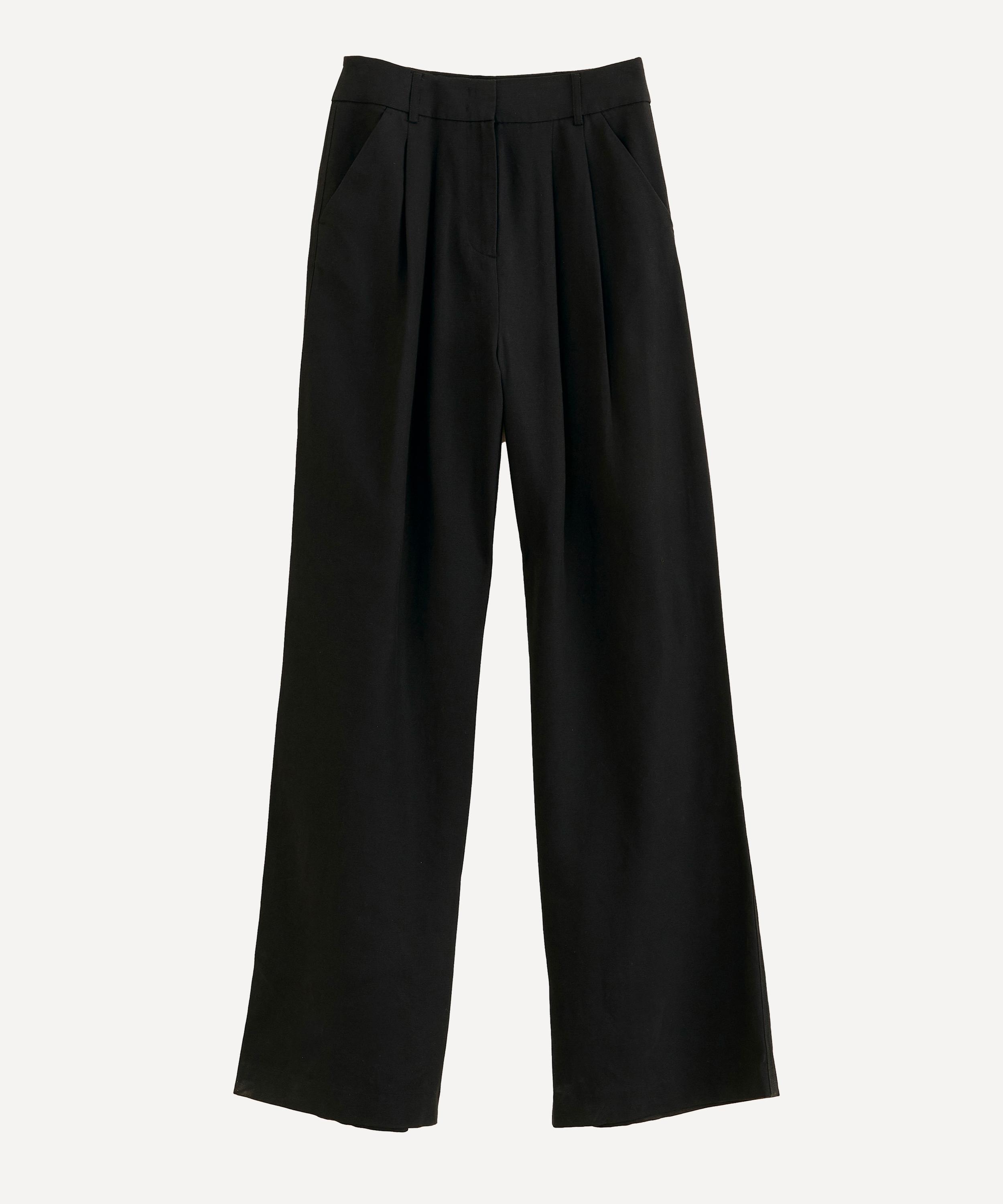Crafted from linen, this easy-going pair boast a voluminous wide leg silhouette complete with belt loops, central front pleats and rear welt pockets for a tailored finishing touch.
