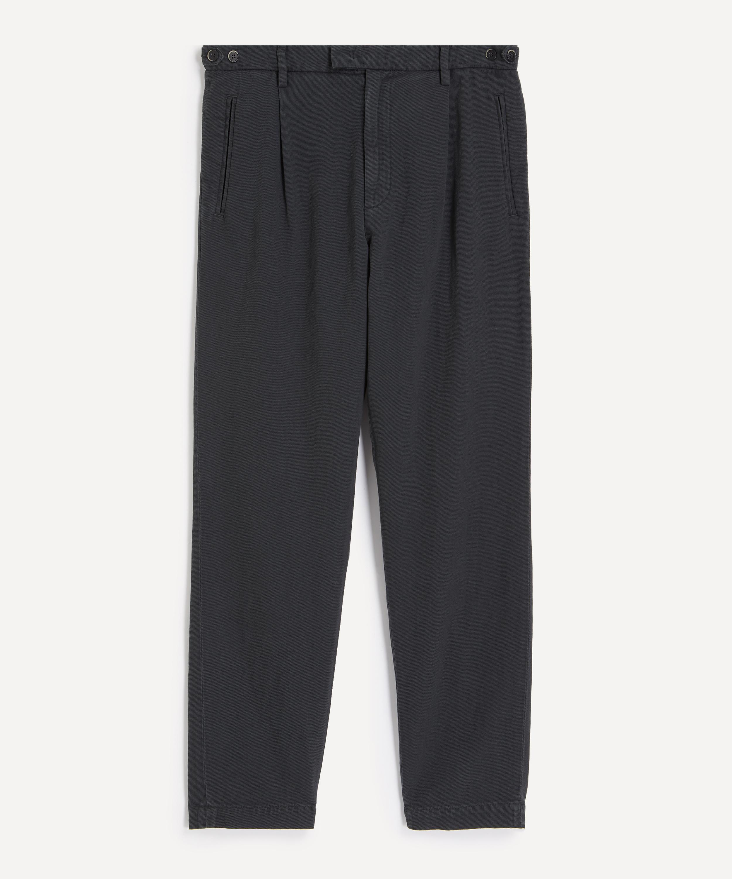 Crafted in Italy from a lightweight cotton and linen blend, these mid-rise trousers are cut for a classic regular fit, featuring soft front pleats, central creases, and an extended waistband for a timeless tailored finish.