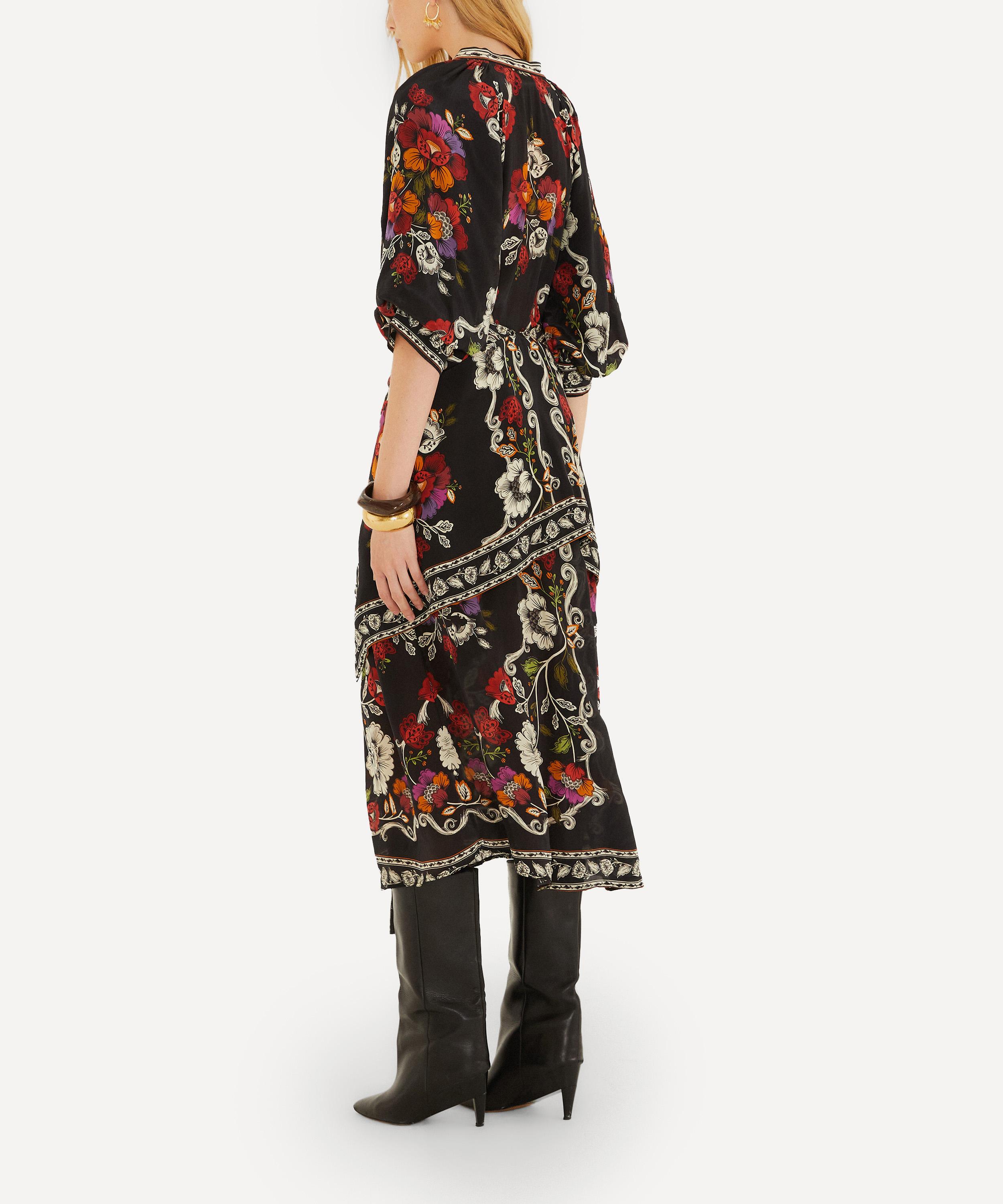 The Black Rococo Flowers Belted Midi Dress from Rio de Janeiro-based label FARM Rio brings some Brazilian vivacity to your new-season edit.