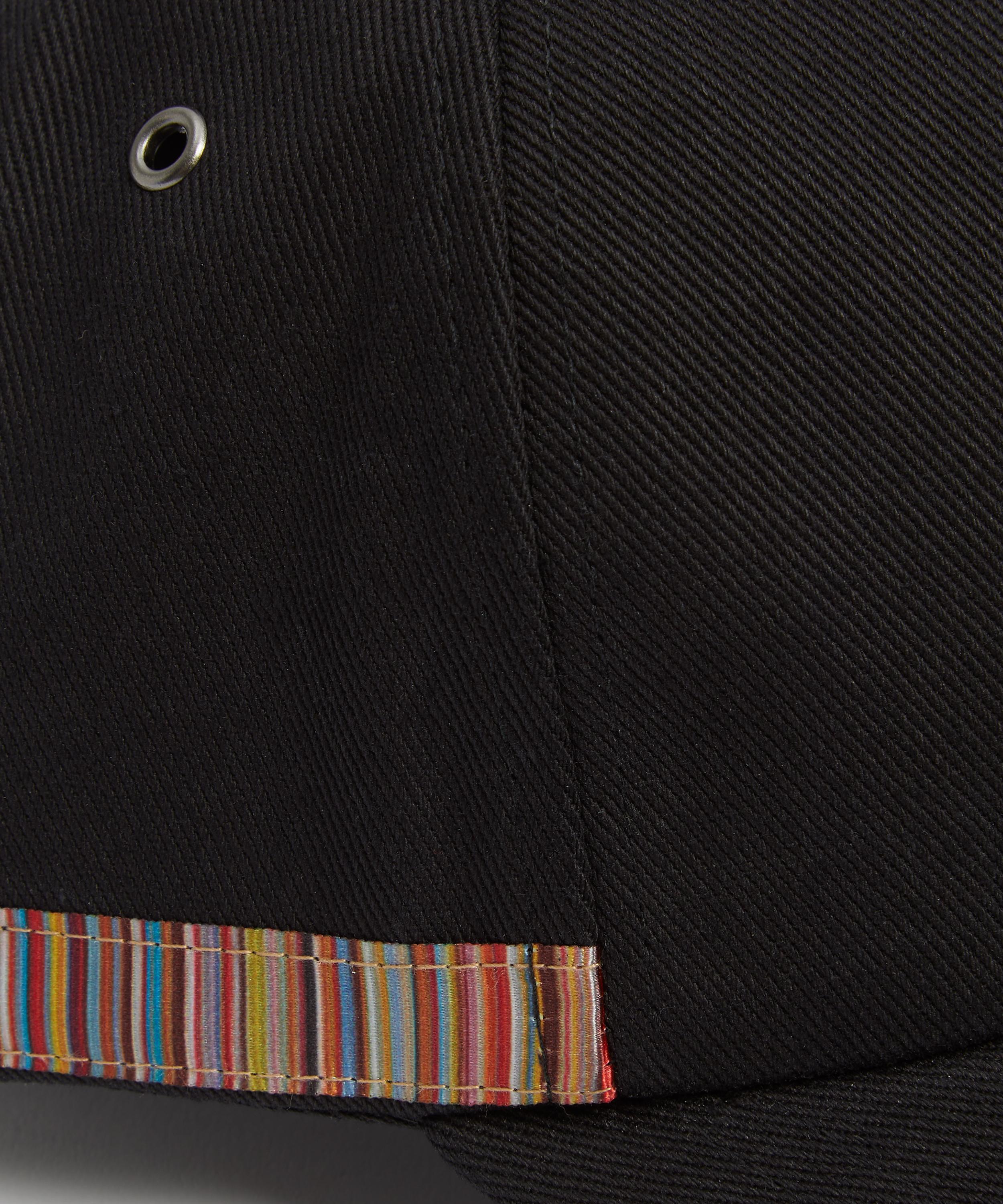 Paul Smith presents an essential wardrobe staple with the Black Signature Stripe Trim Baseball Cap.