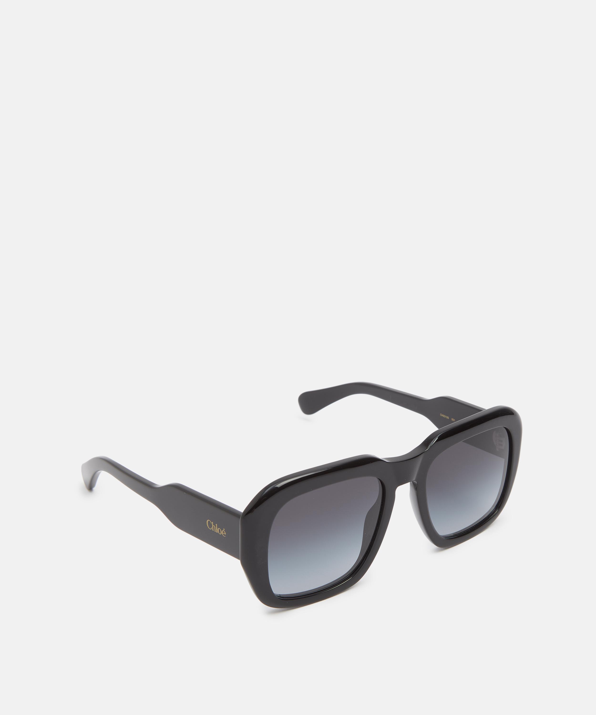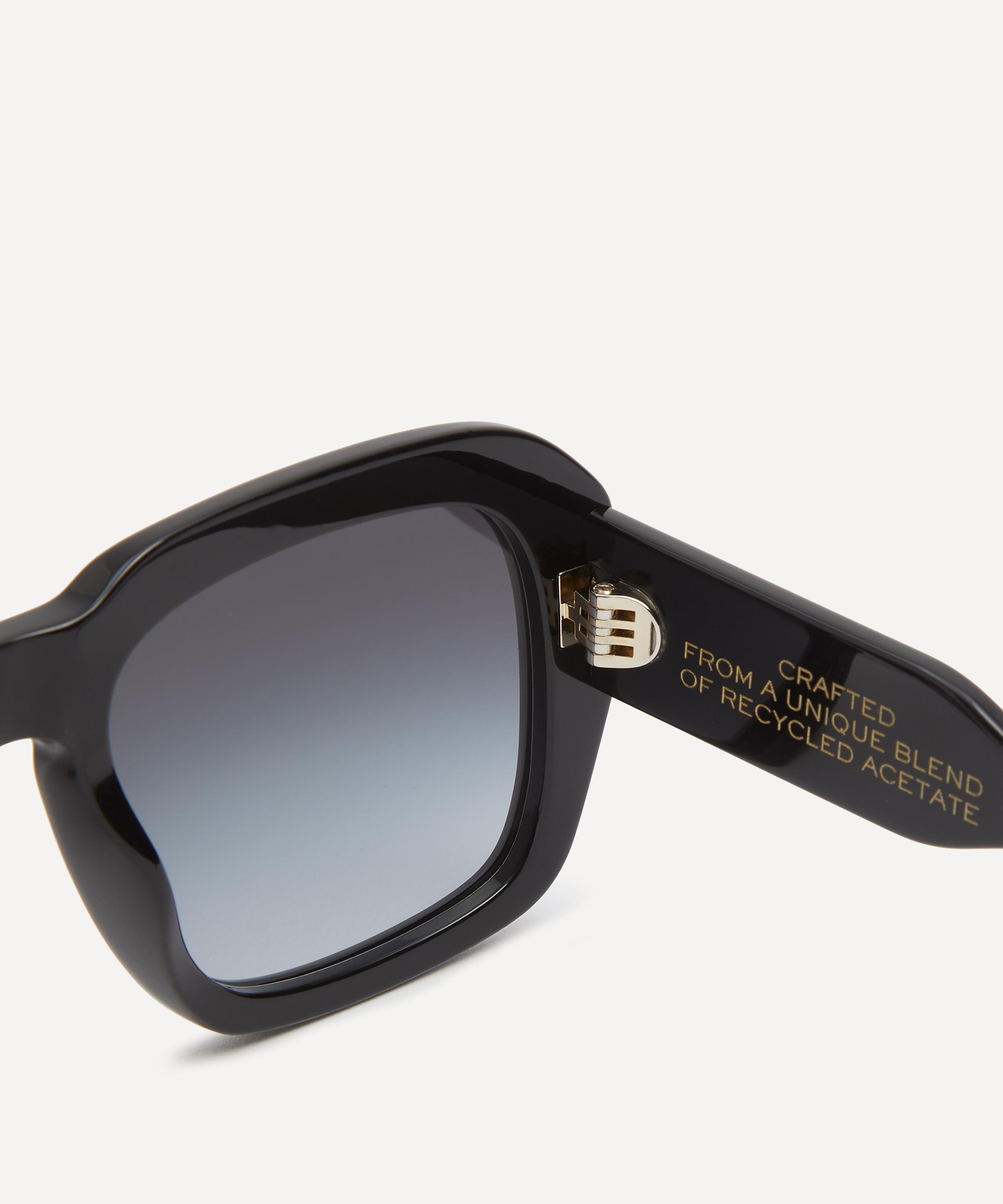 Crafted from glossy acetate in a timeless black colourway, these chunky square frames feature soft curved edges, and are finished with grey-tinted gradient lenses that further accentuate the style's glamorous, retro flair.