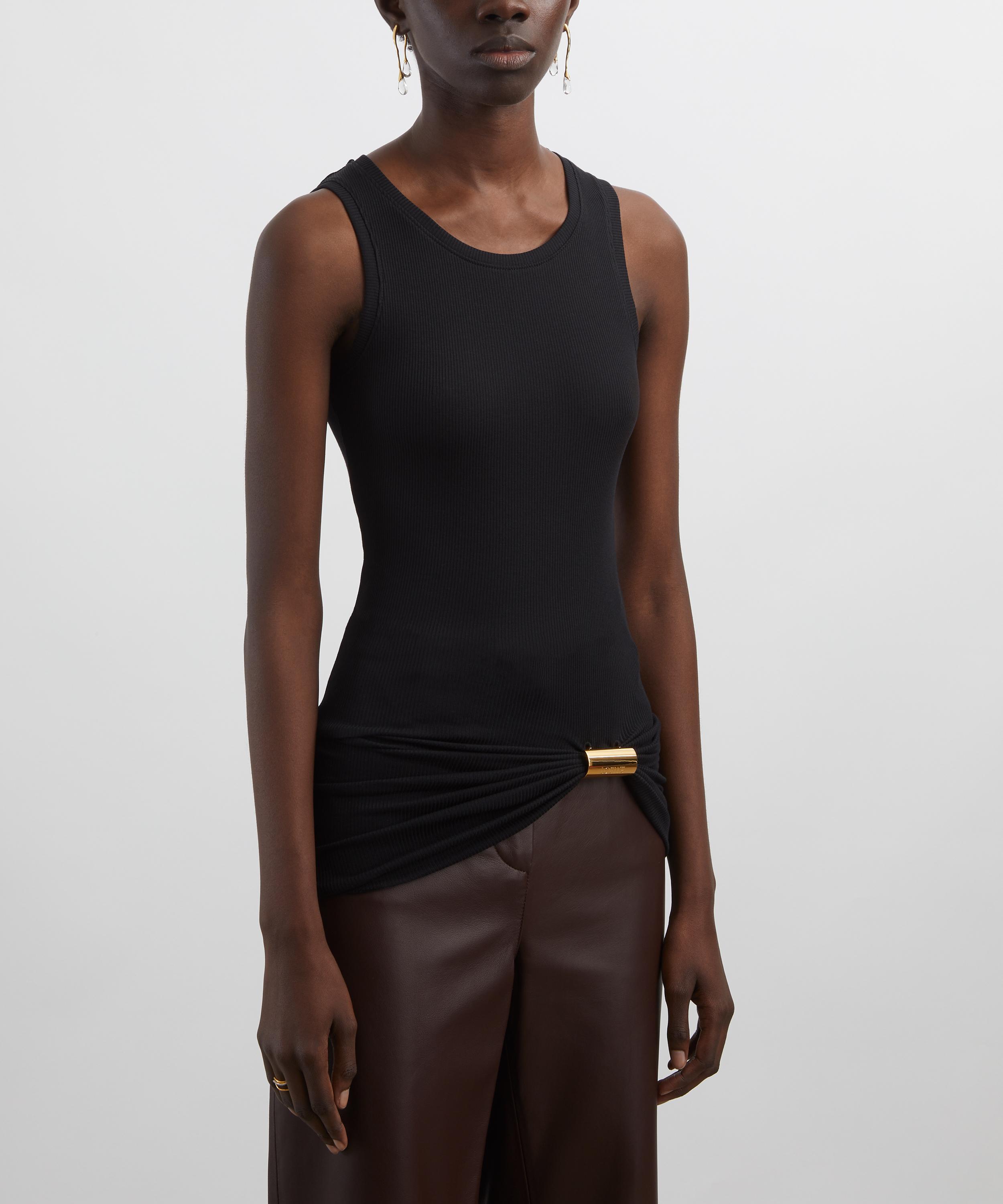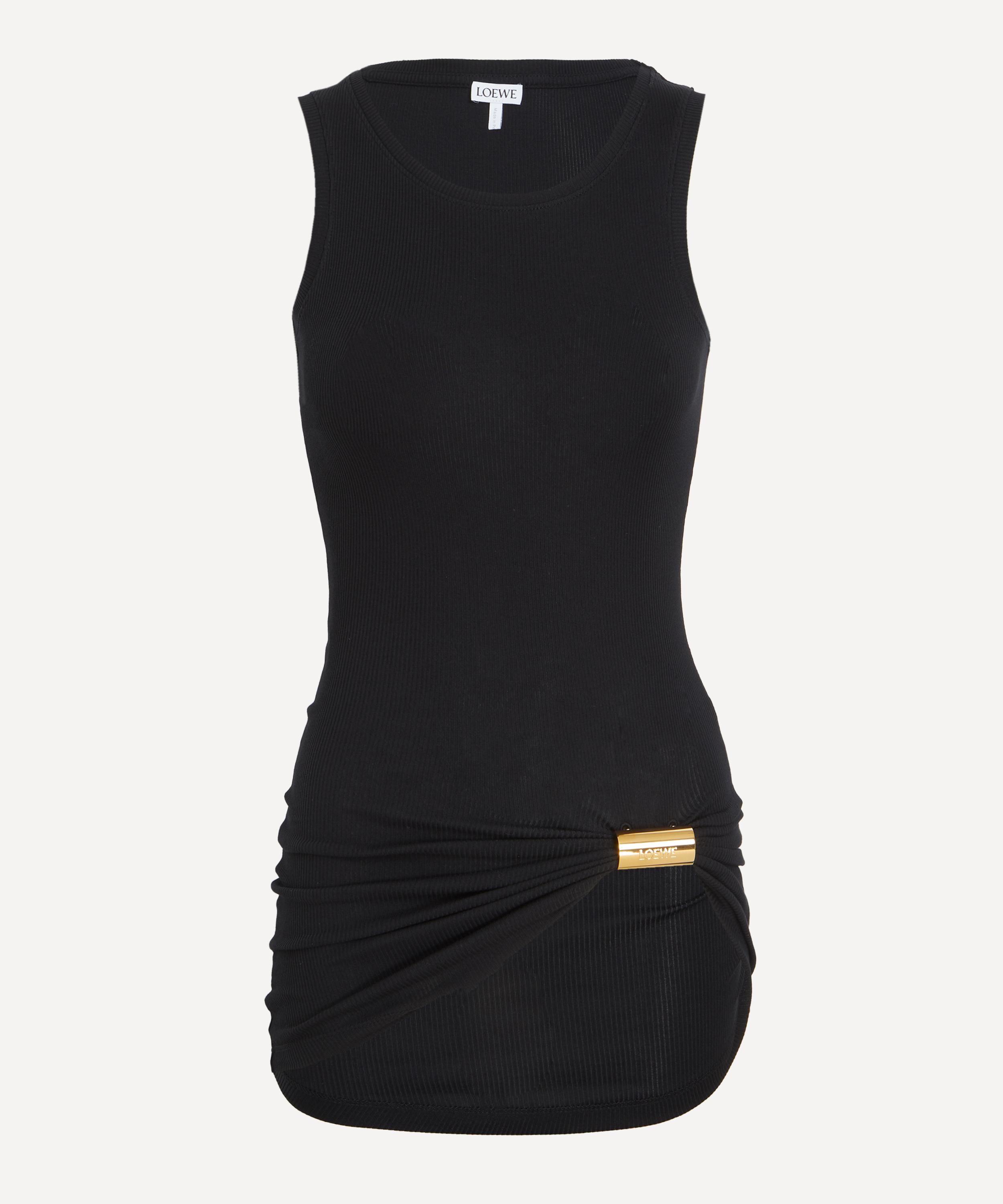 Crafted from lightweight stretch ribbed cotton, this tank top is designed for a close fit through the body and features gathered detailing at the hem. A detachable LOEWE-engraved metal embellishment adds a sculptural element - and a signature finish.