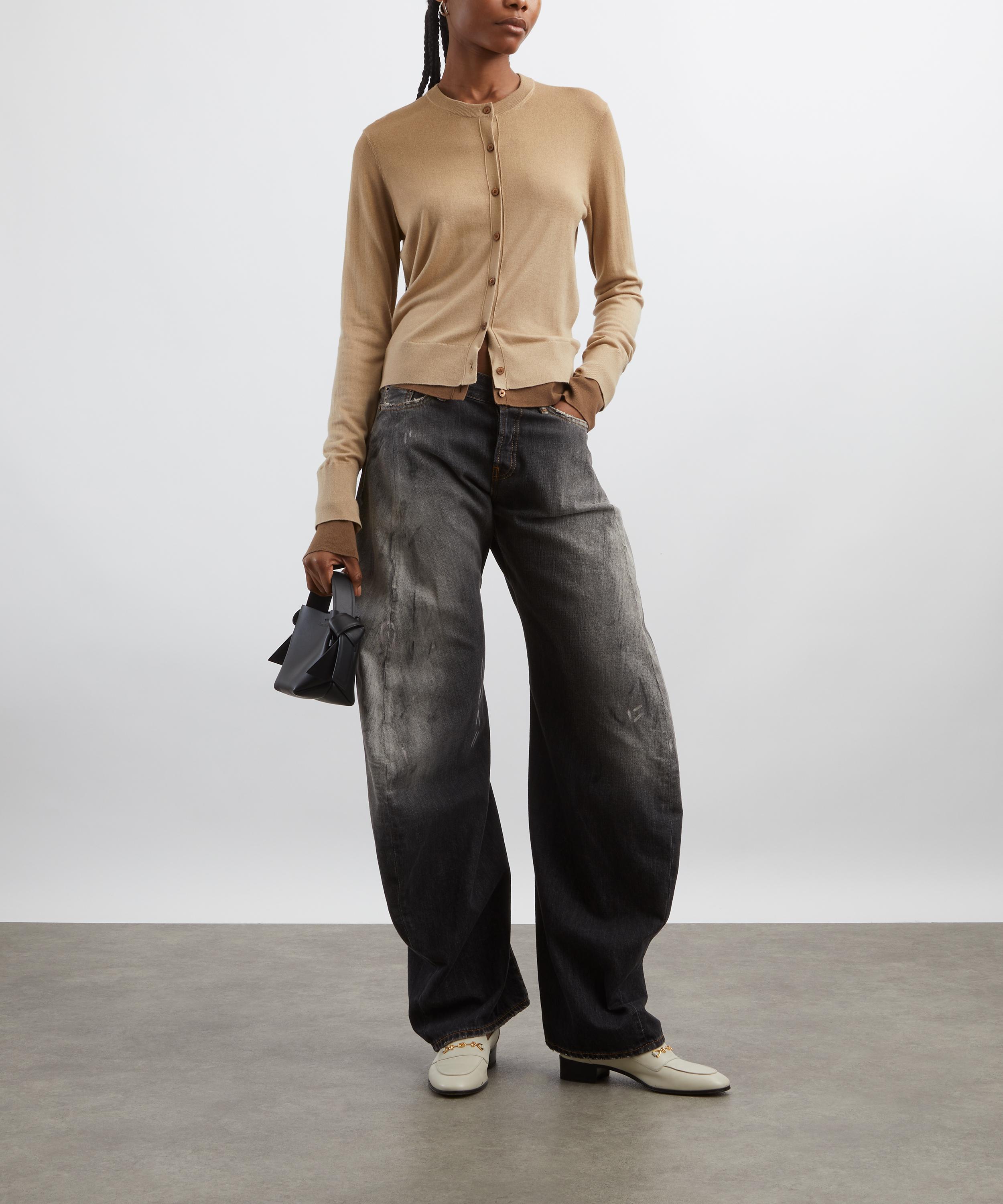 Crafted from rigid cotton denim in a black wash, these loose-fit jeans feature a low waist and ultra-long, wide-cut legs. Tinted and painted mark details throughout add a worn-in, lived-in touch.
