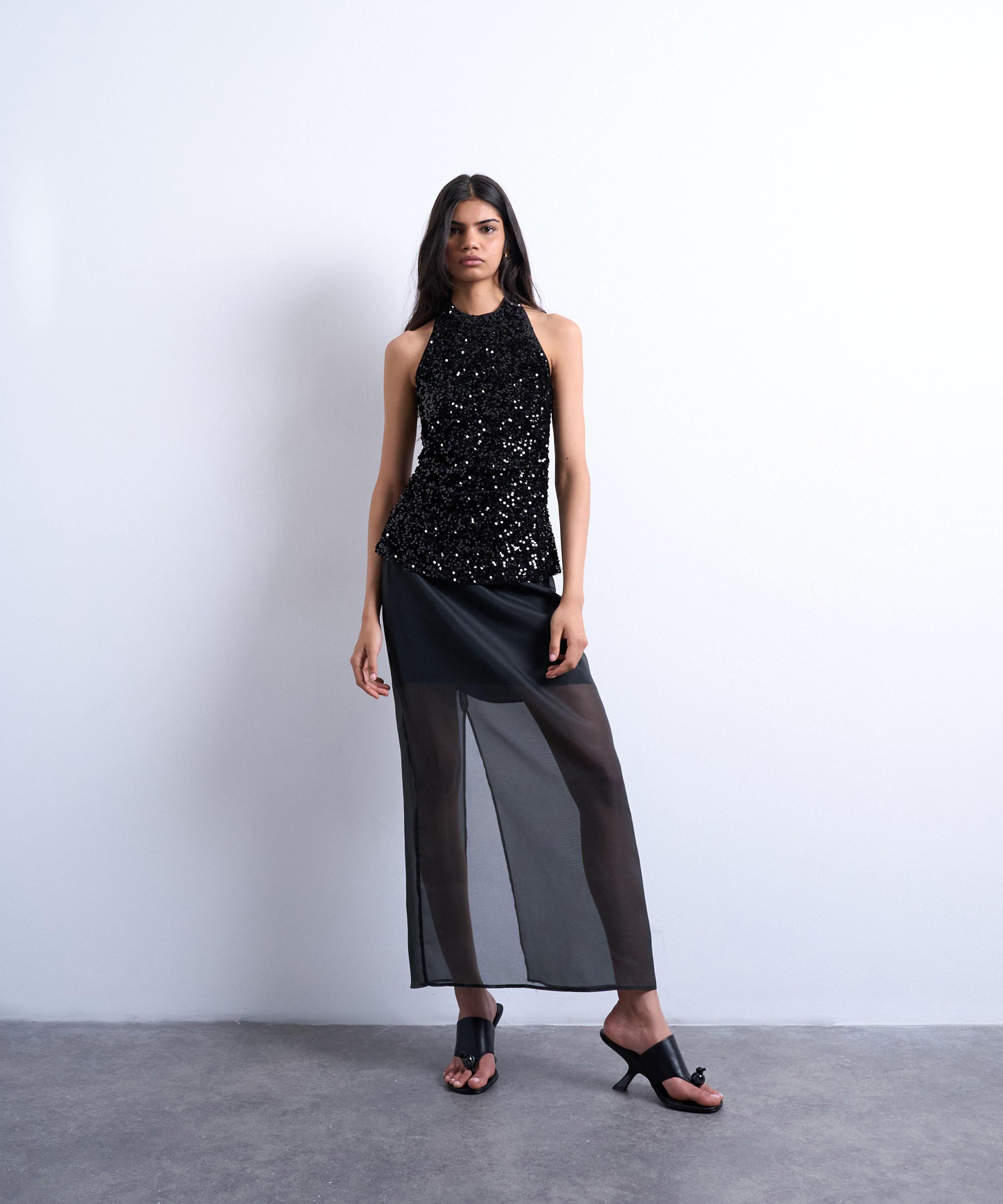 Part of the British label's highly anticipated relaunch at Liberty, the Velvet Sequin Halter Top from TOPSHOP is set to bring a burst of sparkle to your look.