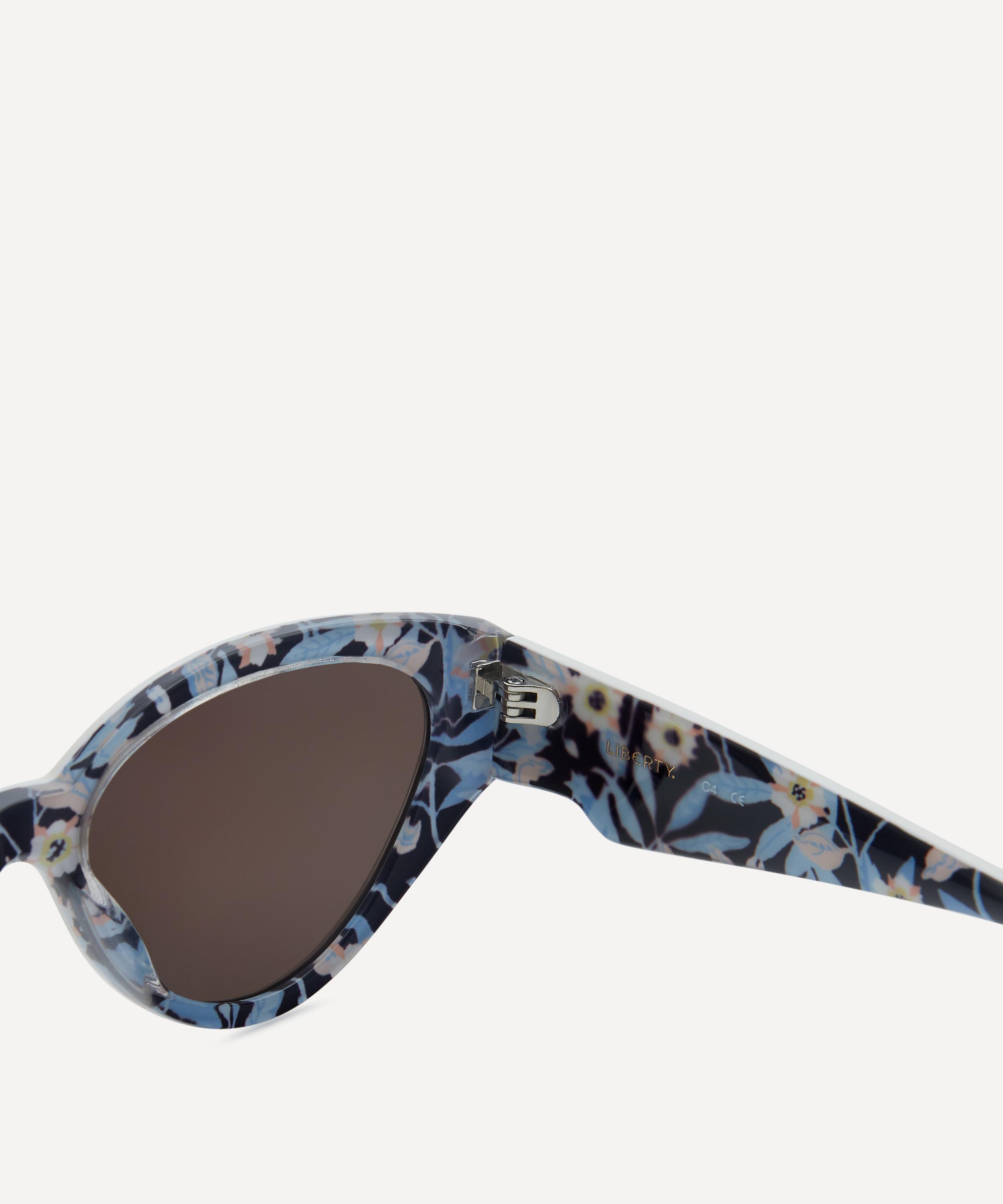 Transforming iconic shades with a touch of Liberty print, these sleek sunglasses are crafted to a cat-eye silhouette from durable acetate, accentuated by brown-tinted lenses. Complete with subtle branding to the left temple, the coveted design stands out with a vibrant floral print on the inside arms, perfect for adding a stylish finish to any outfit.