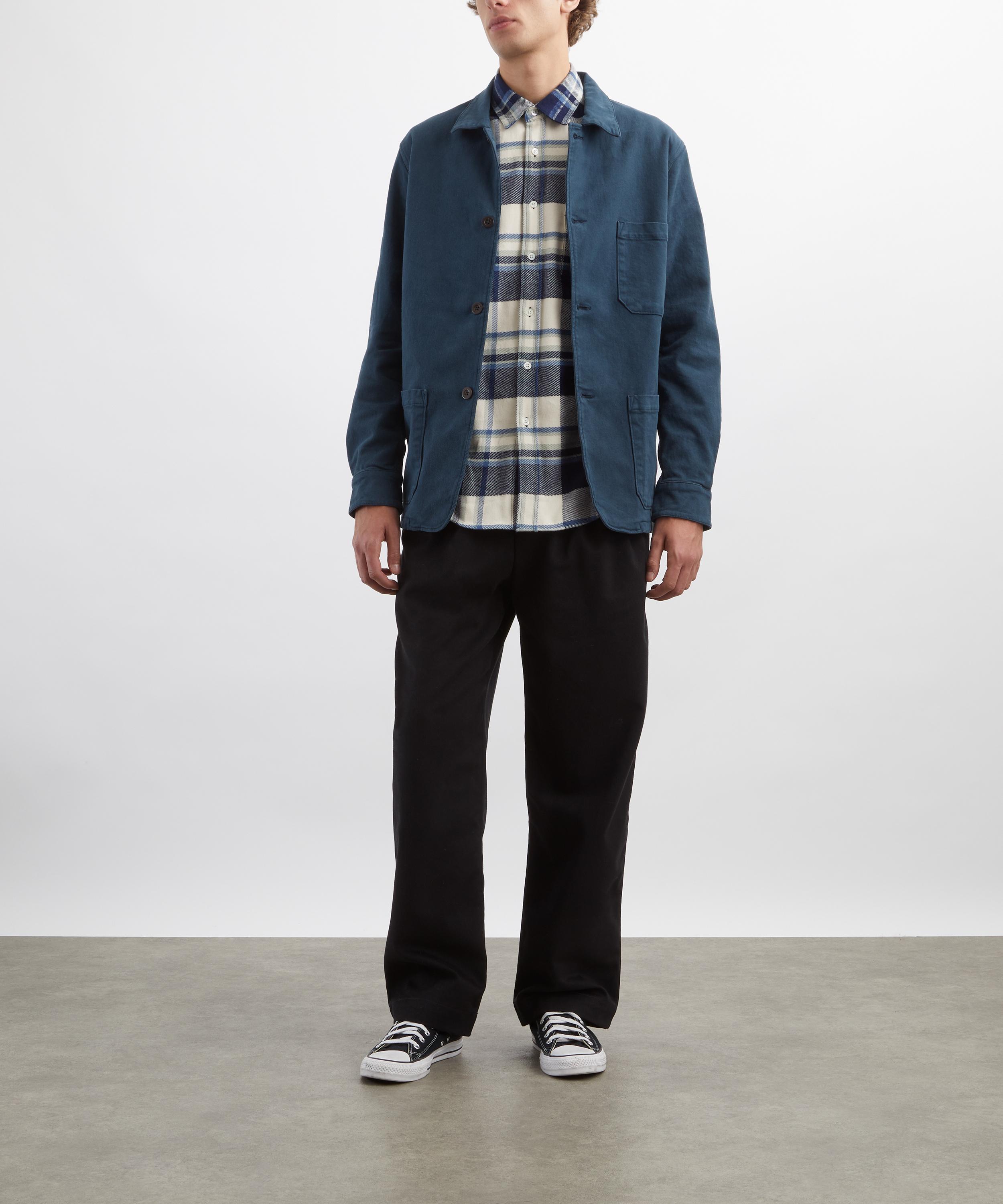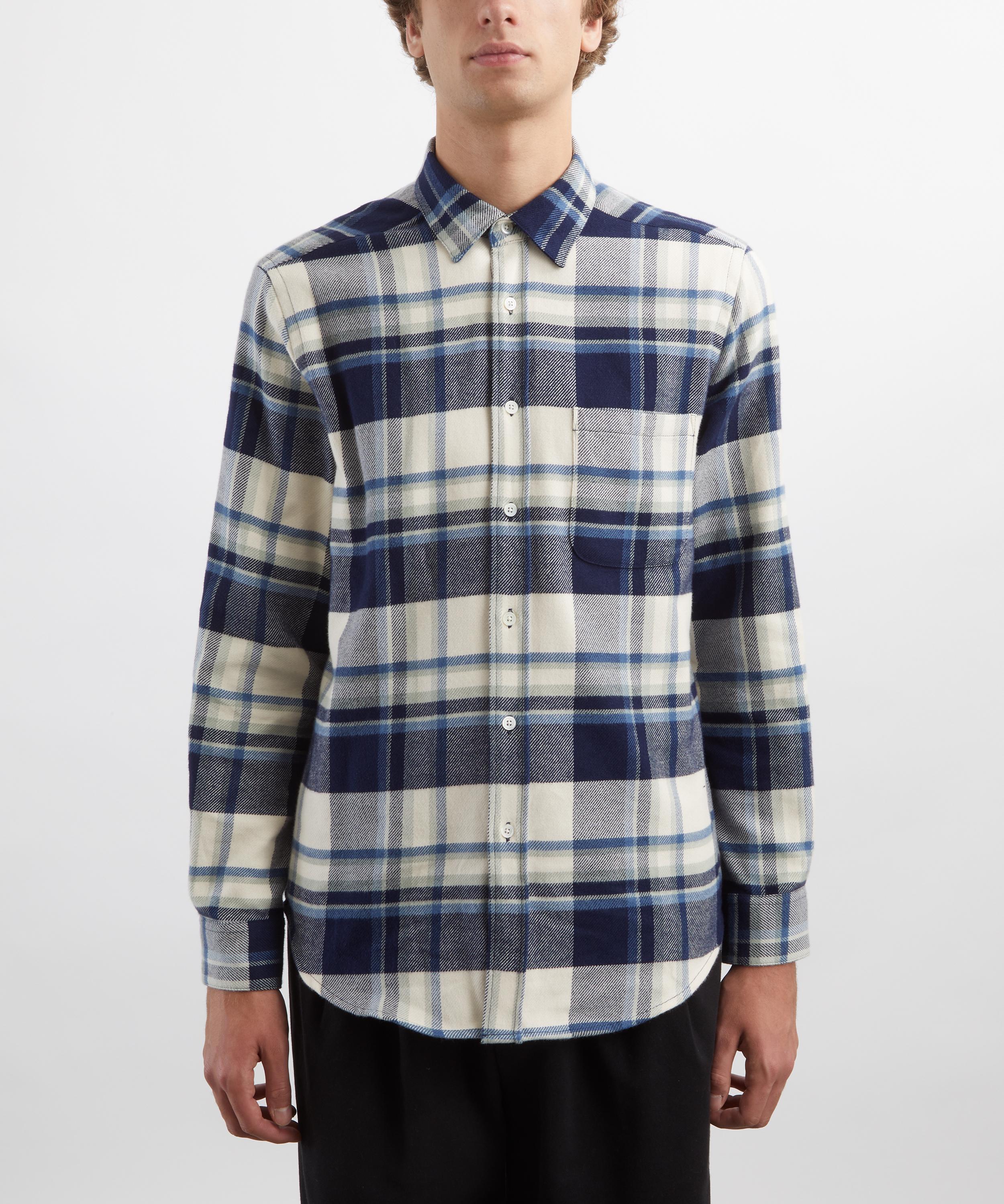 Crafted from soft cotton adorned with a blue madras check, this shirt features a classic collar, mother-of-pearl button fastening, and a single chest pocket - offering timeless utilitarian style with a modern edge.