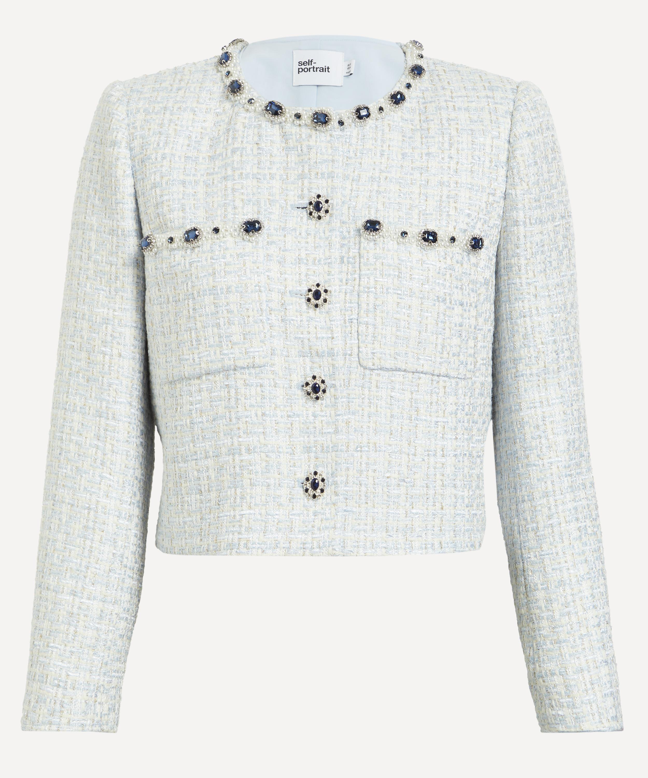 Classically feminine, the Blue Bouclé Jacket from Self-Portrait defines effortless elegance.