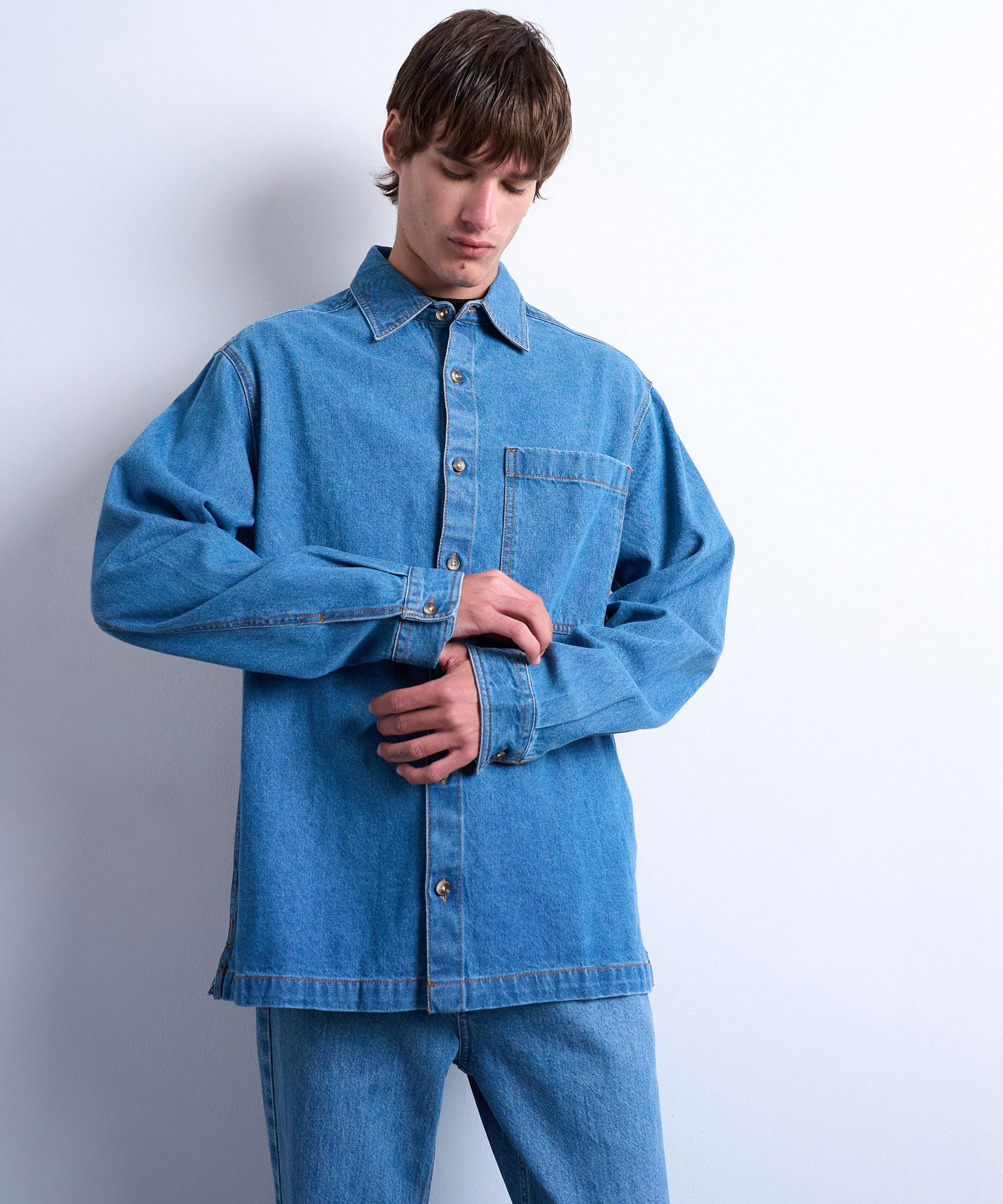 Crafted from a non-stretch denim in a mid-blue wash, this shirt is designed for a relaxed fit with long sleeves, a spread collar, and chest patch pocket - offering a timeless, everyday layer.