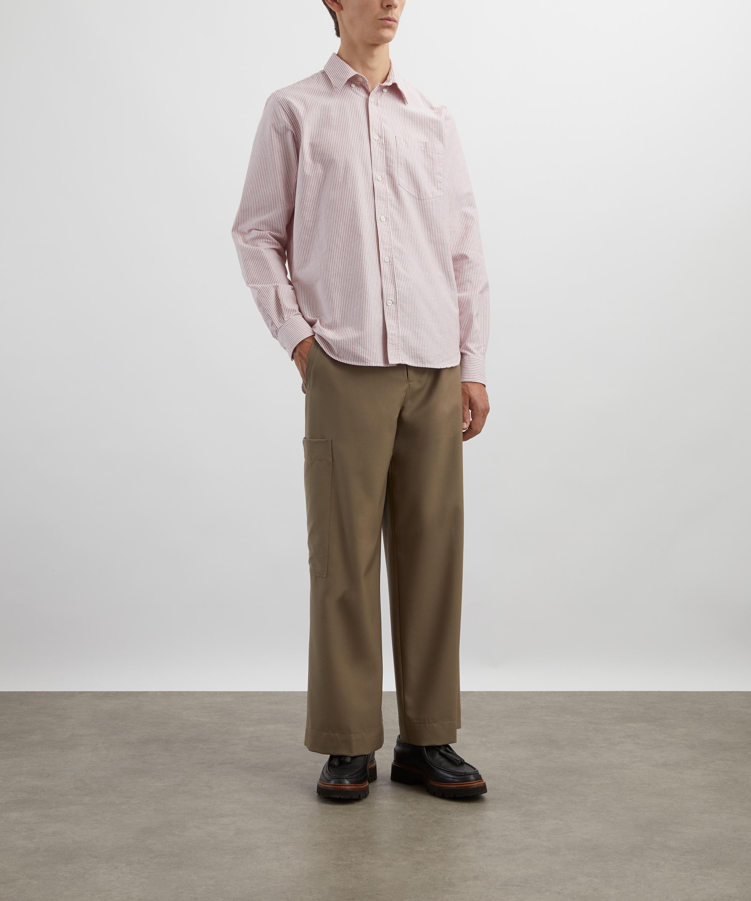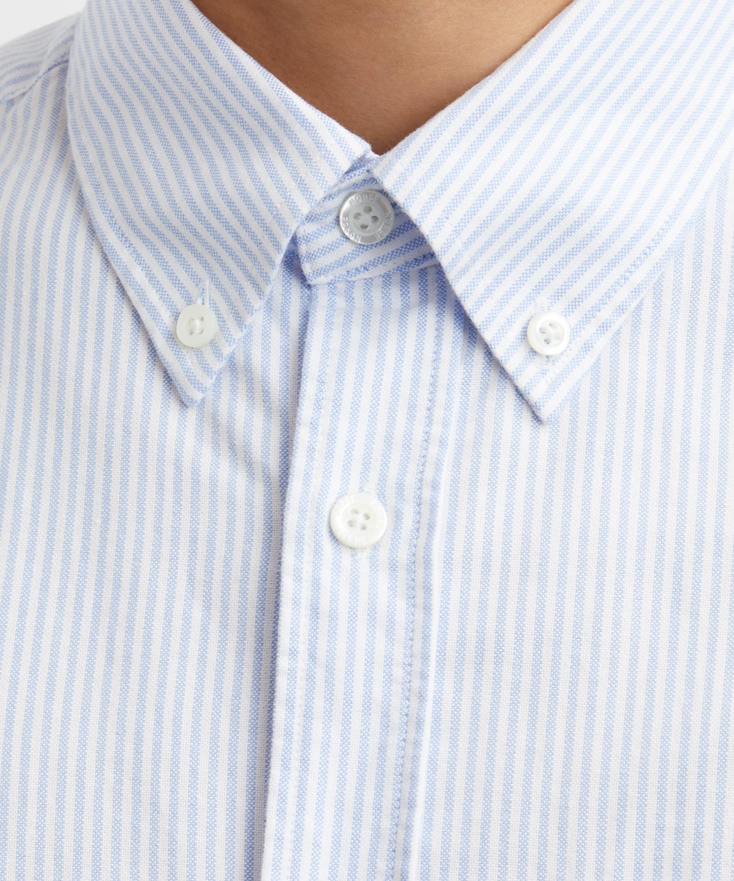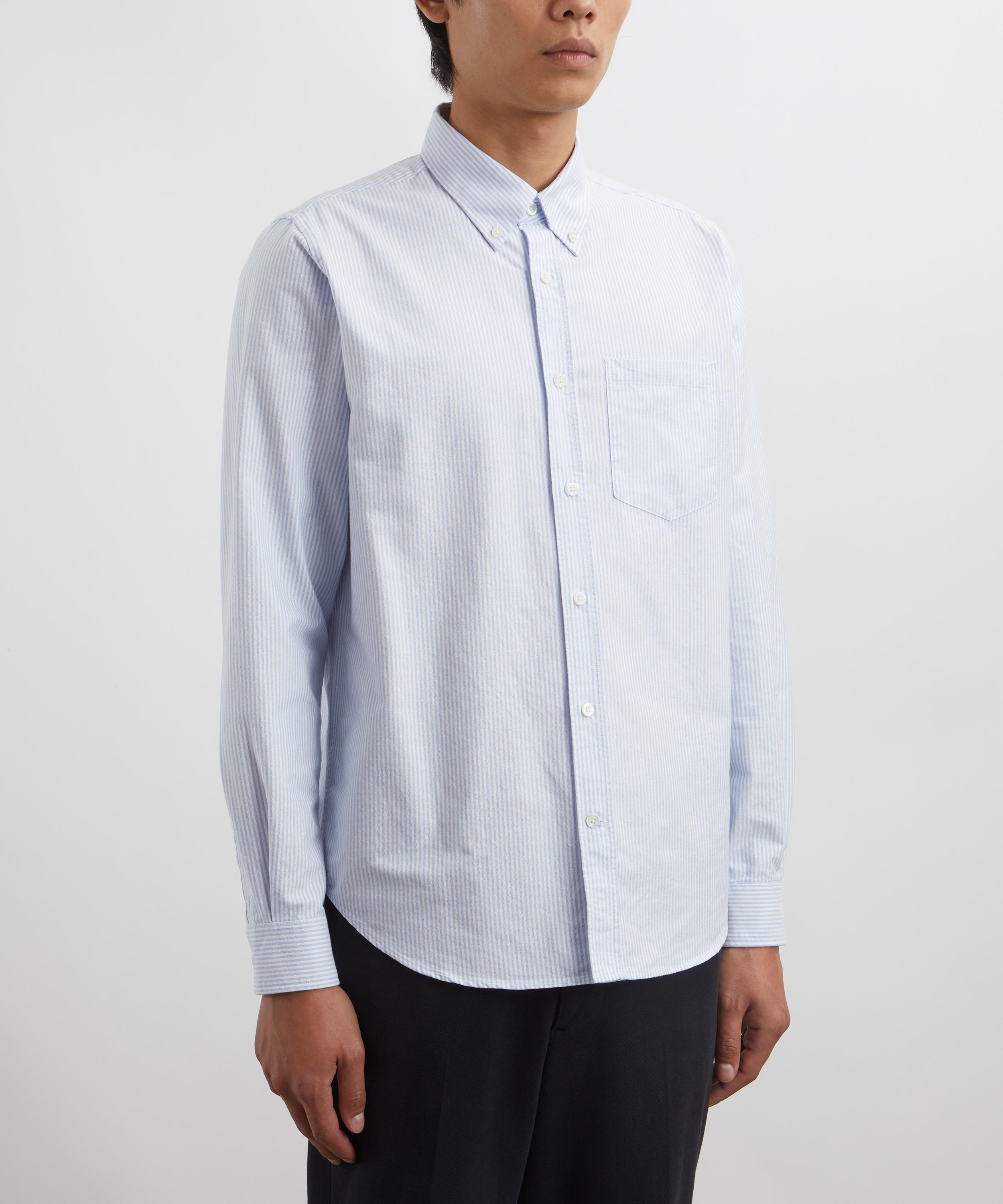 Crafted from oxford cotton cloth with pale blue stripes, the Standard Oxford BD shirt takes inspiration from 1950s Ivy League style. Cut to a regular fit with long sleeves, it features a classic button-down collar, chest pocket, and is finished with mother-of-pearl buttons for a refined touch.