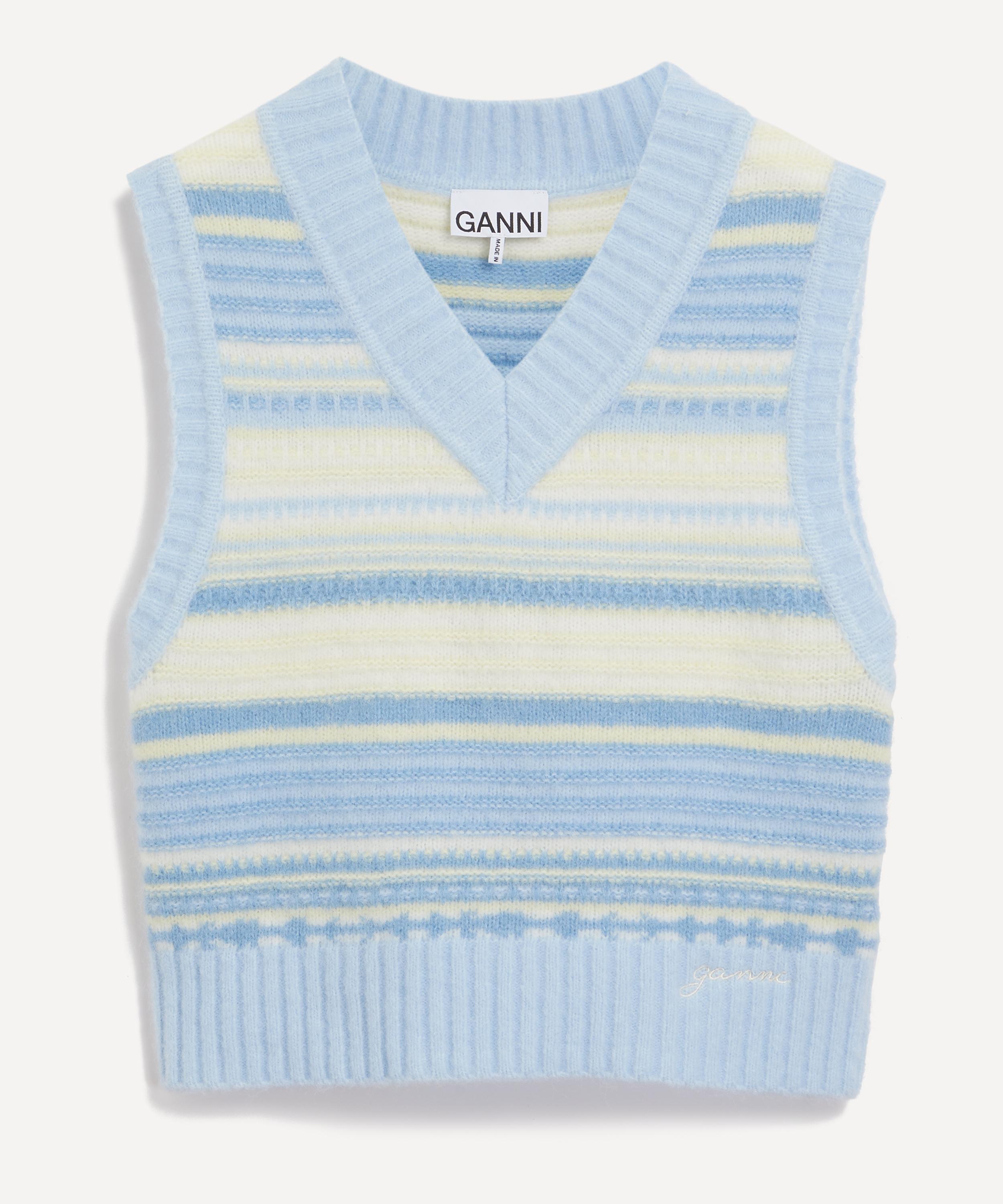 Staying true to the brand's coveted cool-girl image, the Blue Striped Soft Wool Vest from millennial-favourite brand GANNI is a laid-back addition to your new season edit.