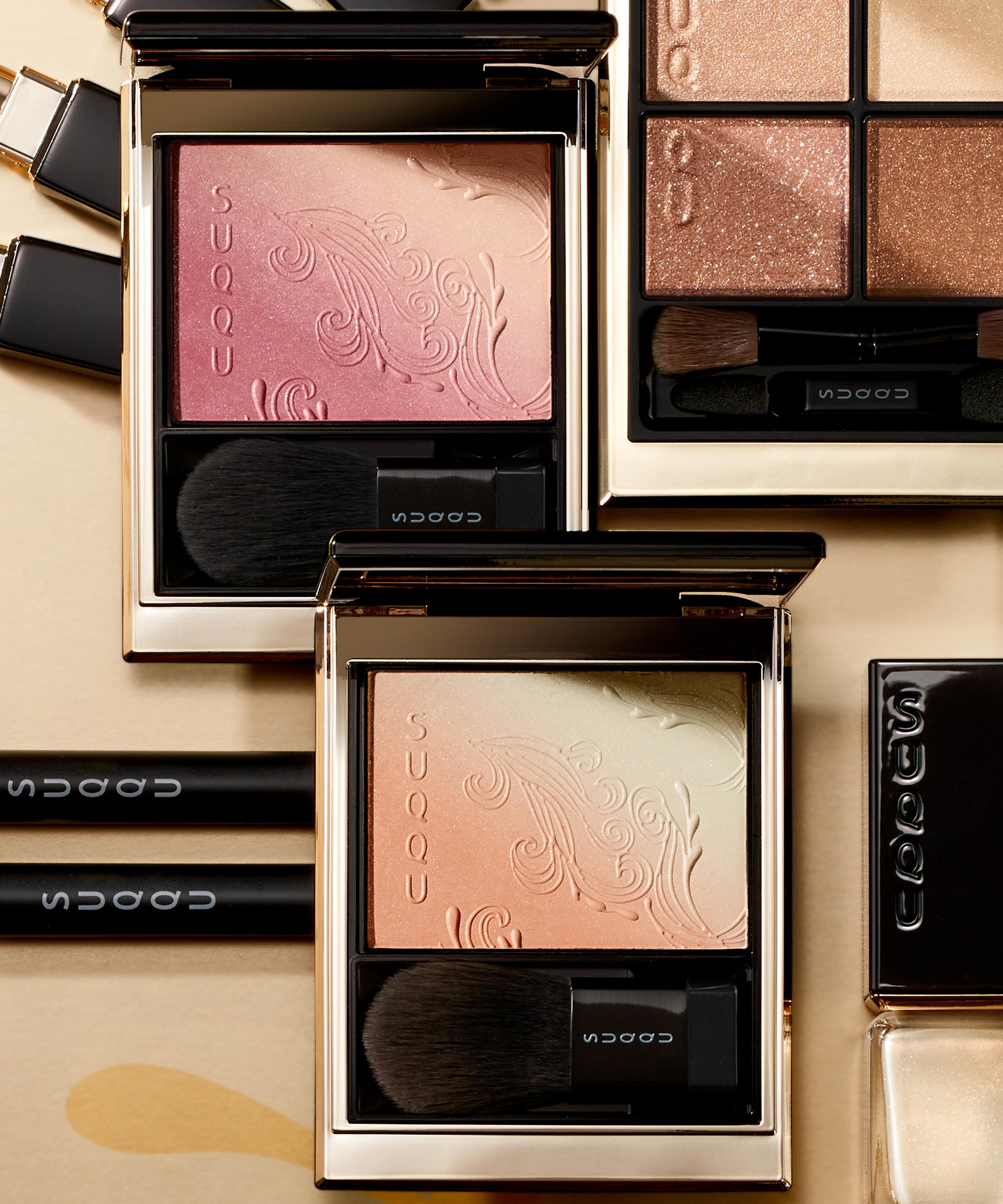 Create a naturally flushed, blended look with Suqqu's Blurring Colour Blush, a unique graduating cheek colour and highlighter duo that evokes the delicate tones of traditional floral folding screen paintings.