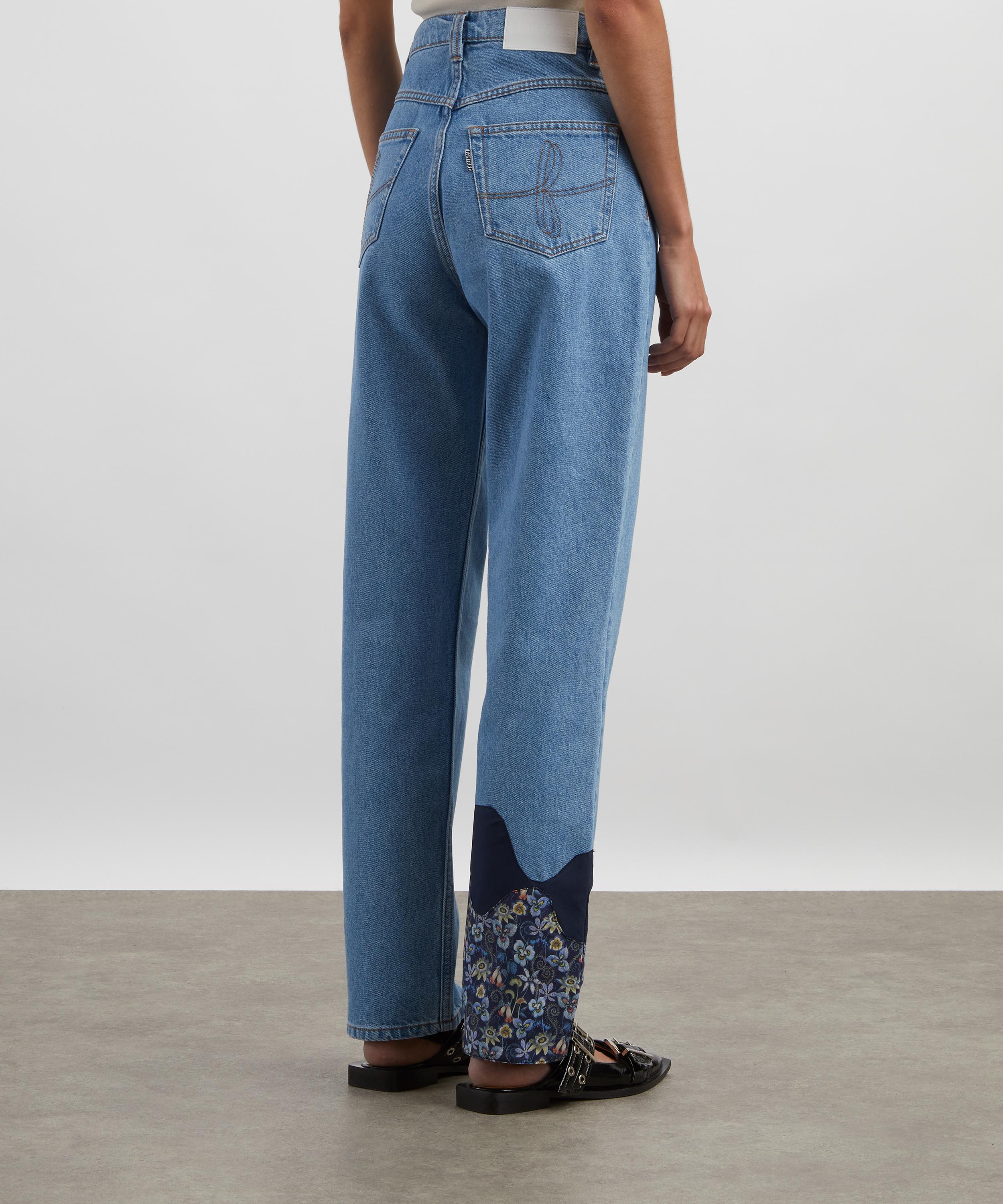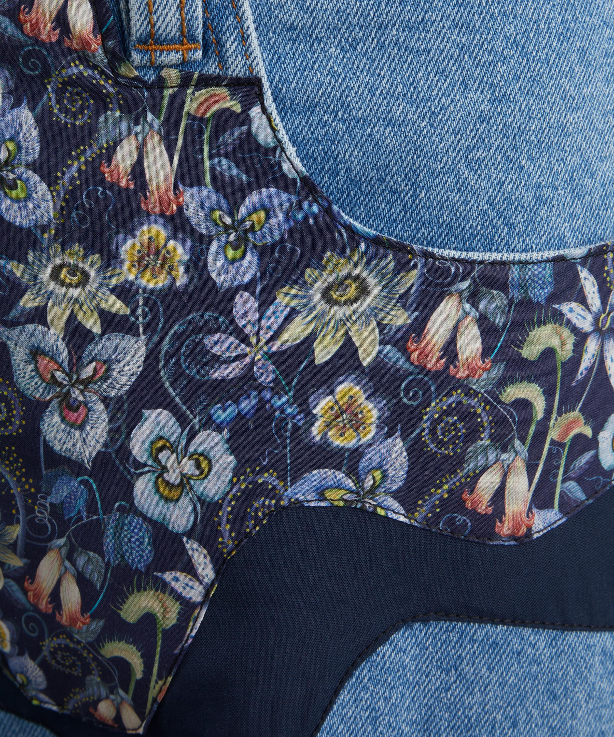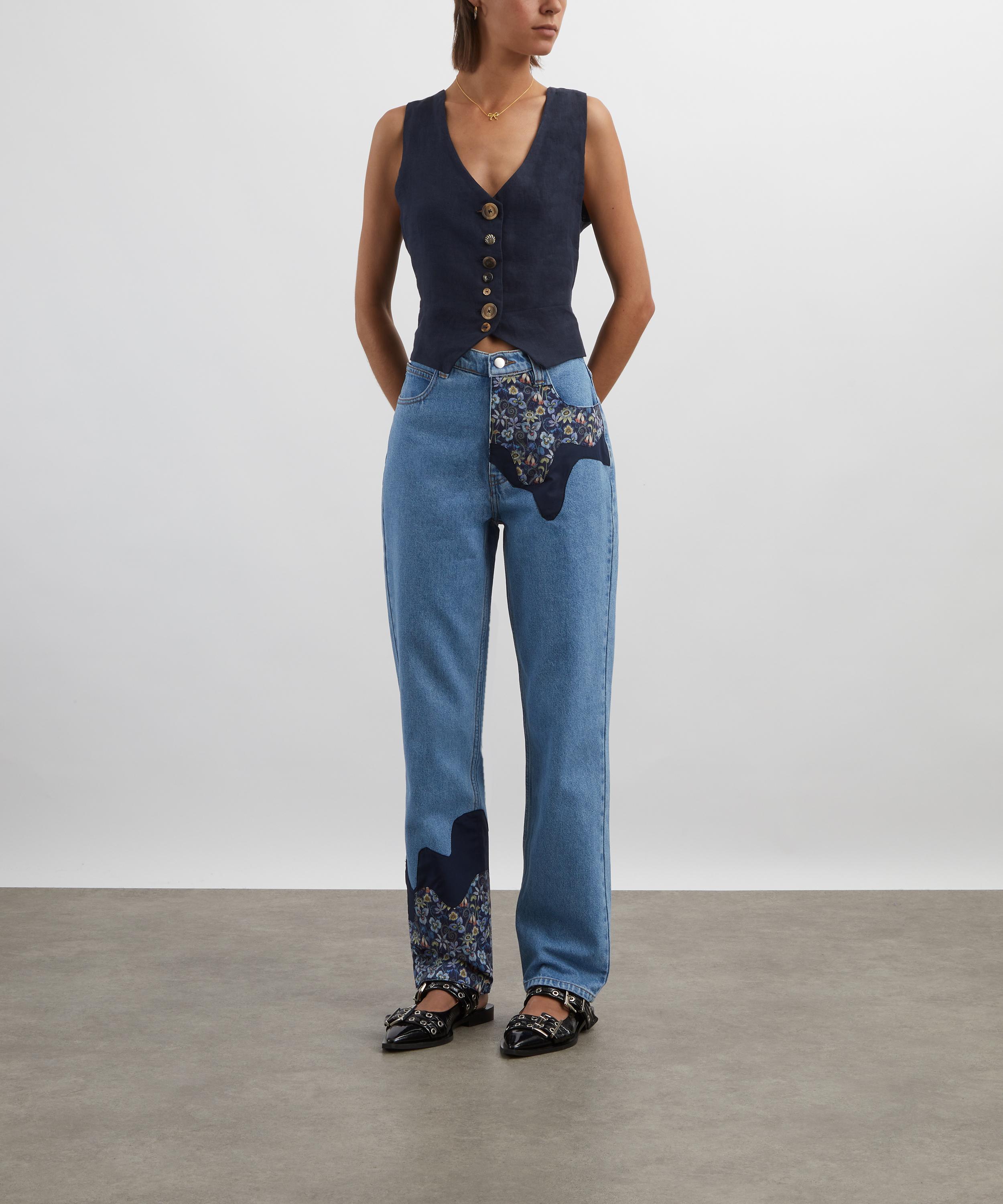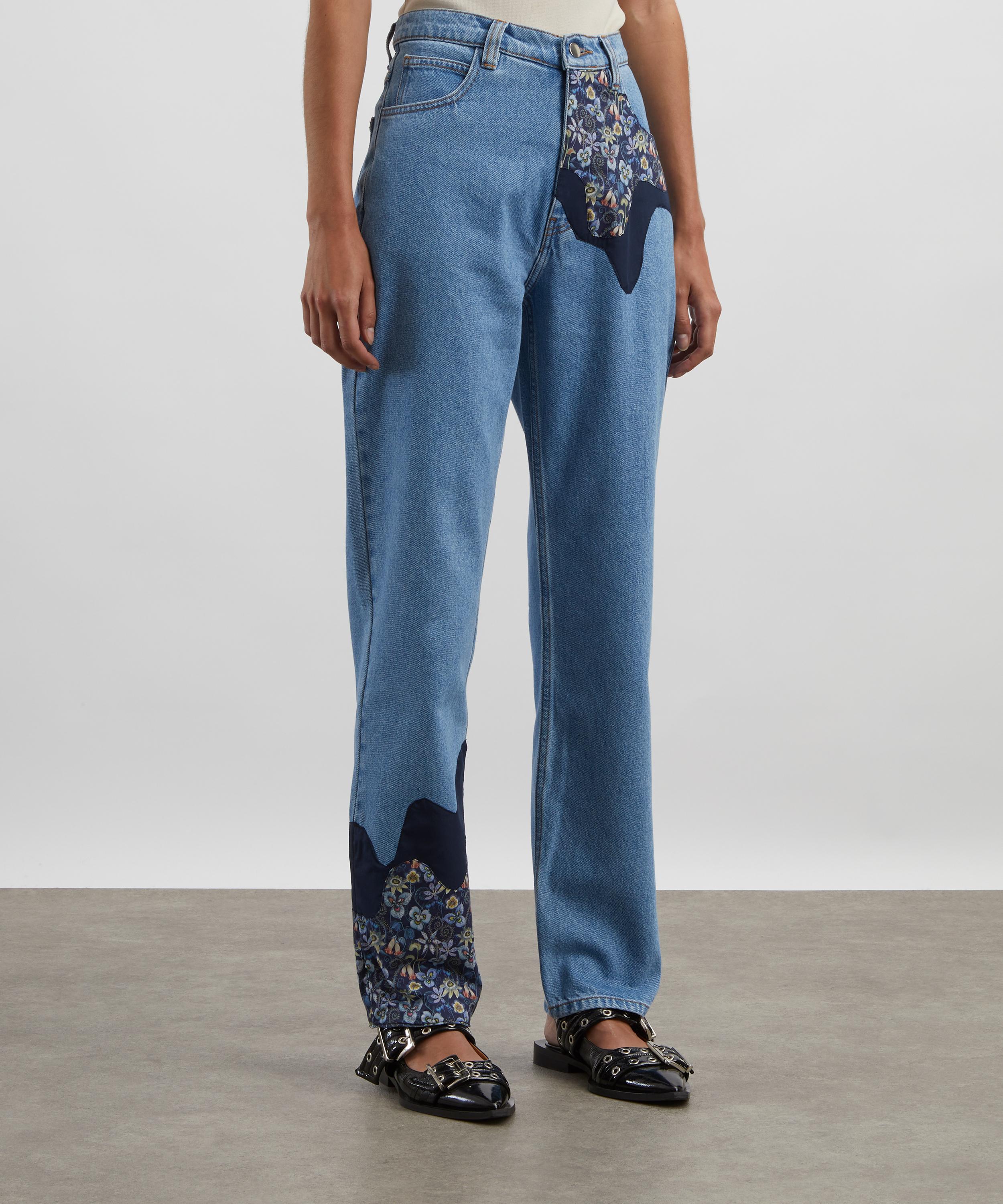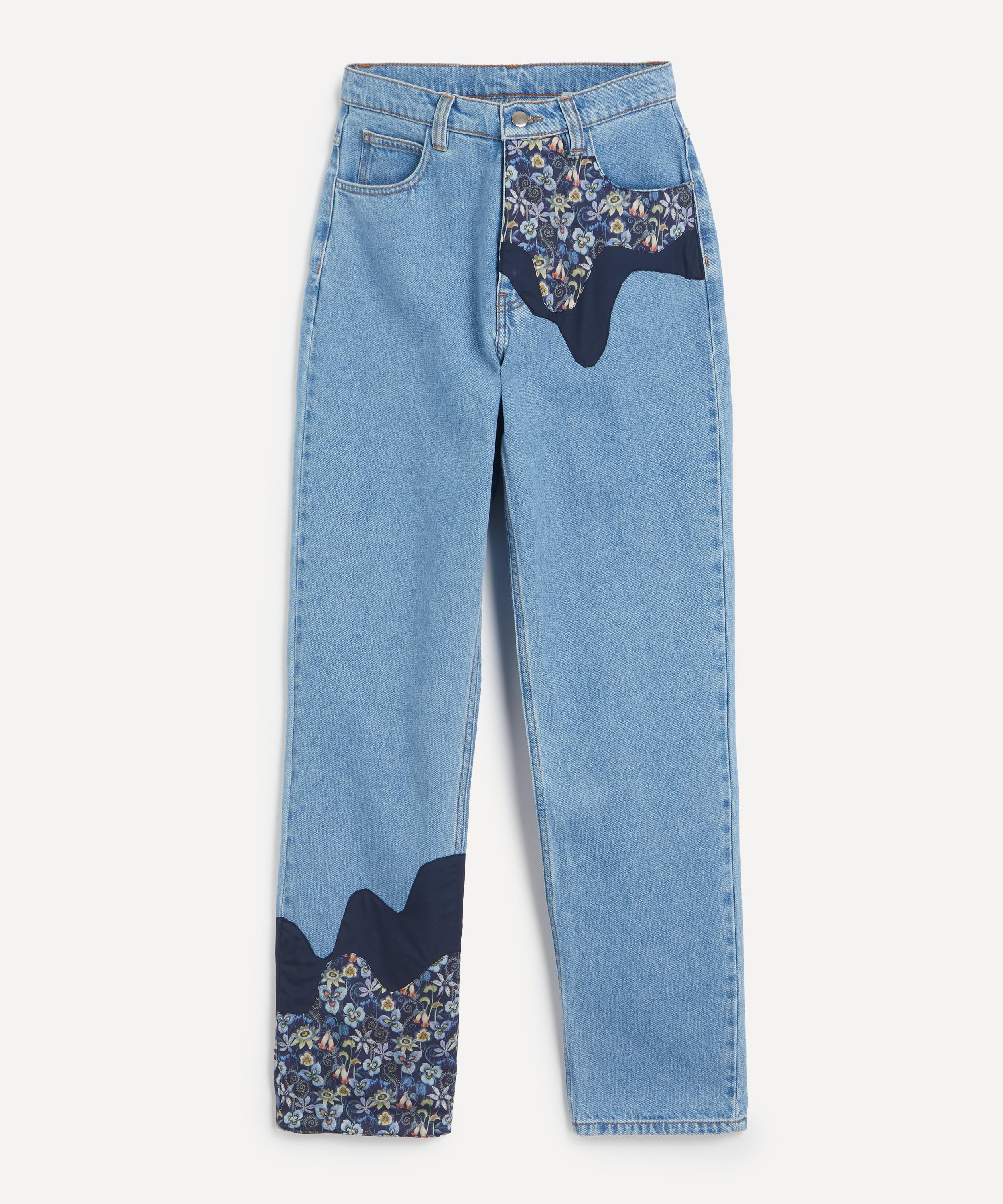 Easy and effortless, these vintage-inspired jeans feature a flattering high rise and relaxed wide-leg. Appliqué patches in deadstock Liberty fabric add a unique, elevated twist to your everyday denim.