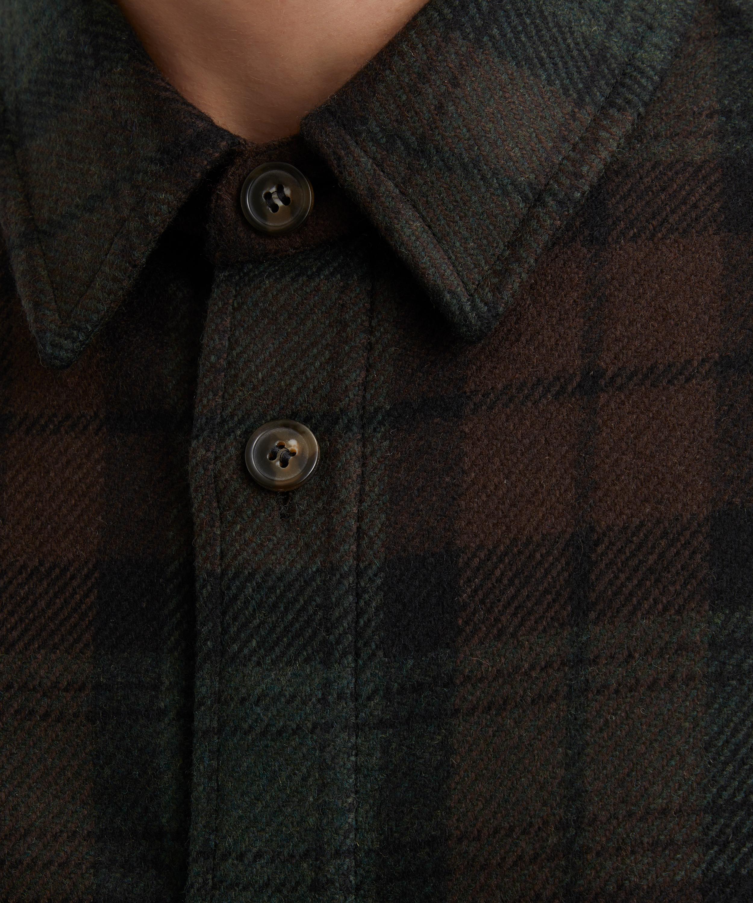 Cut from an Italian wool-blend for a straight fit, this overshirt features an all-over check pattern and is complete with a classic collar, a front buttoned closure and buttoned cuffs – ideal for both casualwear and elevated looks.