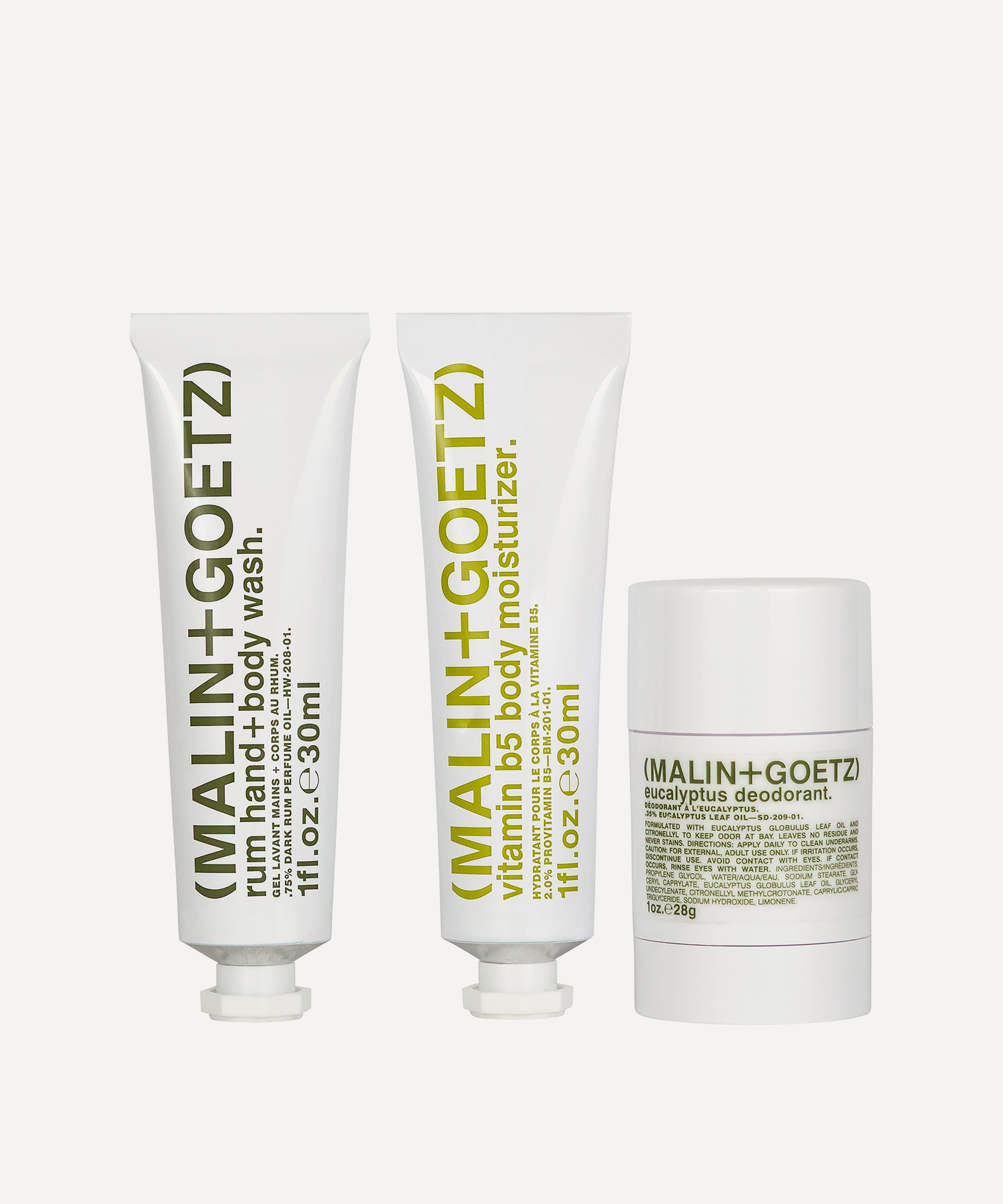 • Includes: Rum Hand+Body Wash 30ml, Vitamin B5 Body Moisturiser 30ml, and Eucalyptus Deodorant 28g
