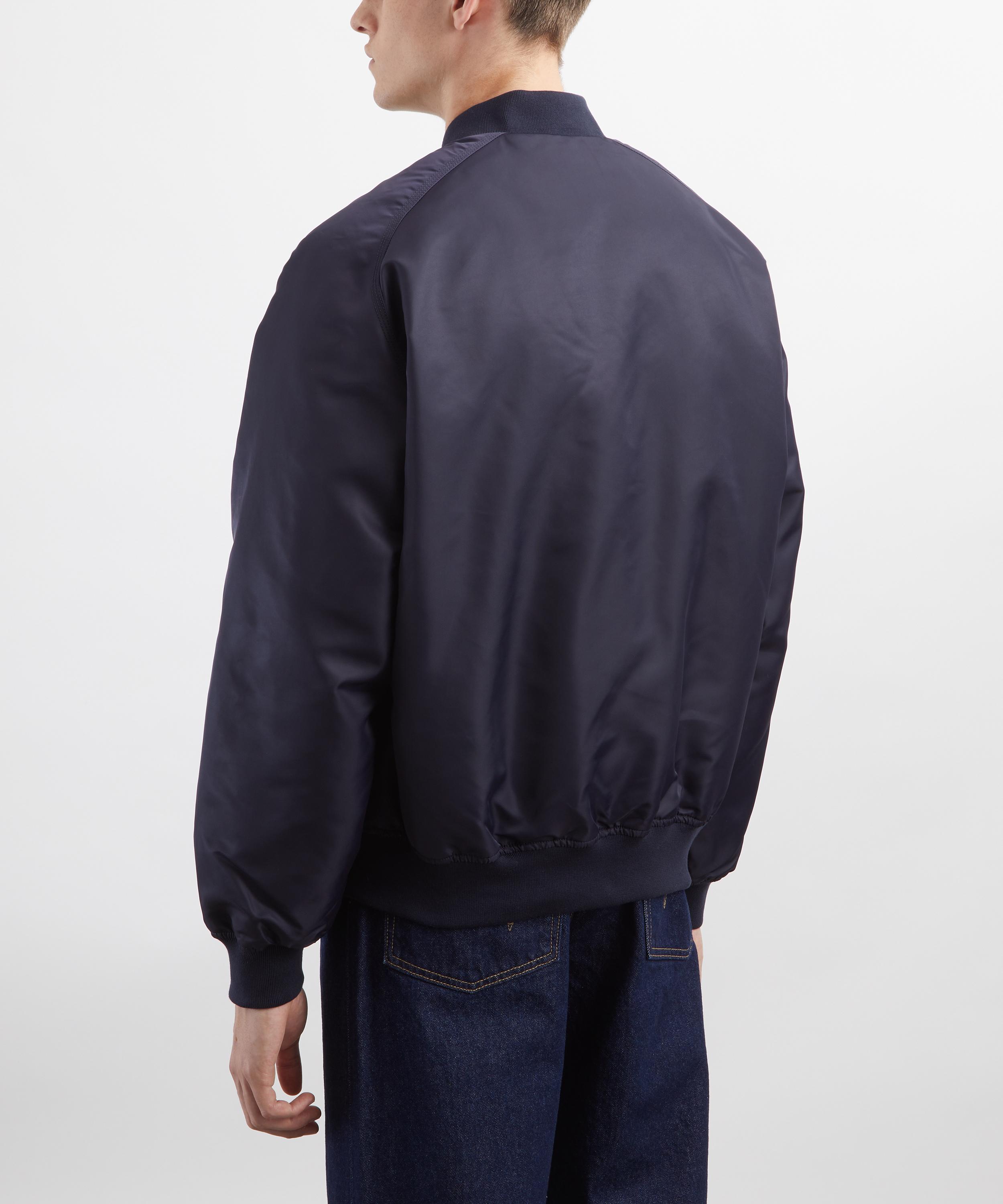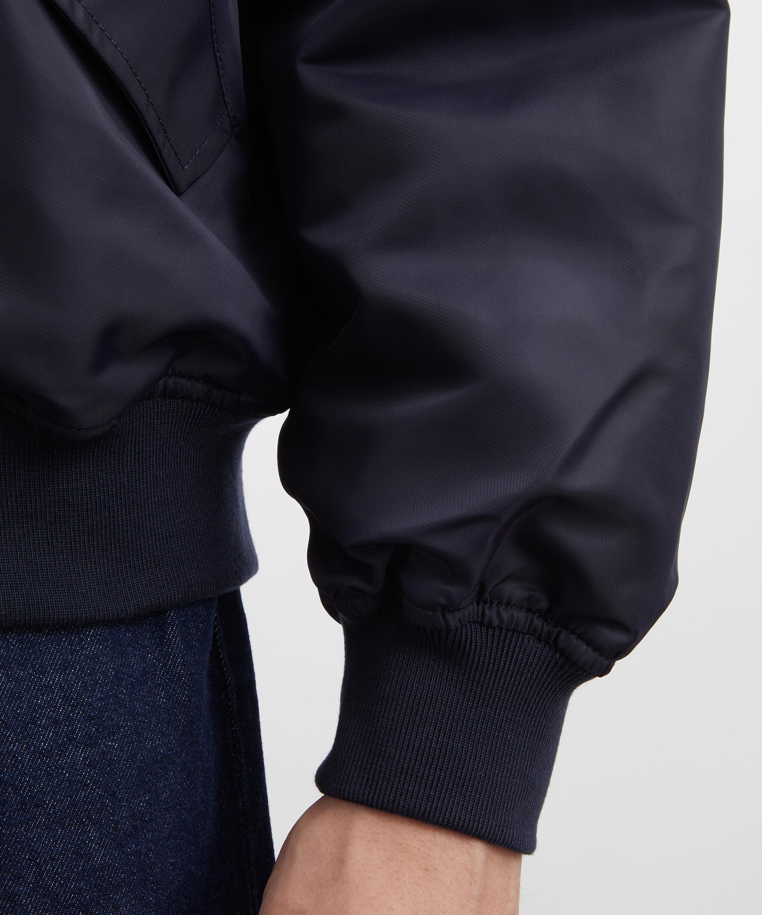 Crafted from a heavyweight premium nylon for a relaxed fit, this jacket features a press stud and zip front closure, a ribbed collar, and traditional flight jacket pockets, and is complete with contrast wadded lining and interior pockets – with a water-resistant finish, it is a versatile piece suitable for colder evenings and smart casual events.