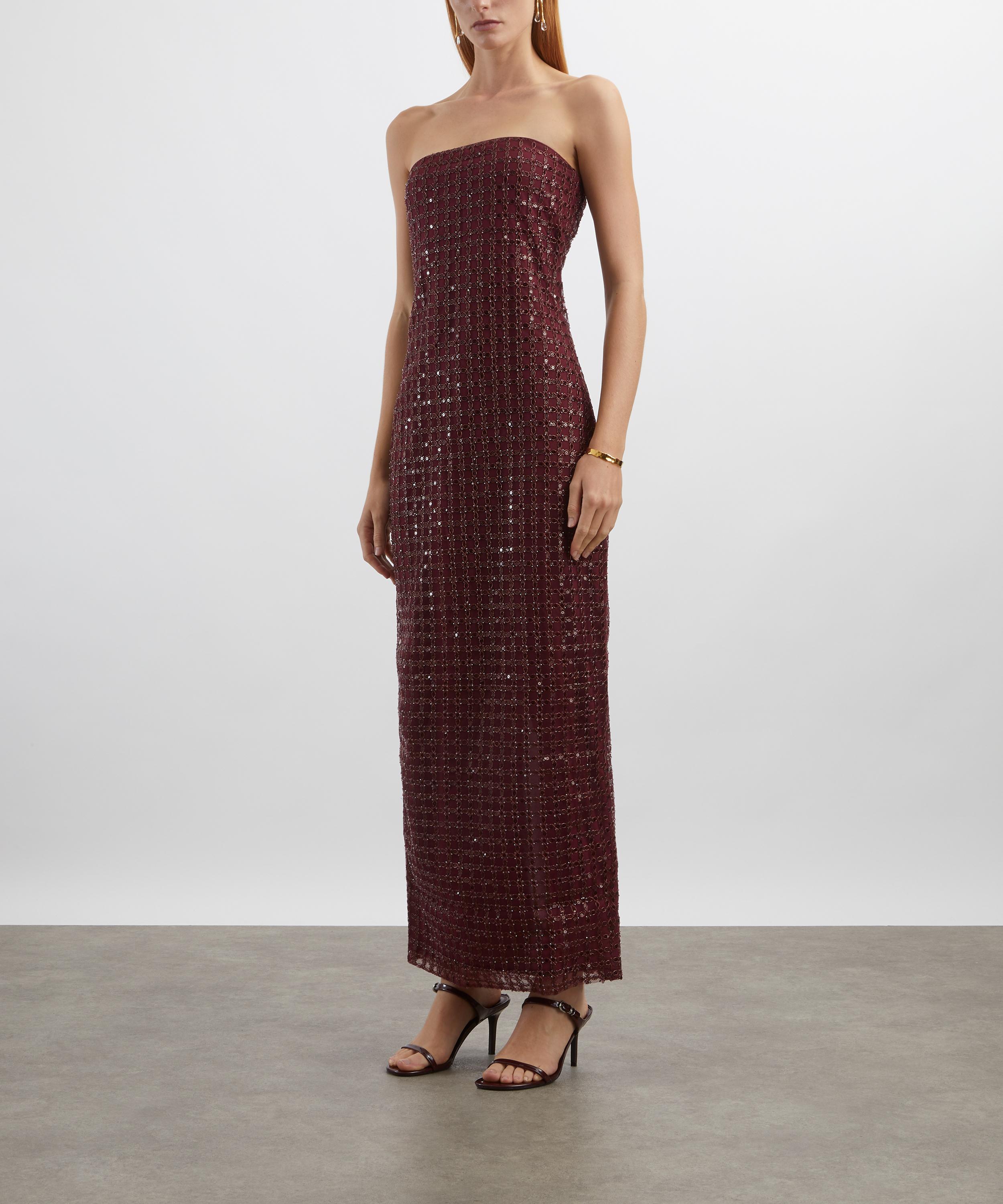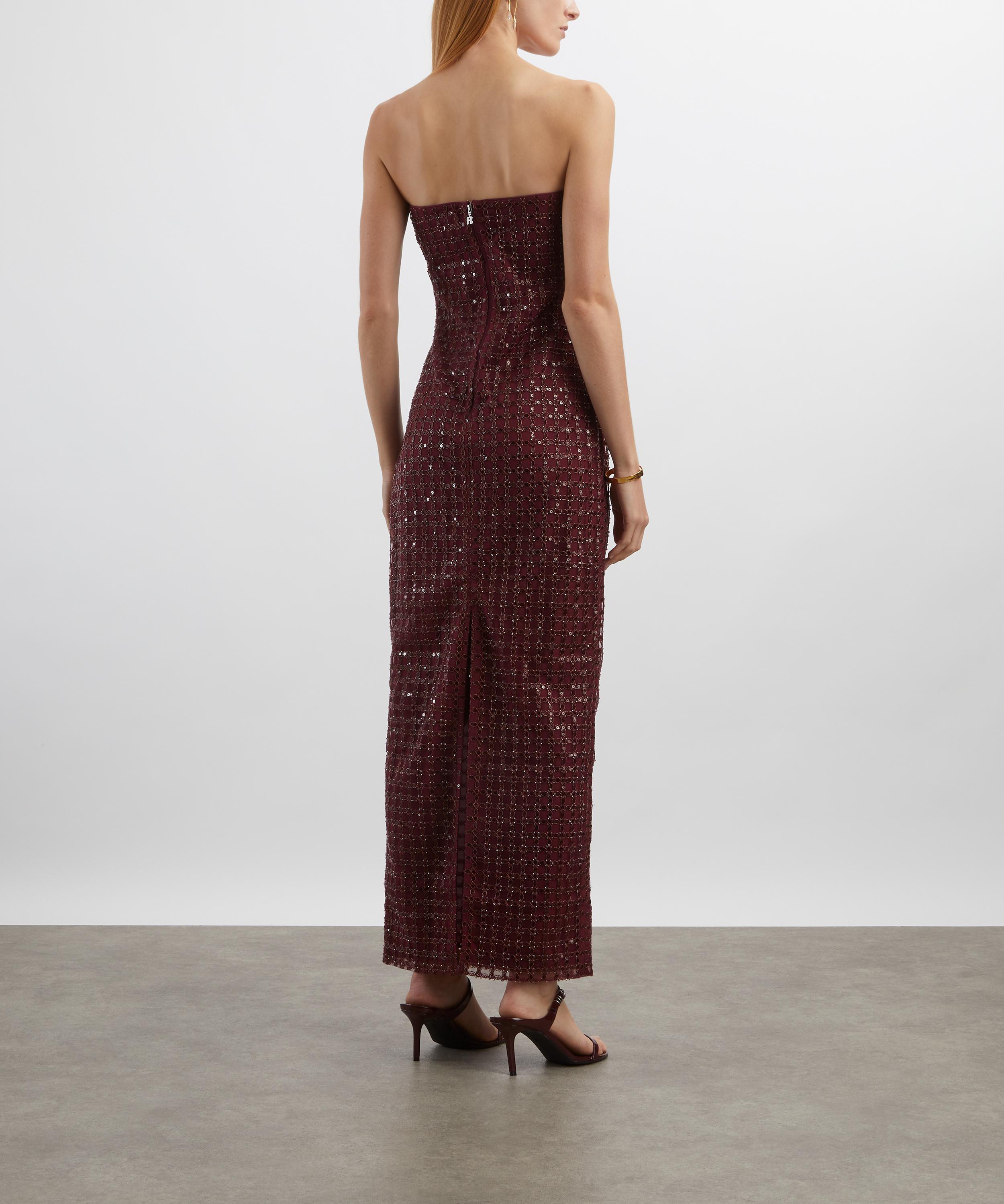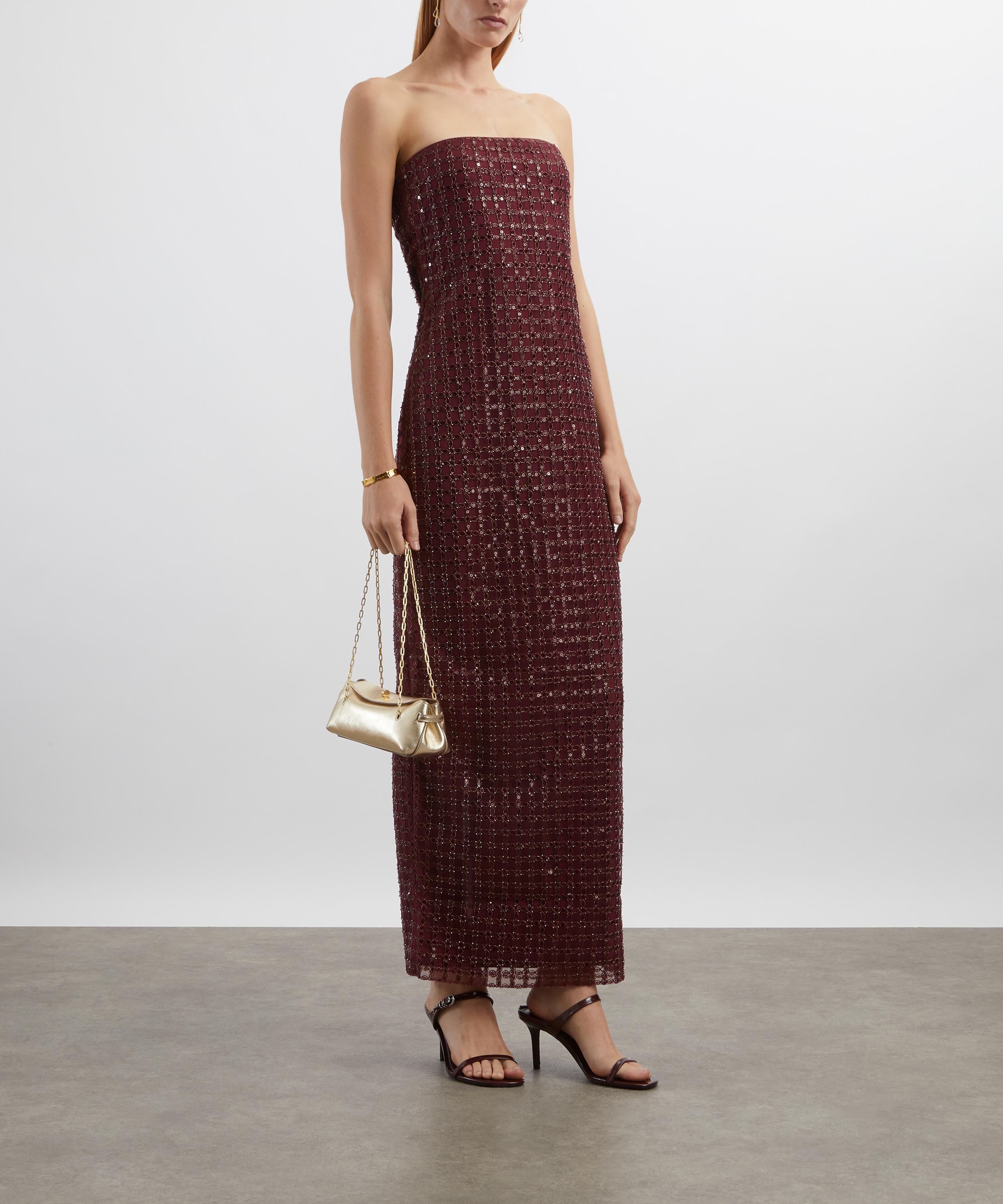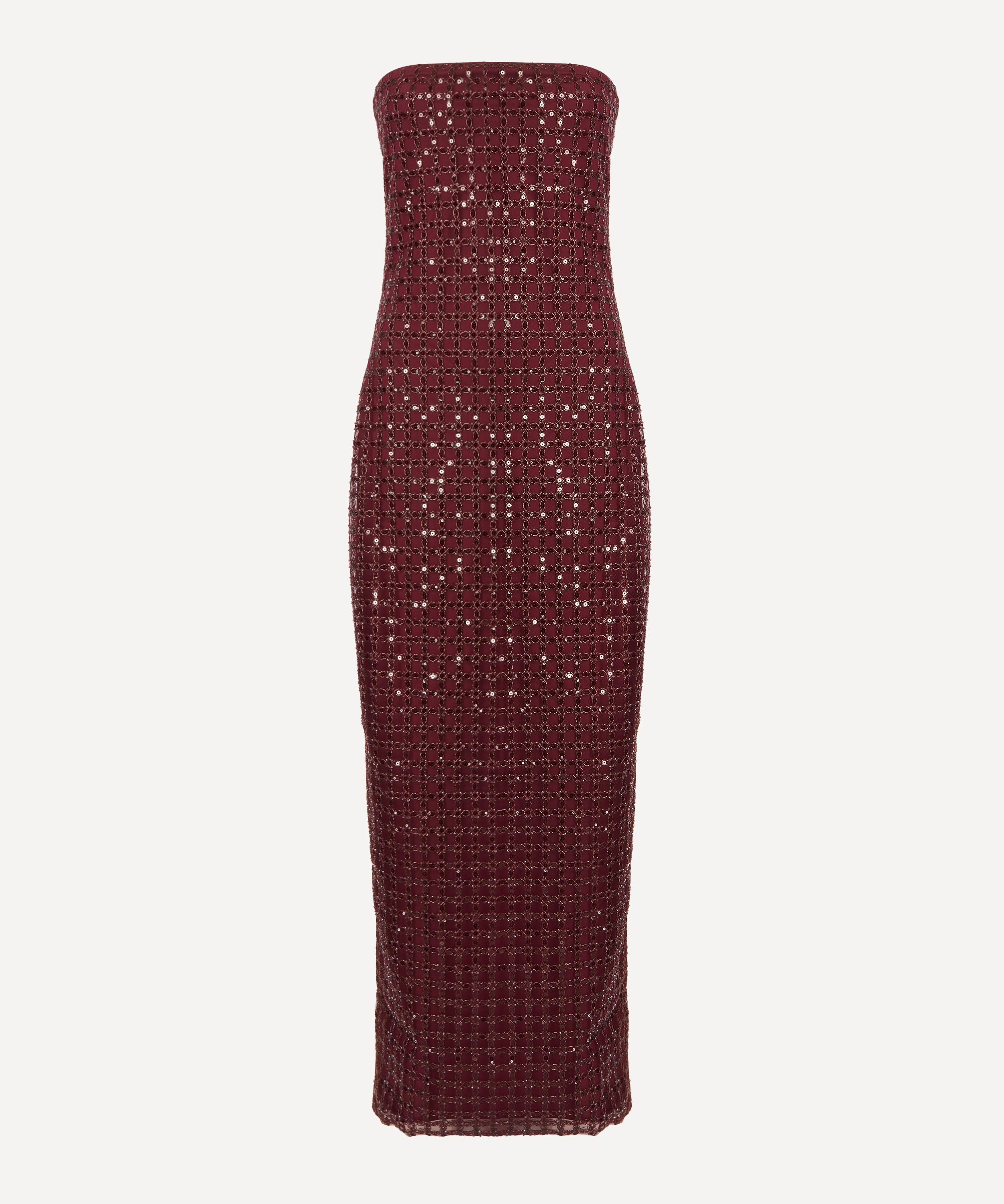 The Bordeaux Beaded Maxi Tube Dress from ROTATE Birger Christensen brings a bold dose of Copenhagen cool to your evening wardrobe.