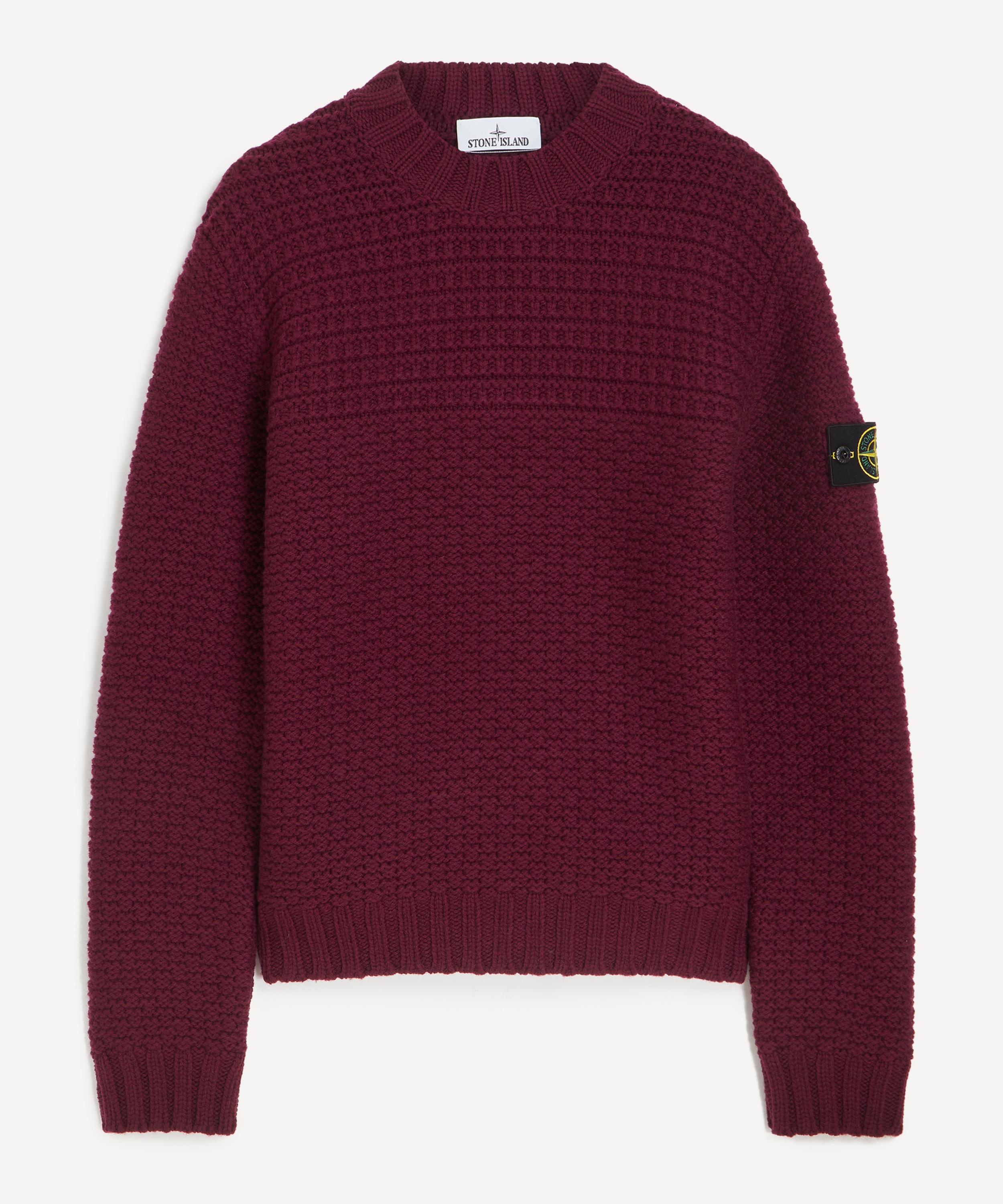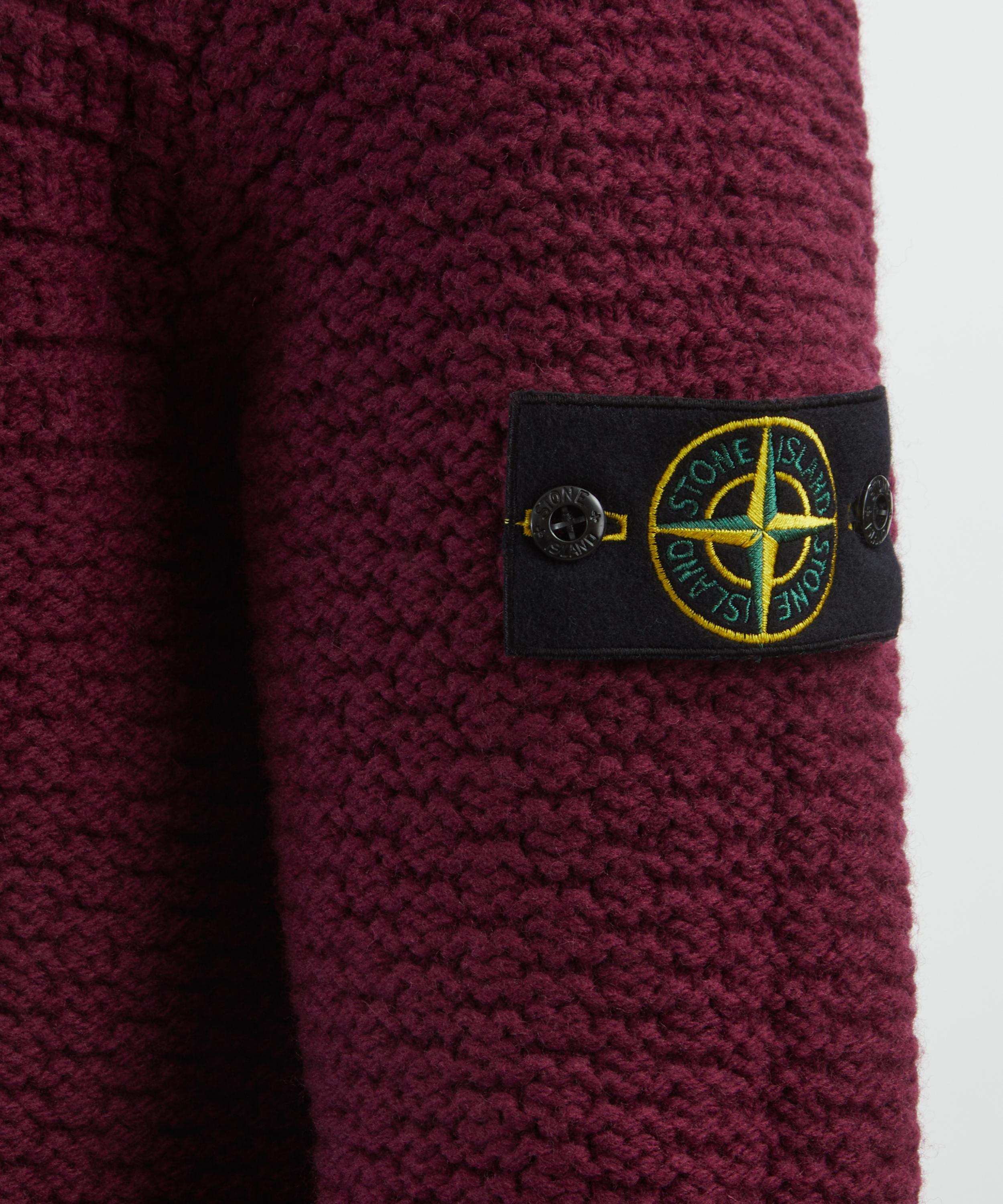 Stone Island fuses street culture and functionality to form the Bordeaux Textured Wool Jumper, creating a piece that seamlessly combines urban style with practical design.