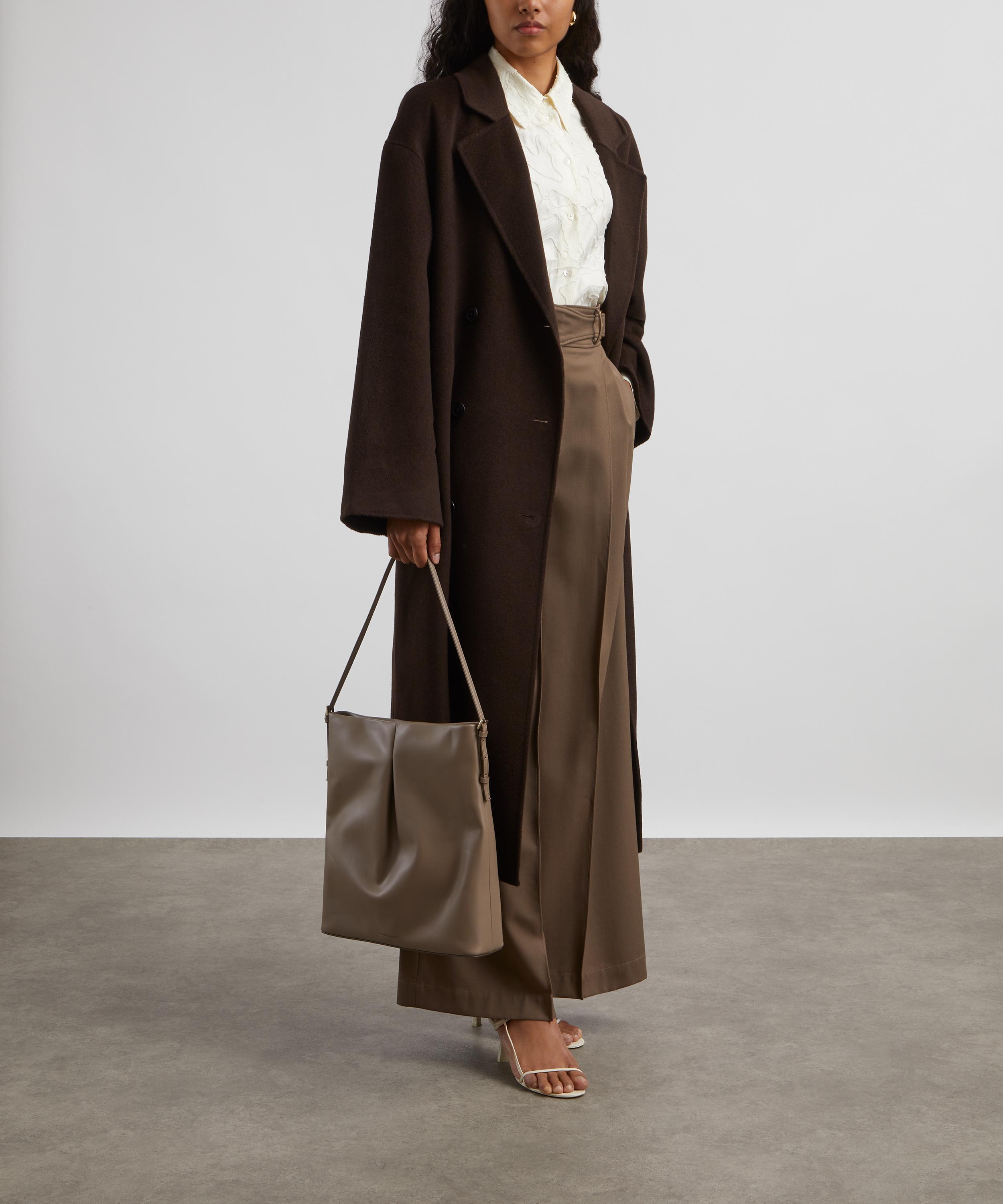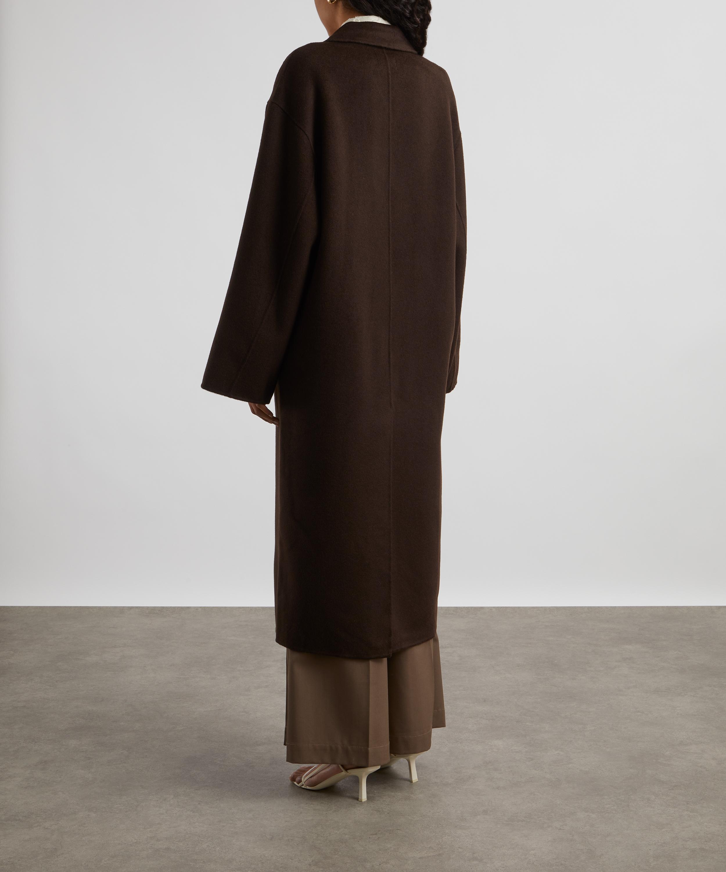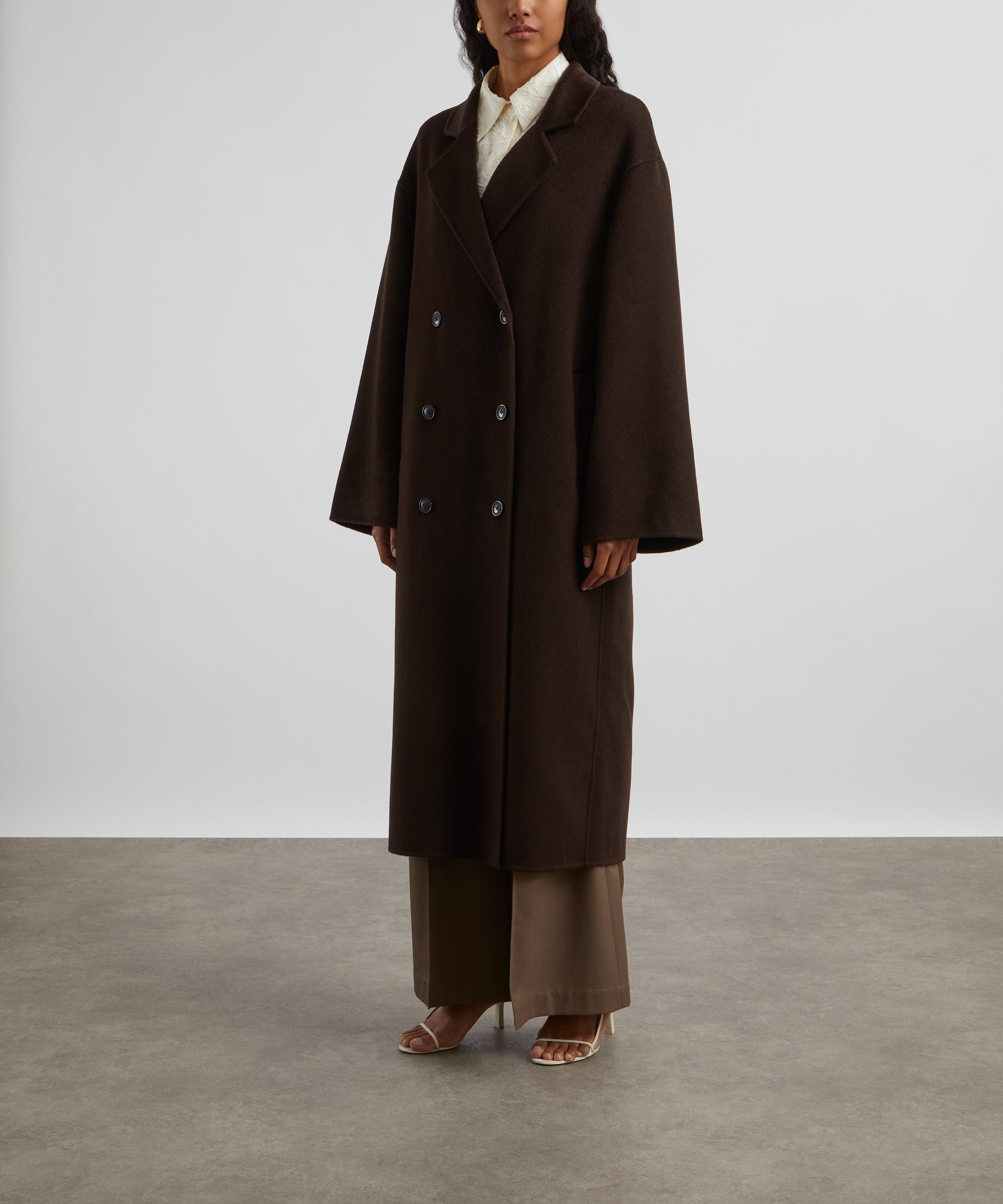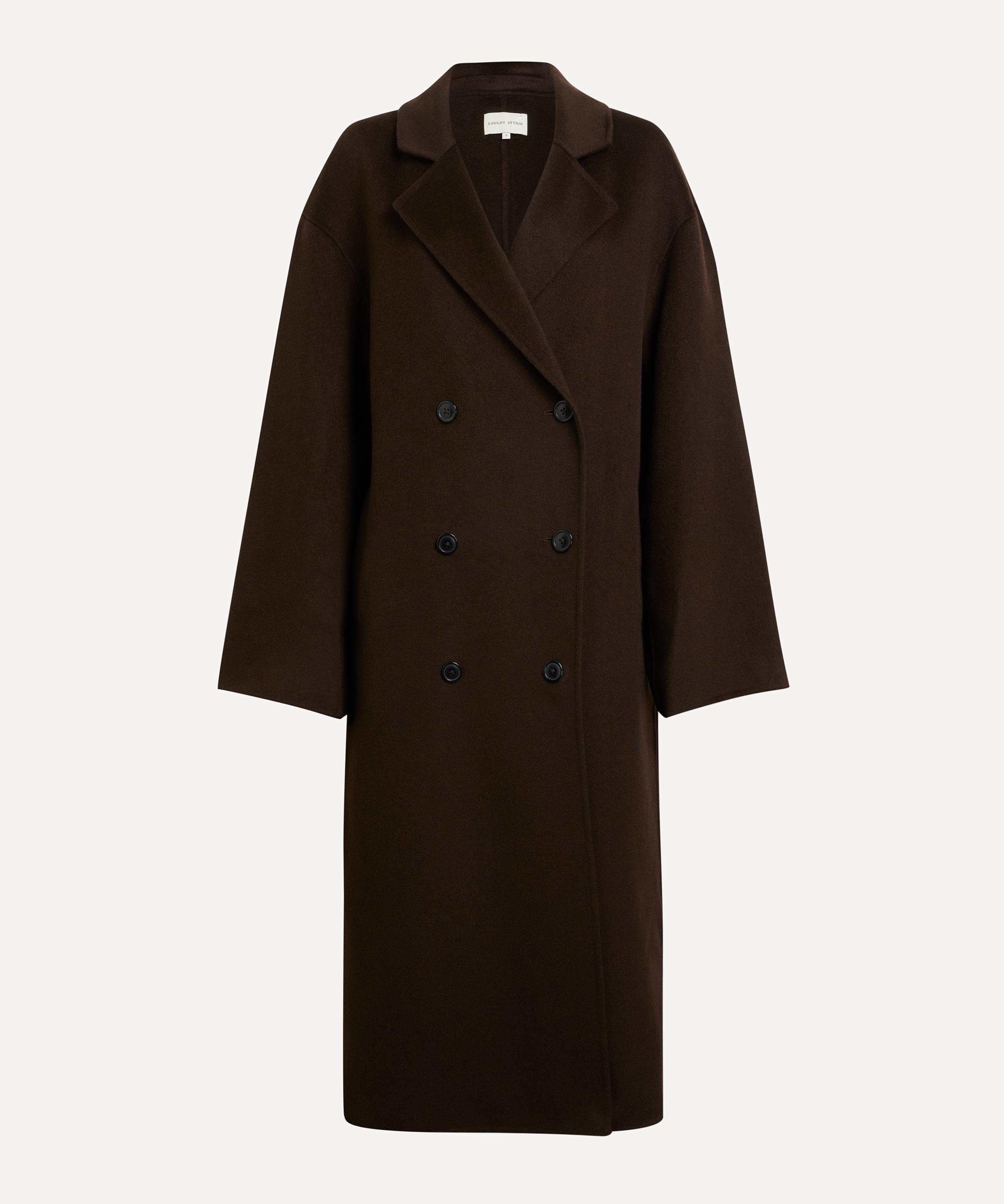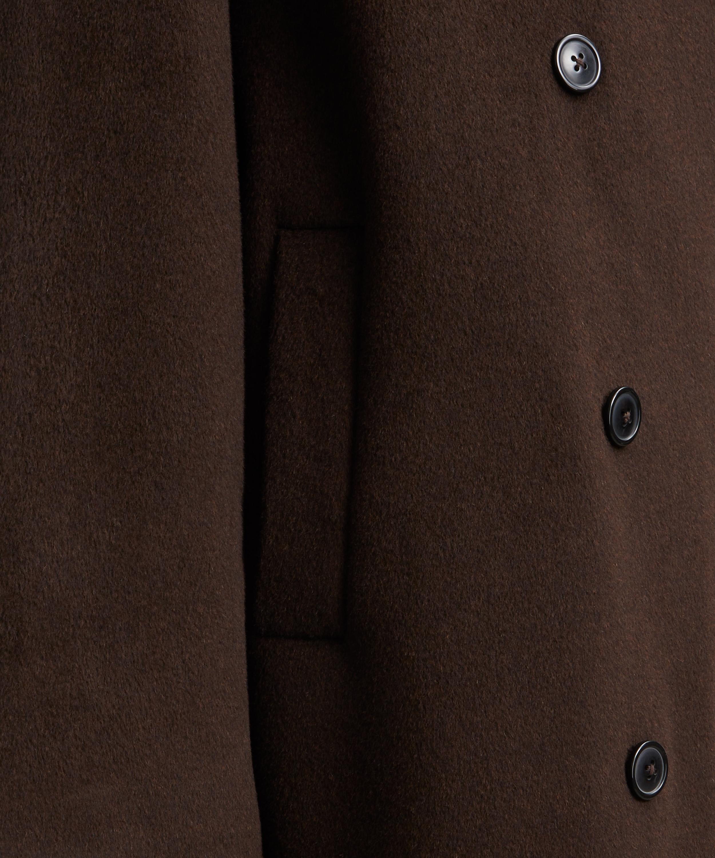 Crafted from a sumptuously warm wool and cashmere blend, this chocolate coloured coat boasts a relaxed, longline silhouette complete with dropped shoulders, and an ankle-grazing hem. Secured with a double-breasted button closure, its notched lapel, welt pockets and back vent lend a classic finish.