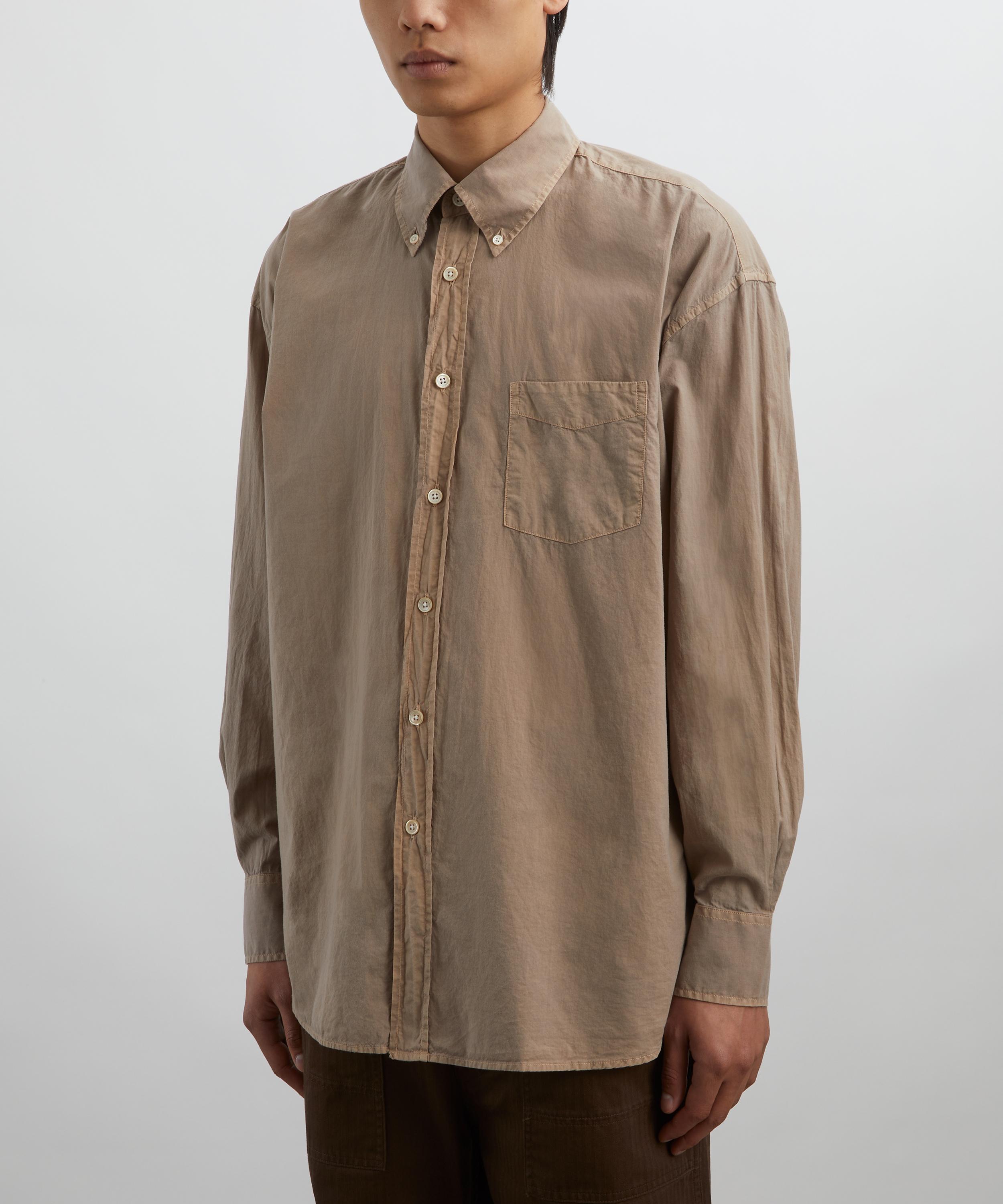 Crafted from a Portuguese piece dyed lightweight cotton voile, this button-down shirt offers a slightly oversized fit, complete with a chest pocket, mitered cuffs, and mother-of-pearl buttons for a subtly tailored finish.