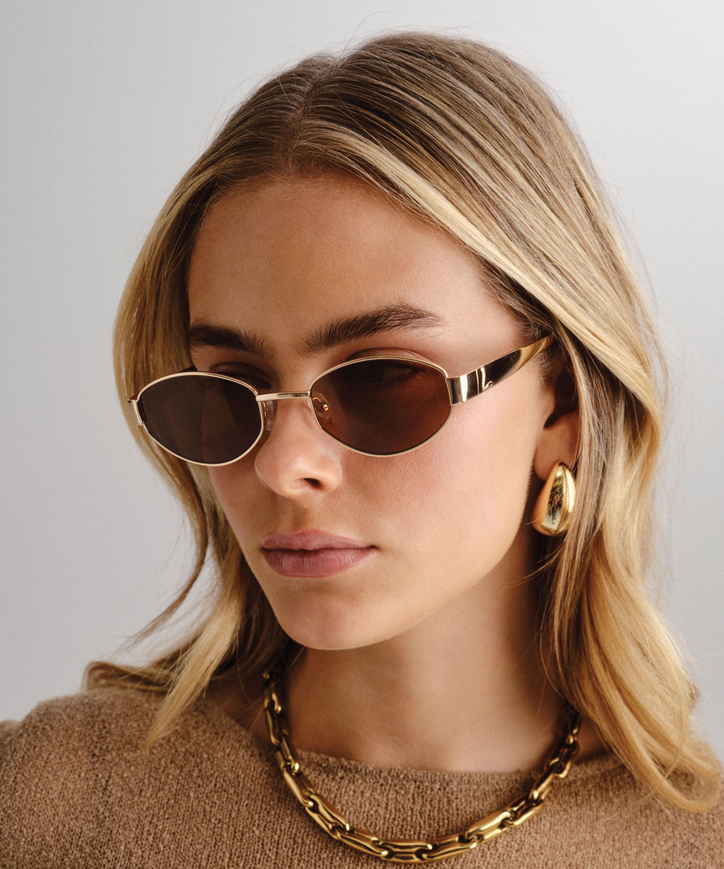 Crafted for the discerning eye, these sunglasses polish everyday looks with their sculptural silhouette and flawless finish. The vintage-inspired metal frame in gold, meticulously engineered for comfort and durability, is paired with contrasting acetate temple tips, the brand’s signature ‘L’ logo and premium polarised lenses in brown mono, offering UV protection and optical clarity. Poised to create an air of intrigue, this is eyewear for those who value quiet confidence and effortless style, designed to transcend seasons and trends.