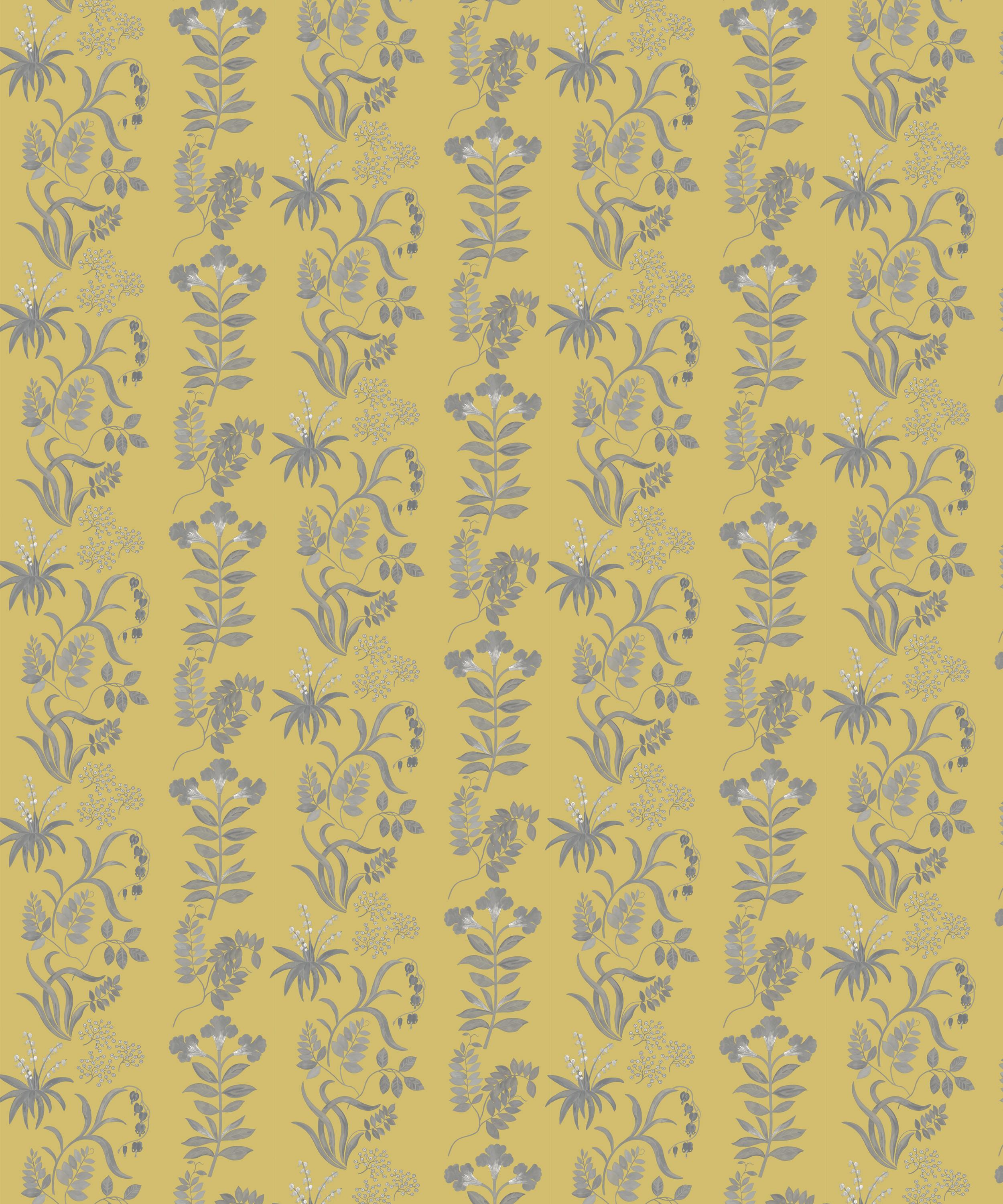 Hand-painted in the Liberty design studio, Botanical Stripe is a signature artwork of the Floribunda collection, celebrating the historic tradition of botanical illustration in Britain. Botanical Stripe is printed using a fine mesh gravure technique, bringing to life the soft painterly nature of the motifs. Matte and metallic pigments are layered in varied degrees of tonality to create a subtle luminescence, reminiscent of Victorian cyanotypes.