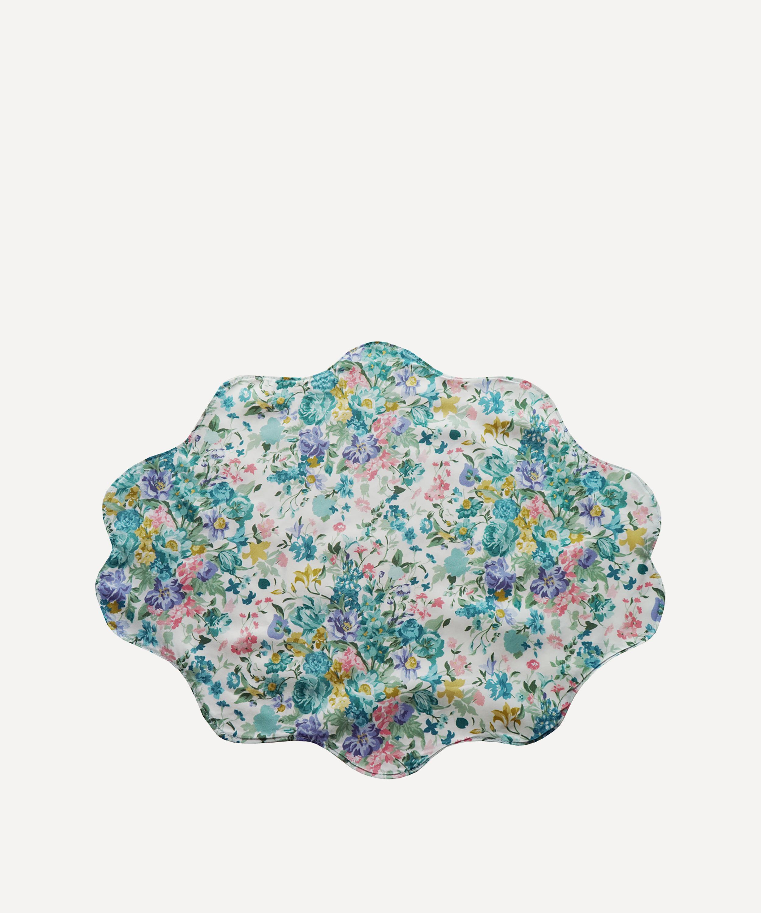 Liberty Fabrics & Bridgerton by Coco & Wolf combine to revitalise your dining space with an infusion of pattern and print courtesy of this Bouquet Parade and Regal Blossom reversible wavy edge placemat.
