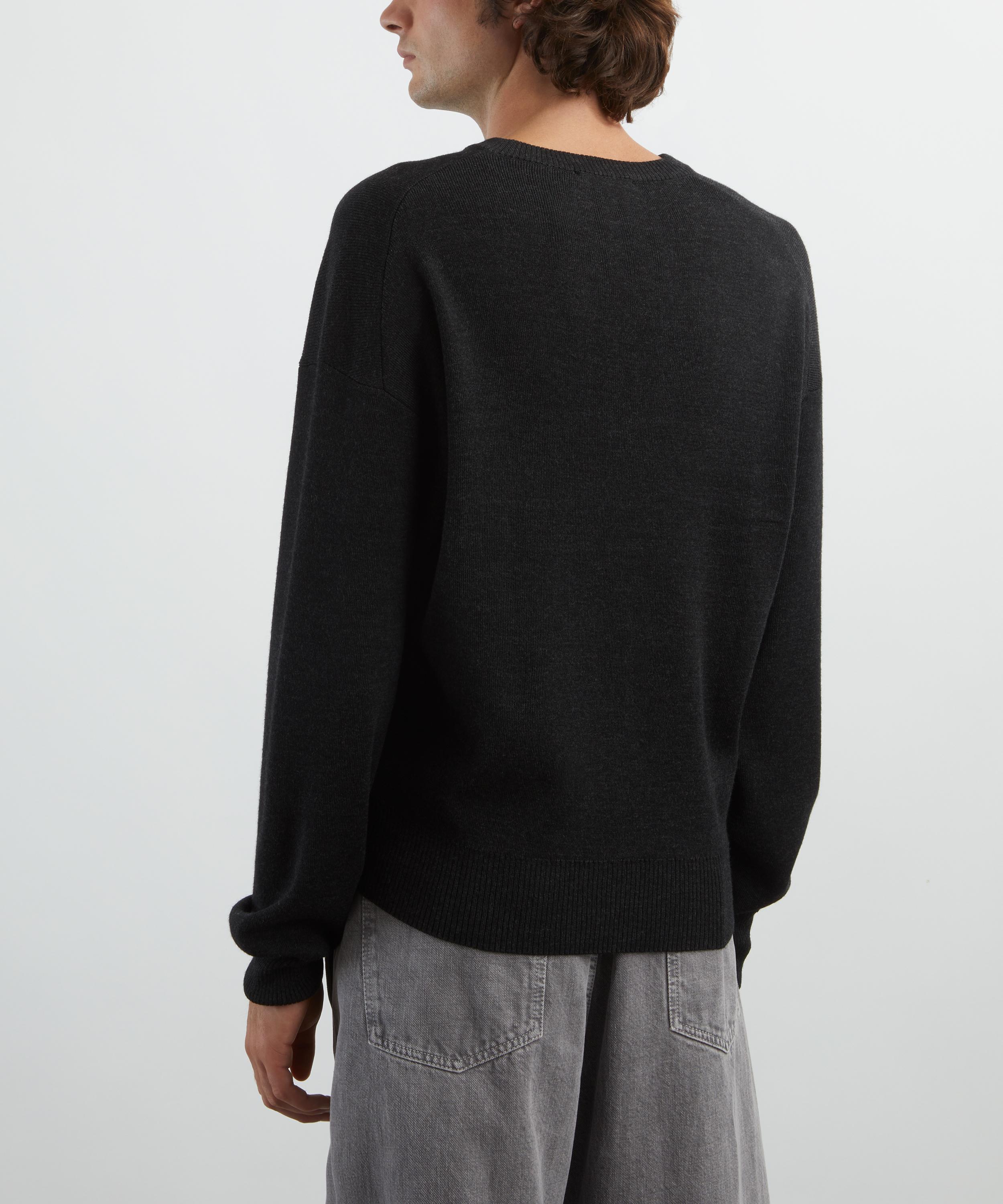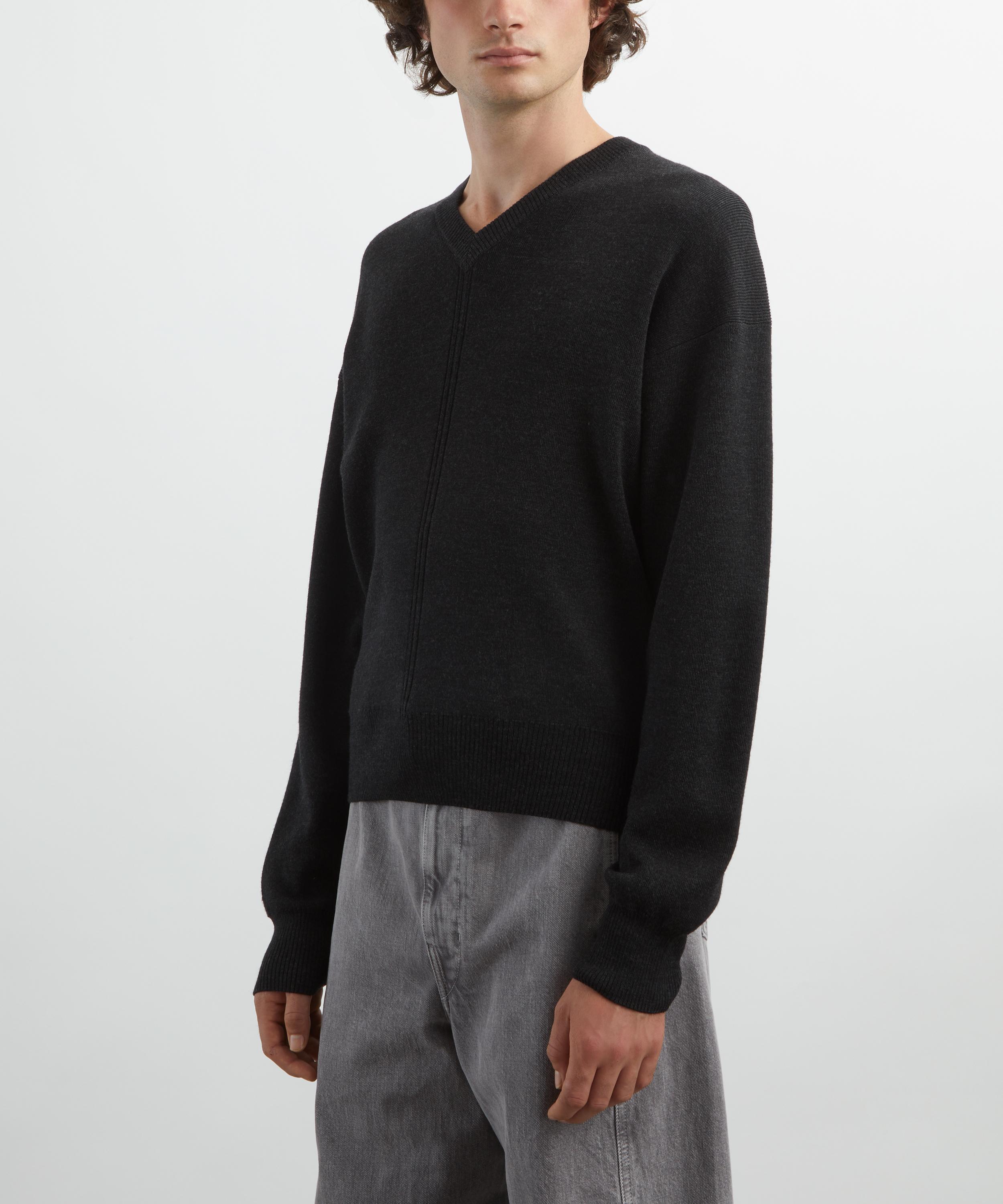 Crafted from Shetland wool with a dense, warm feel, this knitted jumper features a boxy fit with a V-neckline, long sleeve, and rib-knit trims, combining comfort with understated elegance.