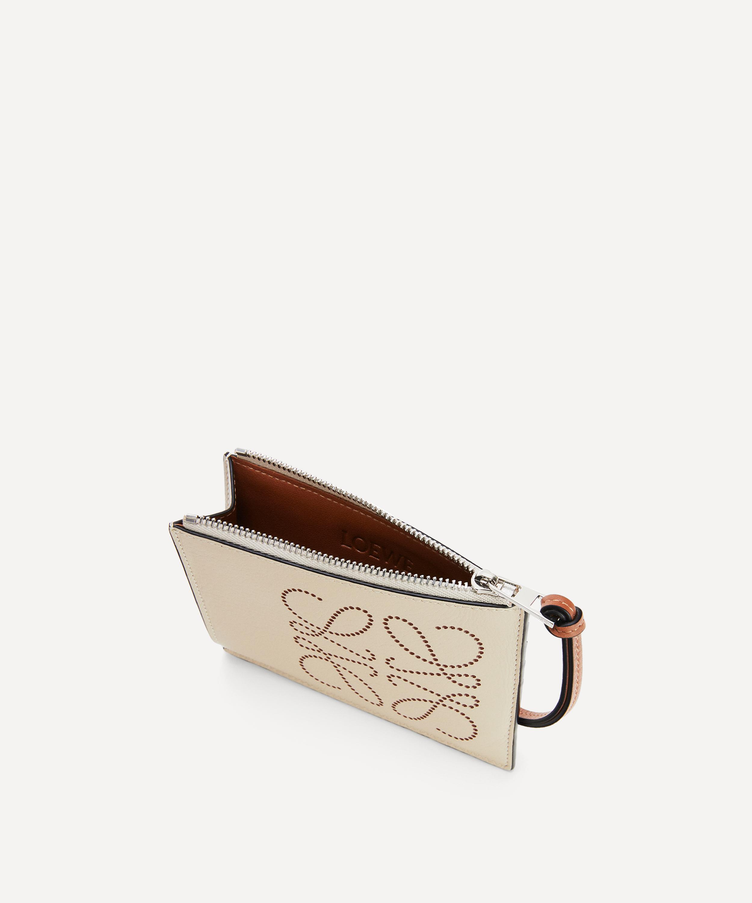 Cut from classic calfskin leather, this compact card holder is fitted with a zipped coin compartment, an oversized leather zip pull and six rear card slots. Complete with a contrasting dotted version of the brand's distinctive Anagram logo printed on the front, it's perfect for slipping into a handbag or jacket pocket to keep essential cards and coins organised in signature Loewe style.